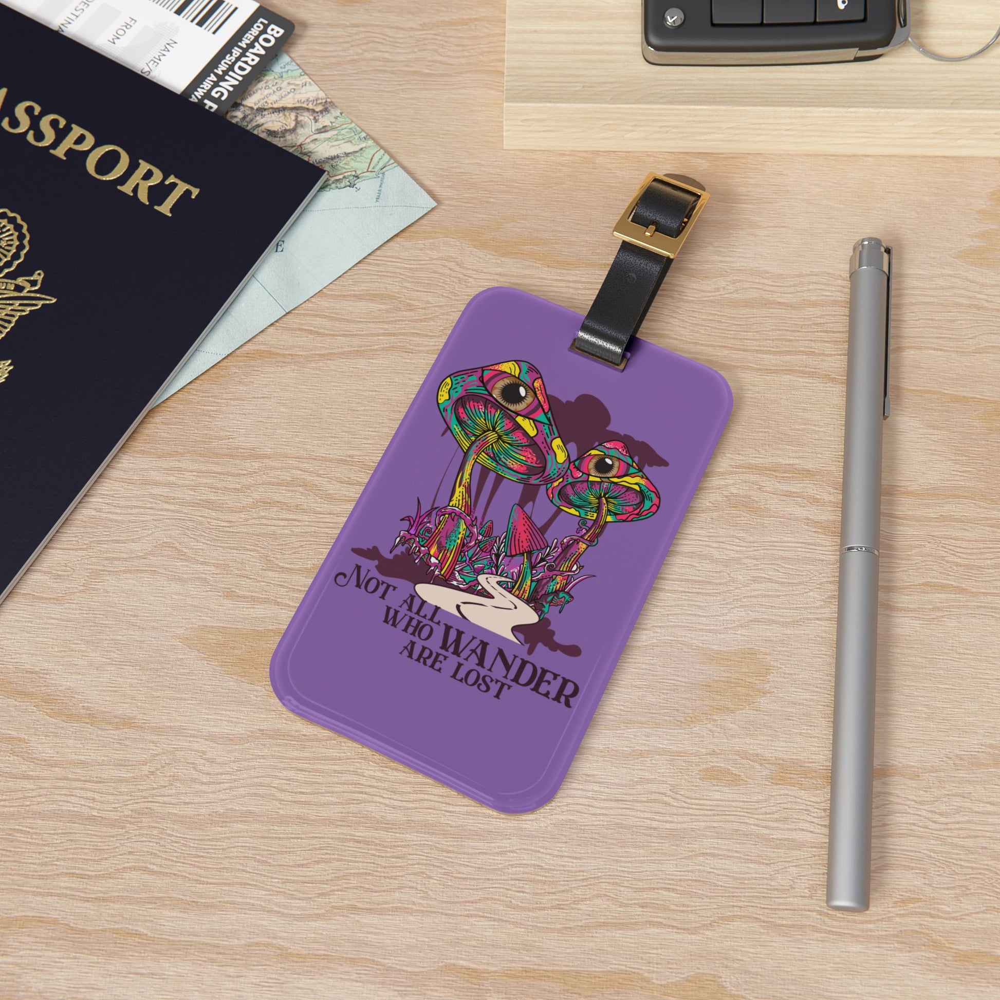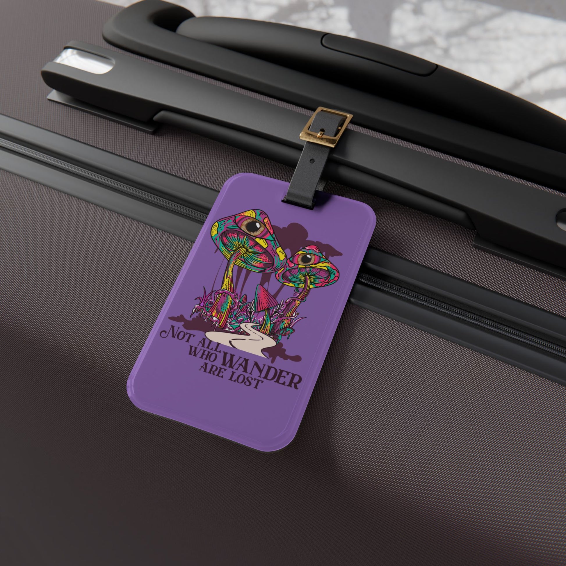 Not All Who Wander Are Lost Luggage Tag | Trippy Mushroom Baggage ID | Raver Festival Travel Accessory | Hippie Mushroom Art Gift