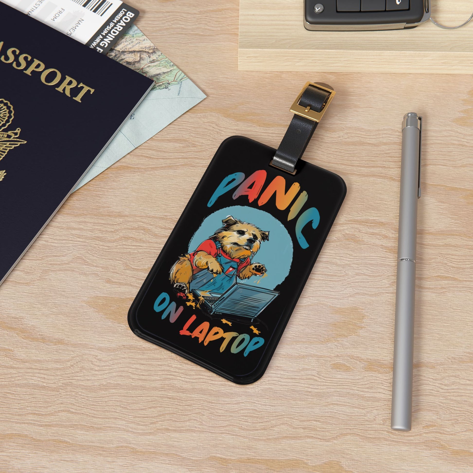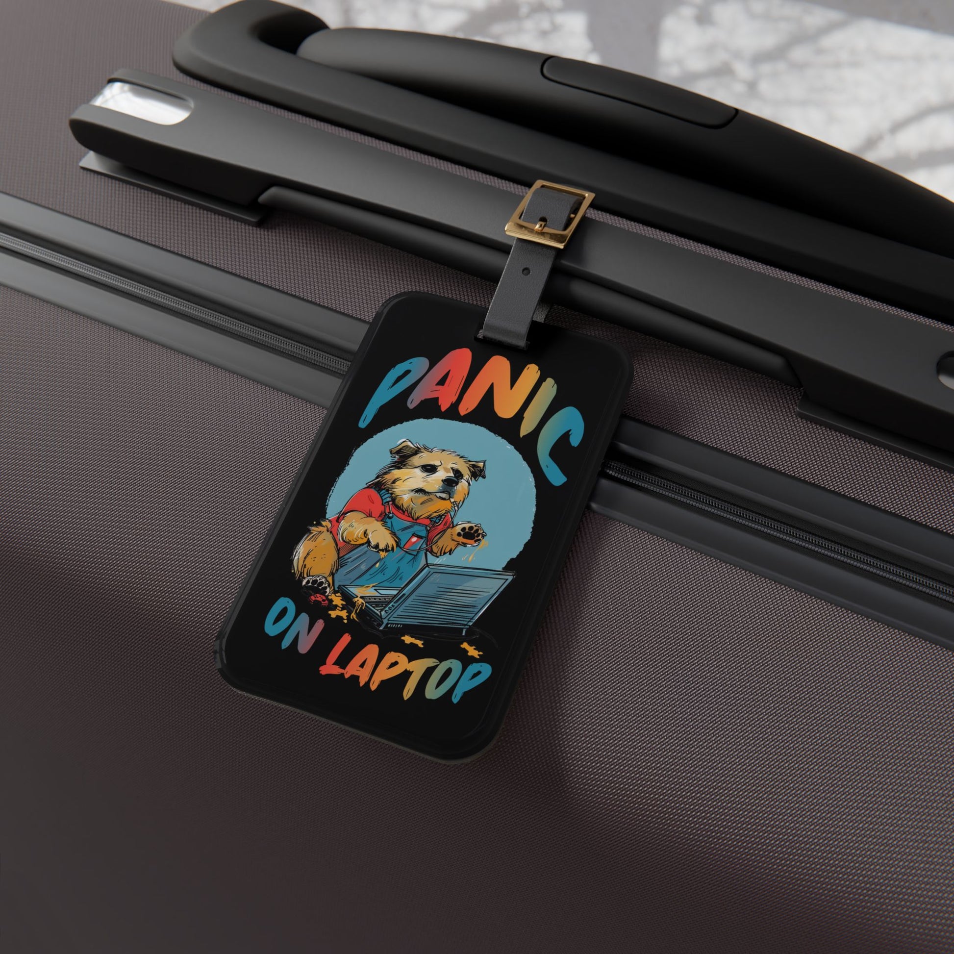 Panic On Laptop Luggage Tag | Funny Dog Computer Baggage ID | Gen Z Quotes | Zoomer Vibes | Hilarious Animal Humor | Perfect Gift Dog Lovers