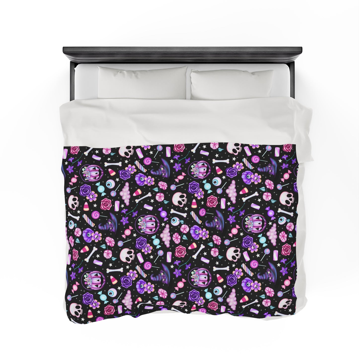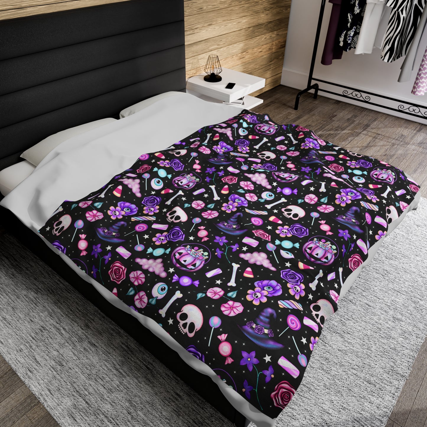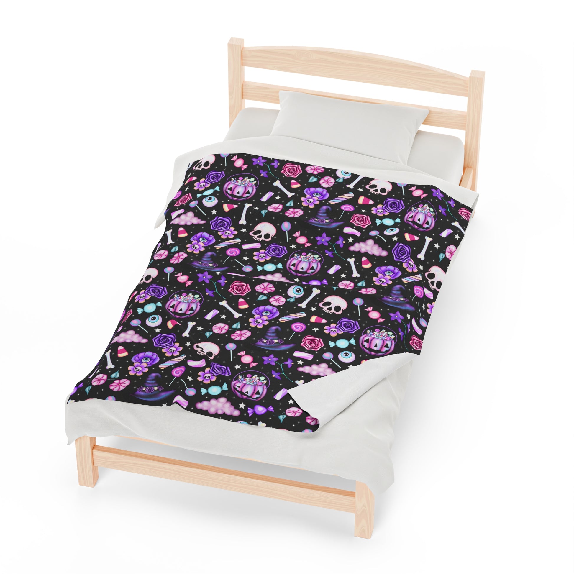 Pastel Gothic Witchy Vibe Velveteen Plush Throw Blanket Cute Goth Style Blanket Kawaii Gothic Cozy Warm Witch Decor Magical Gift Witch Lover
