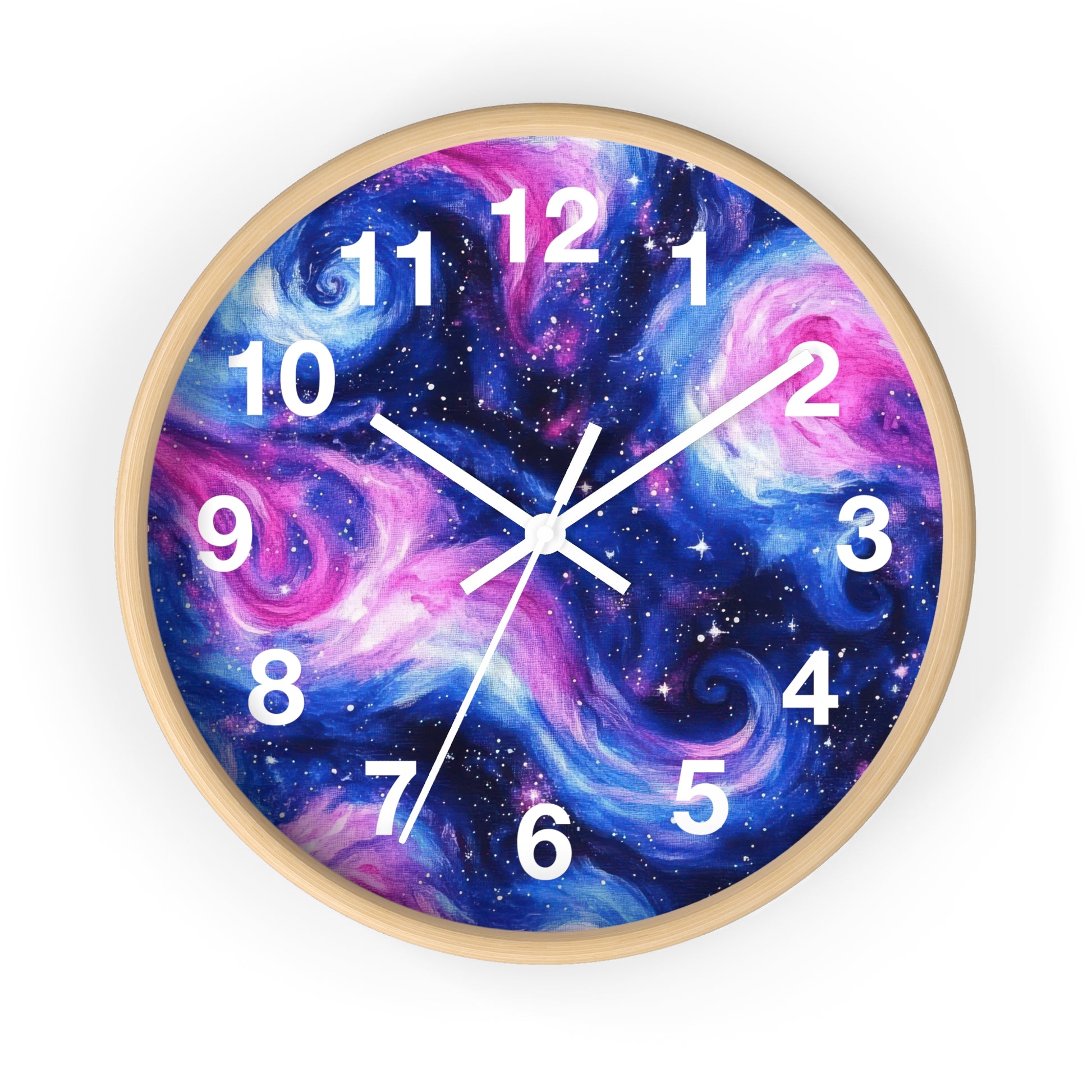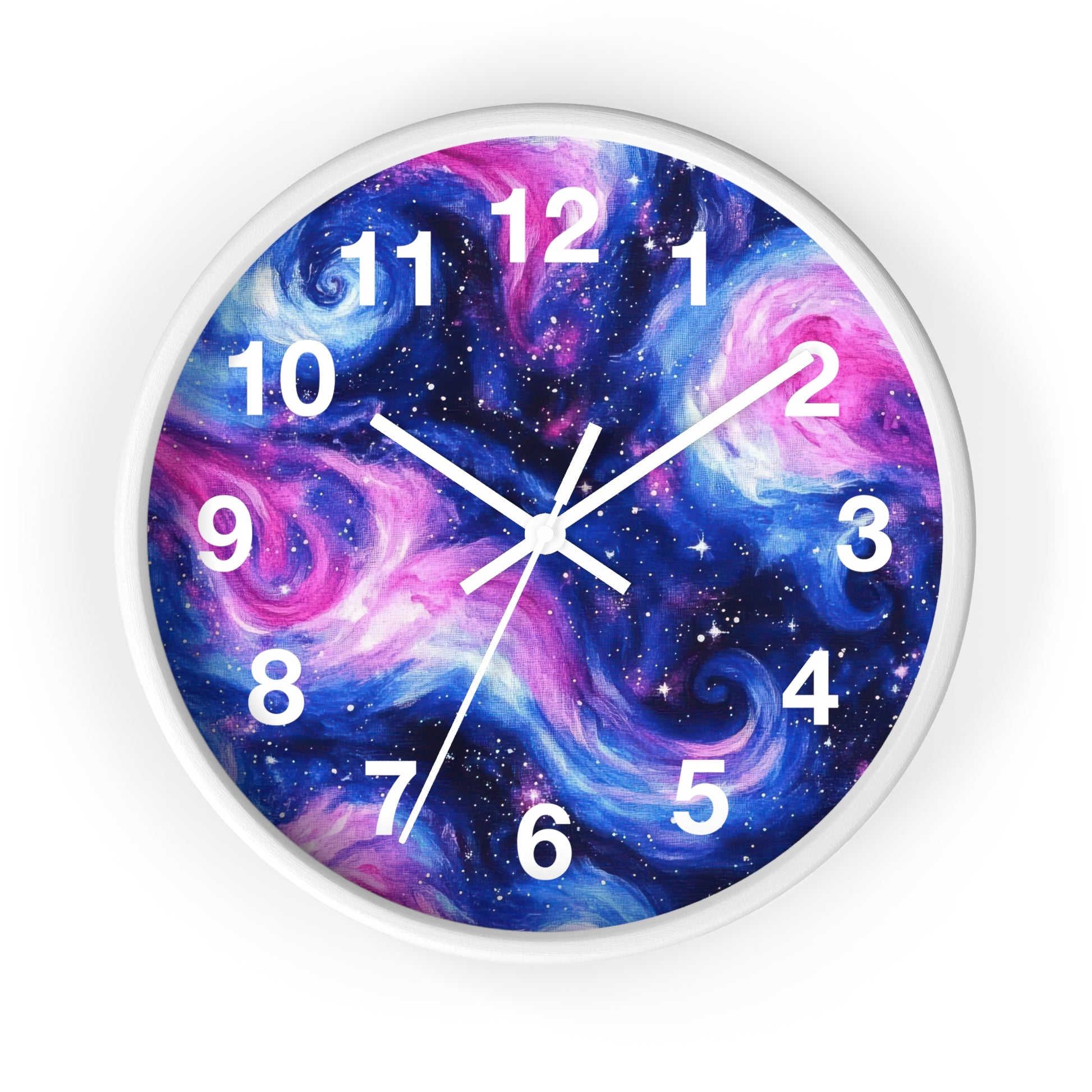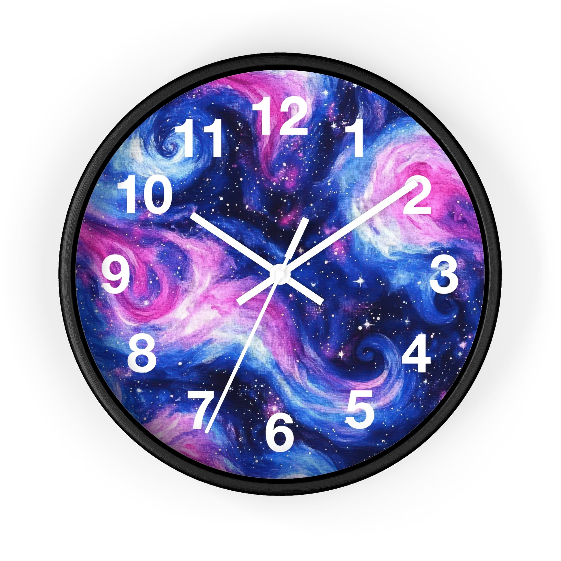 Pink Blue Space Galaxy Wall Clock | Trippy Rave Design | Battery Operated | Unique Teen Girl Room Decor | Ideal for Space Galaxy Rave Lovers