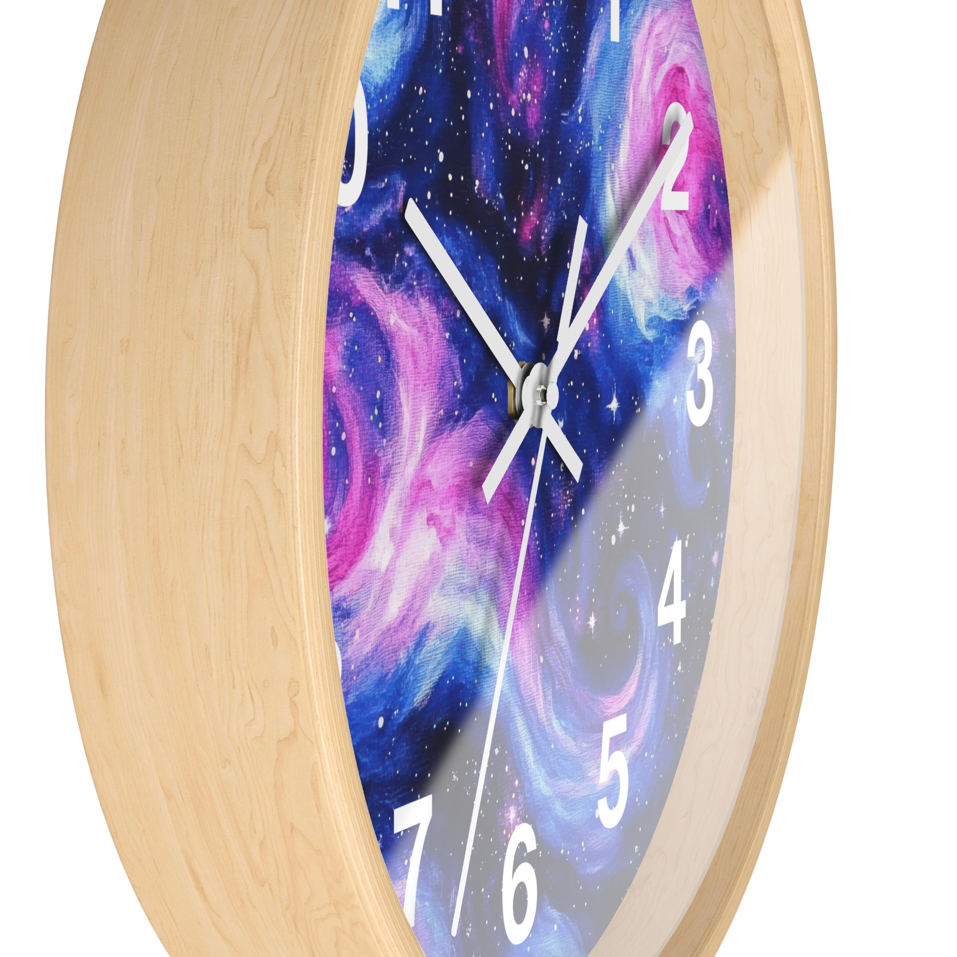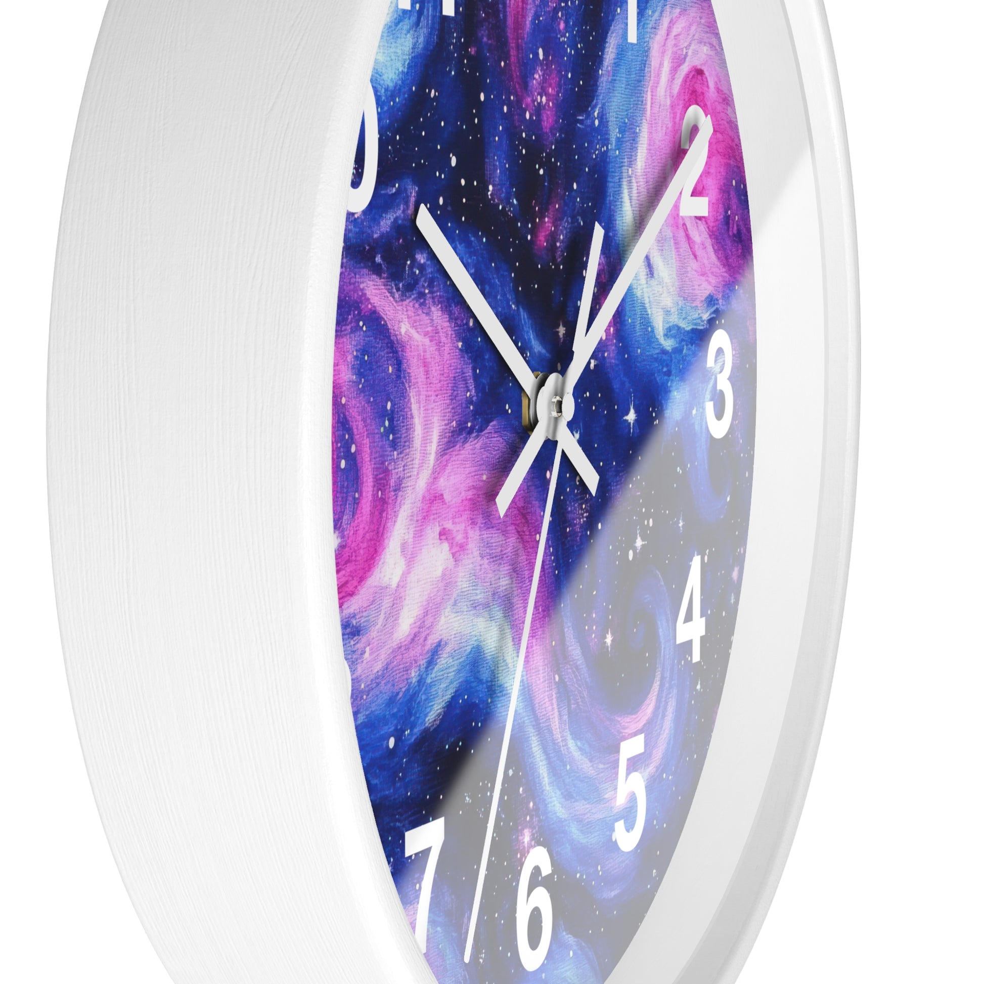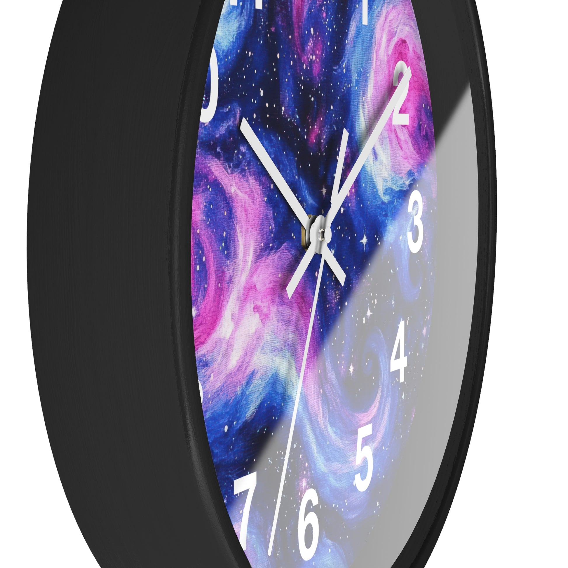 Pink Blue Space Galaxy Wall Clock | Trippy Rave Design | Battery Operated | Unique Teen Girl Room Decor | Ideal for Space Galaxy Rave Lovers