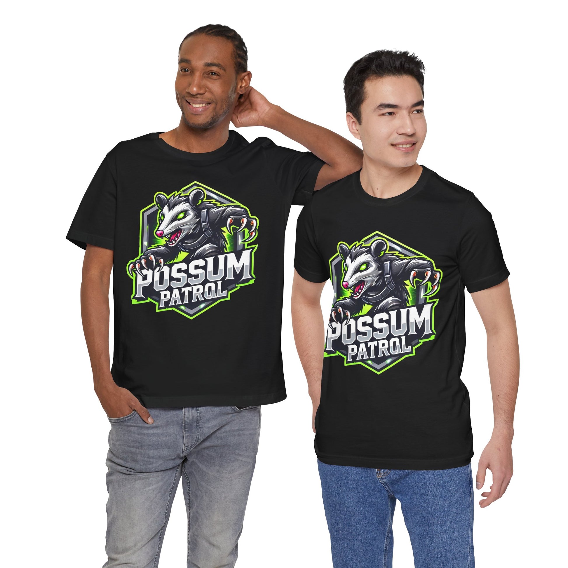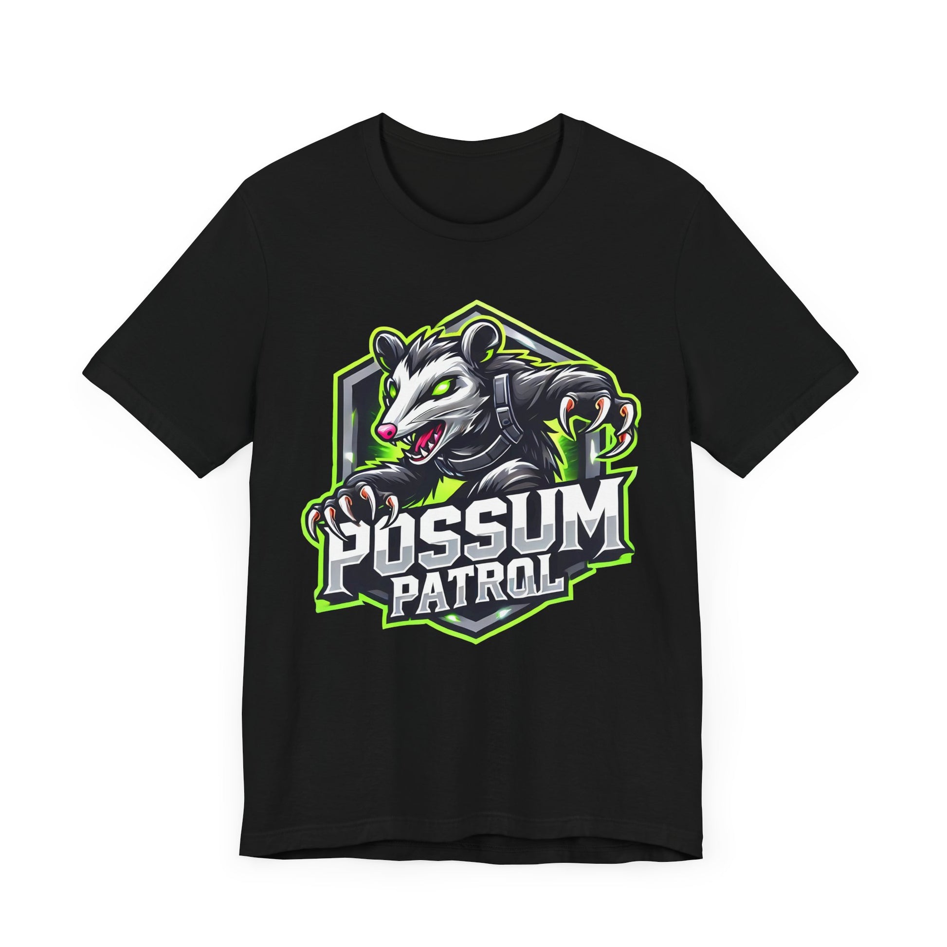 Possum Patrol Opossum Shirt | Fierce Animal Design | Unique Gift for Wildlife Lover Gamers Esports Jersey Style Graphic Tee Funny Opossum