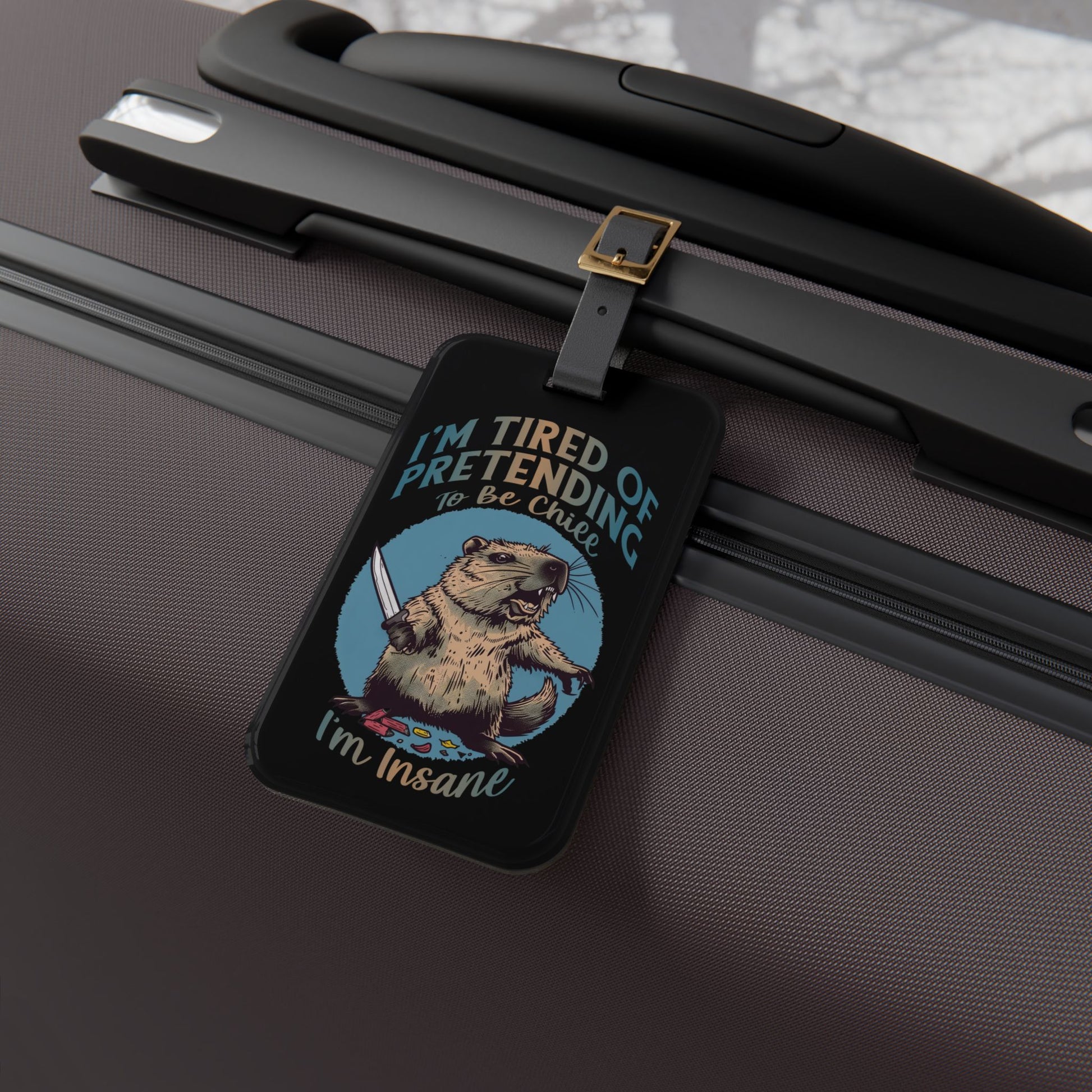 Pretending to be Chill I'm Insane Beaver Luggage Tag | Funny Beaver Baggage ID Gen Z Quotes Zoomer Humor Sassy Animal Vibes Travel Accessory