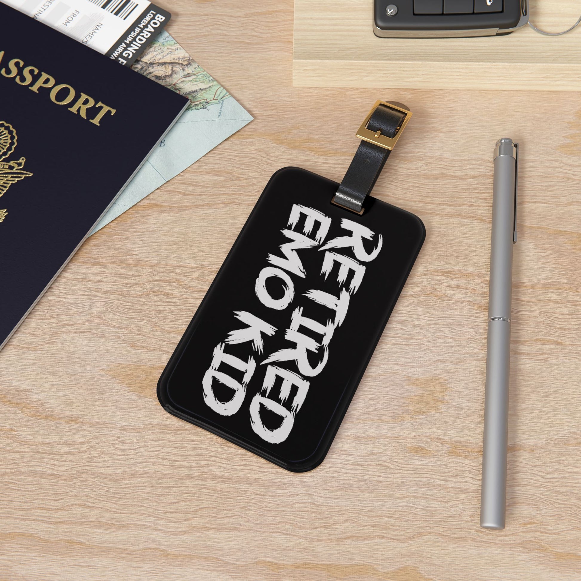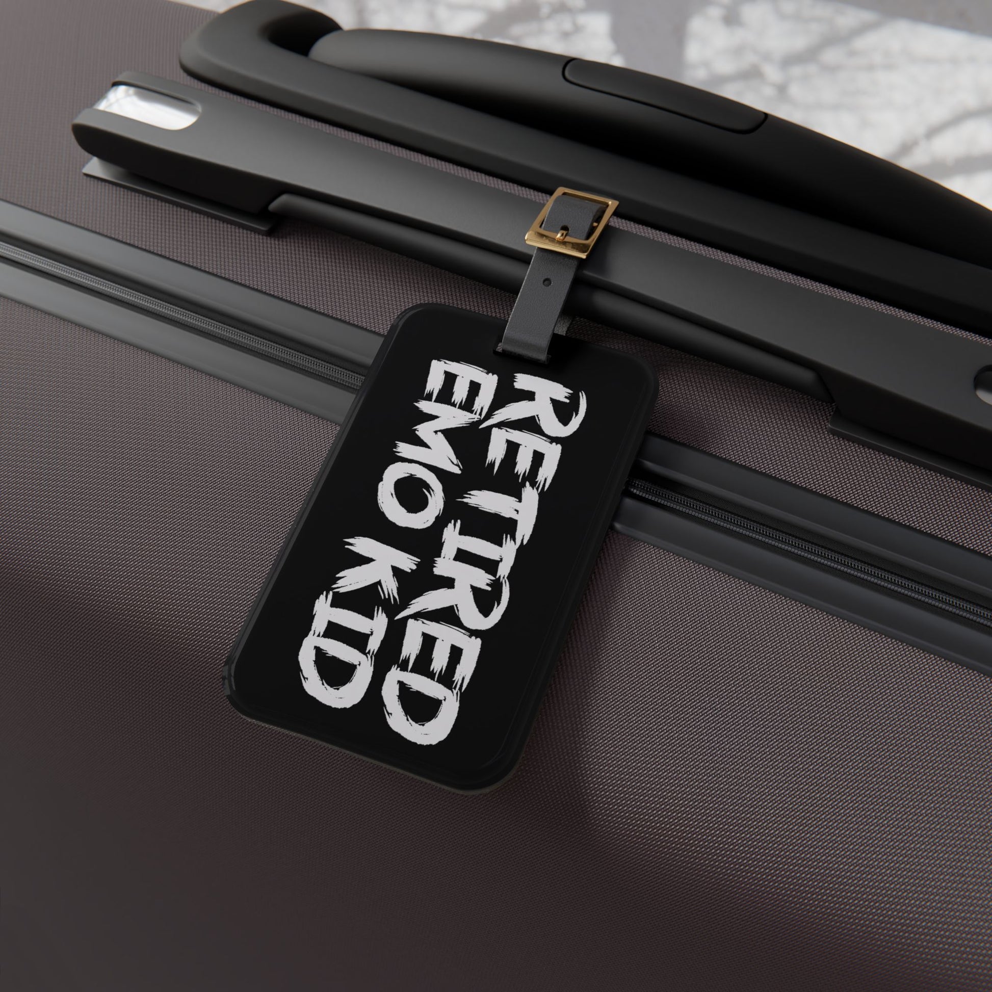 Retired Emo Kid Luggage Tag | Elder Emo Dark Aesthetic Travel Accessory | Awesome Gift Goth Punk Fans Baggage ID | Not Just a Phase Emo