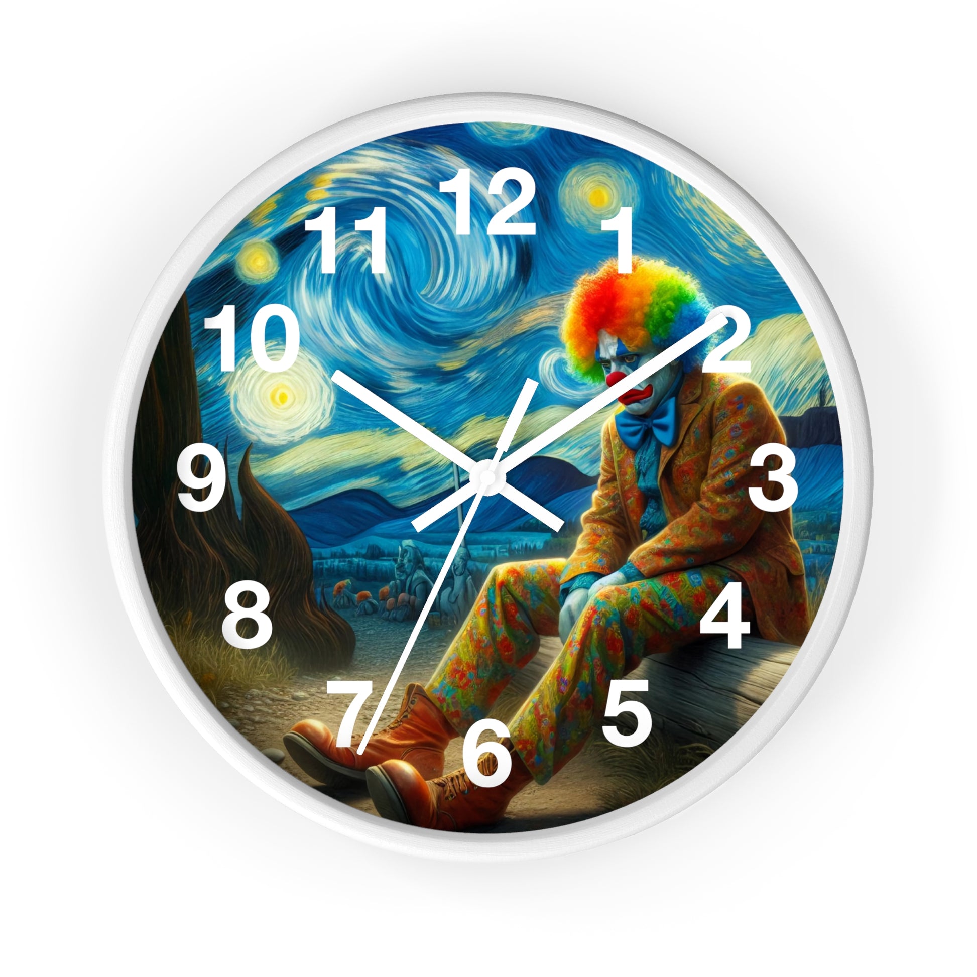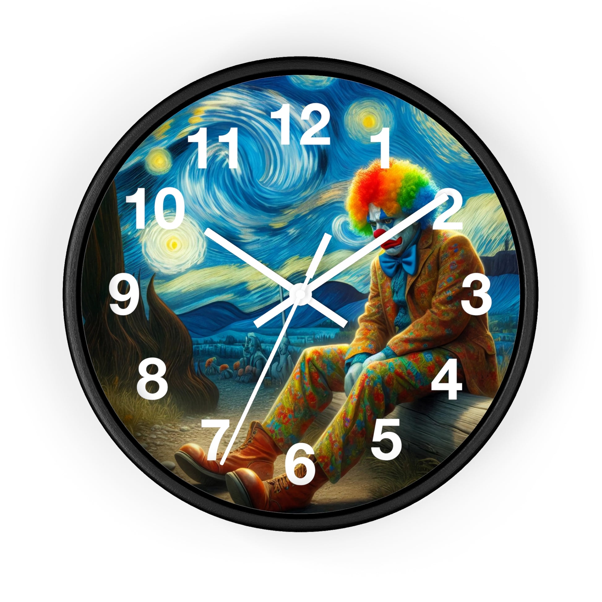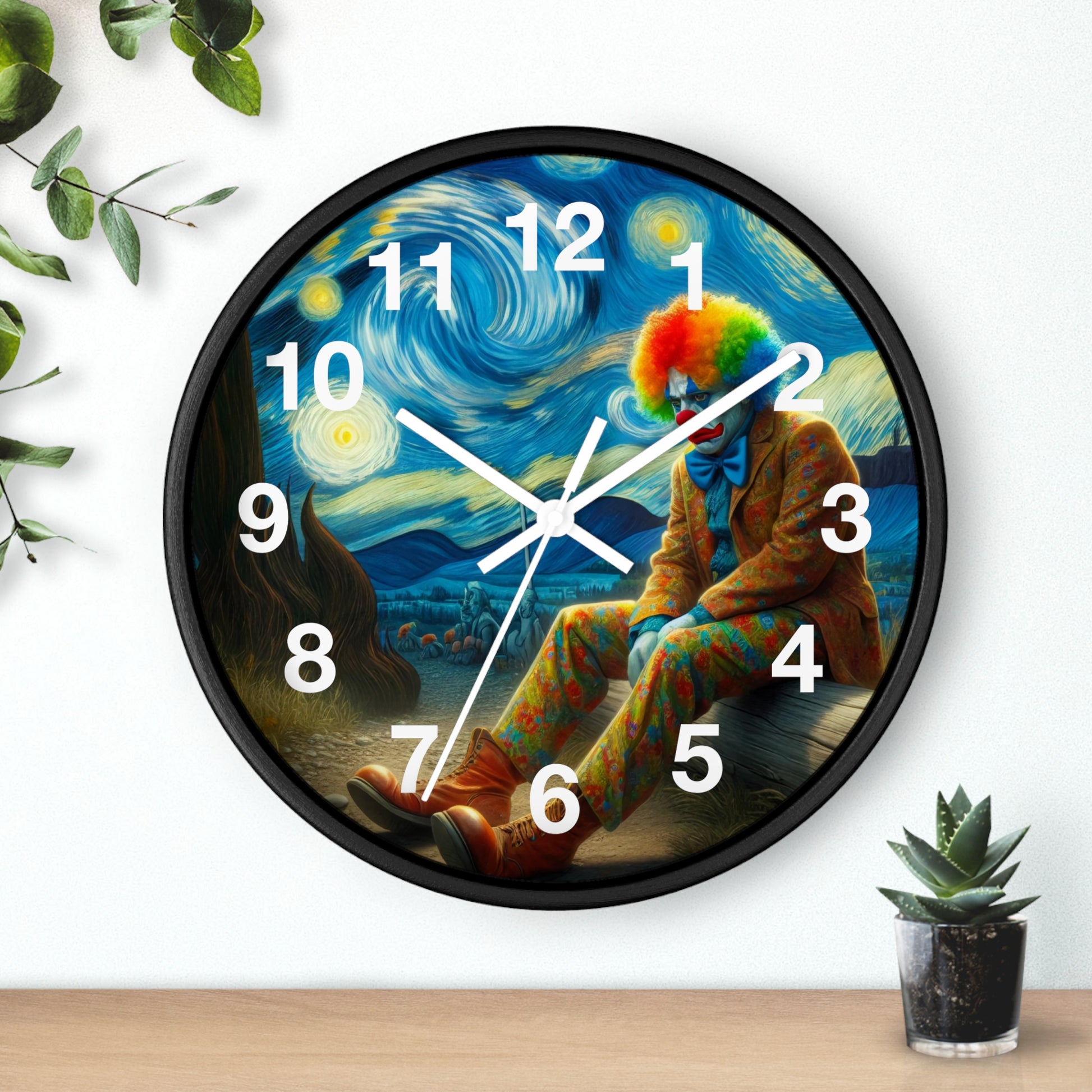 Sad Clown Night Sky Wall Clock | Battery Operated | Melancholic Art Inspired by Starry Night | Unique Gift Clown Lovers Artistic Wall Decor
