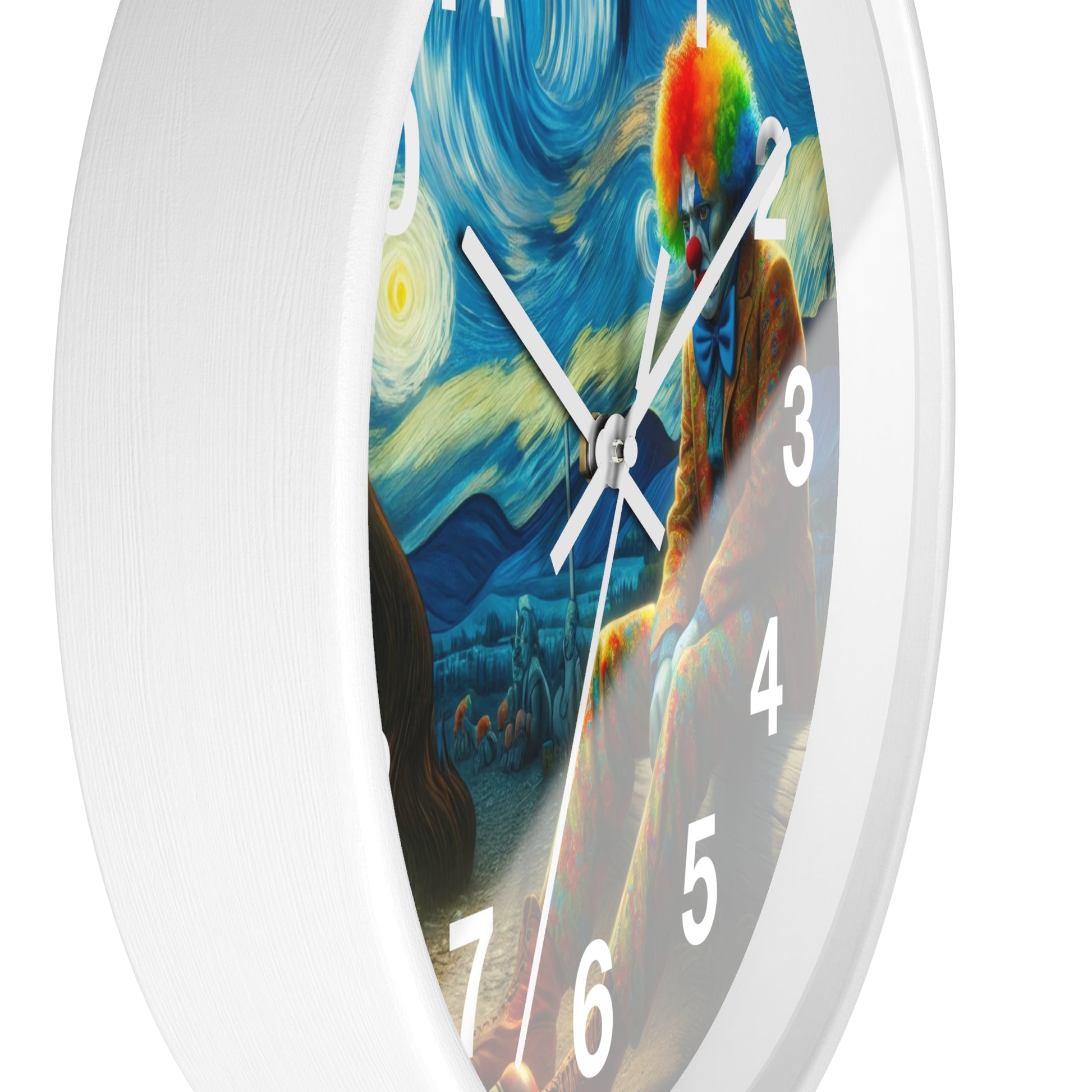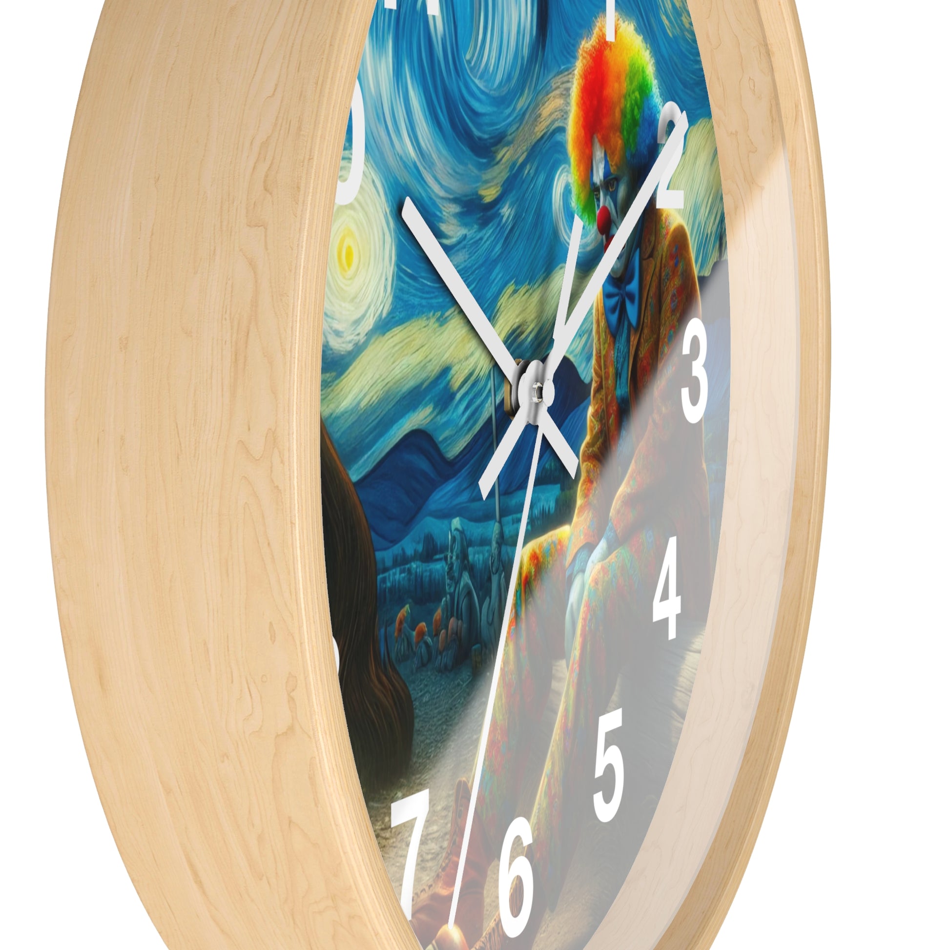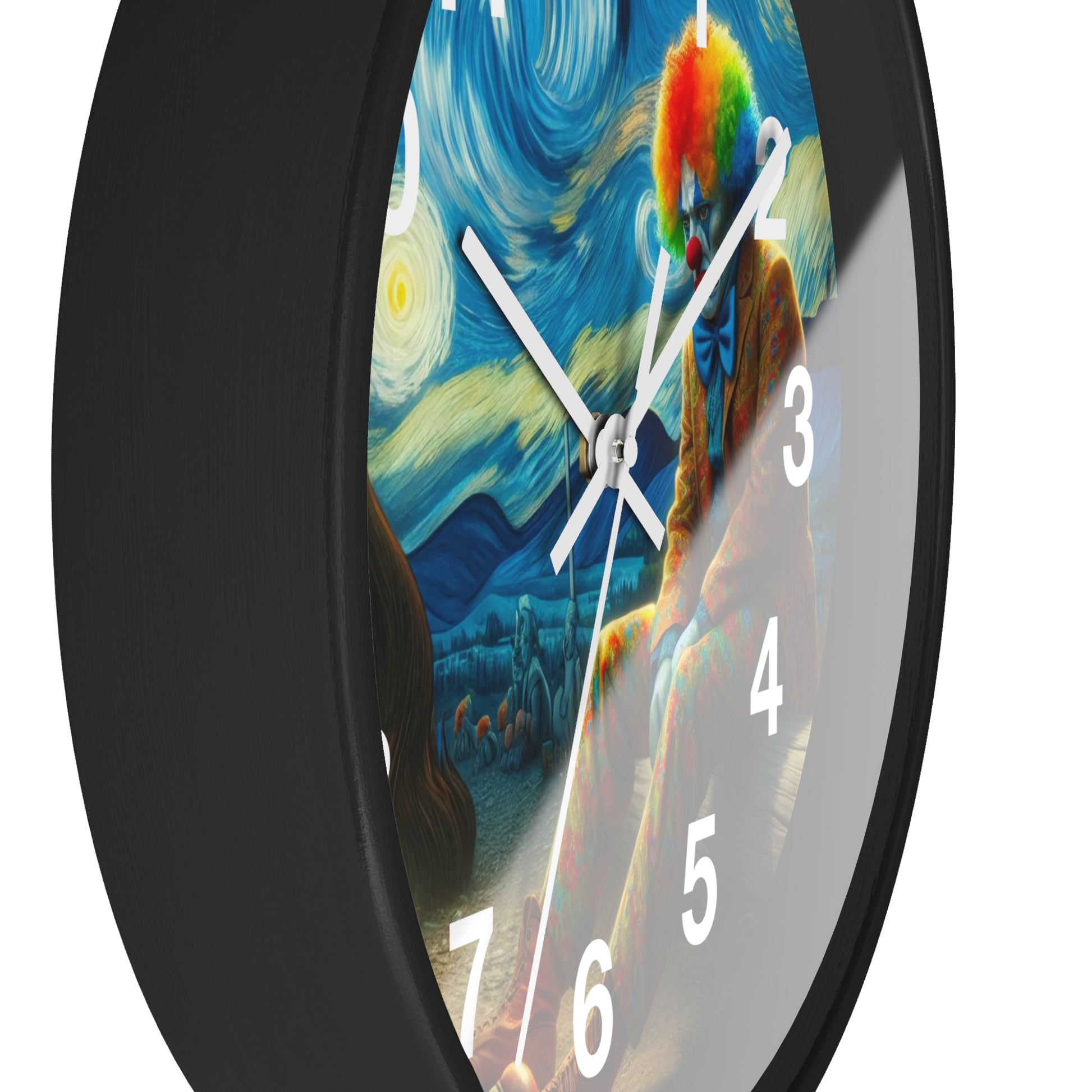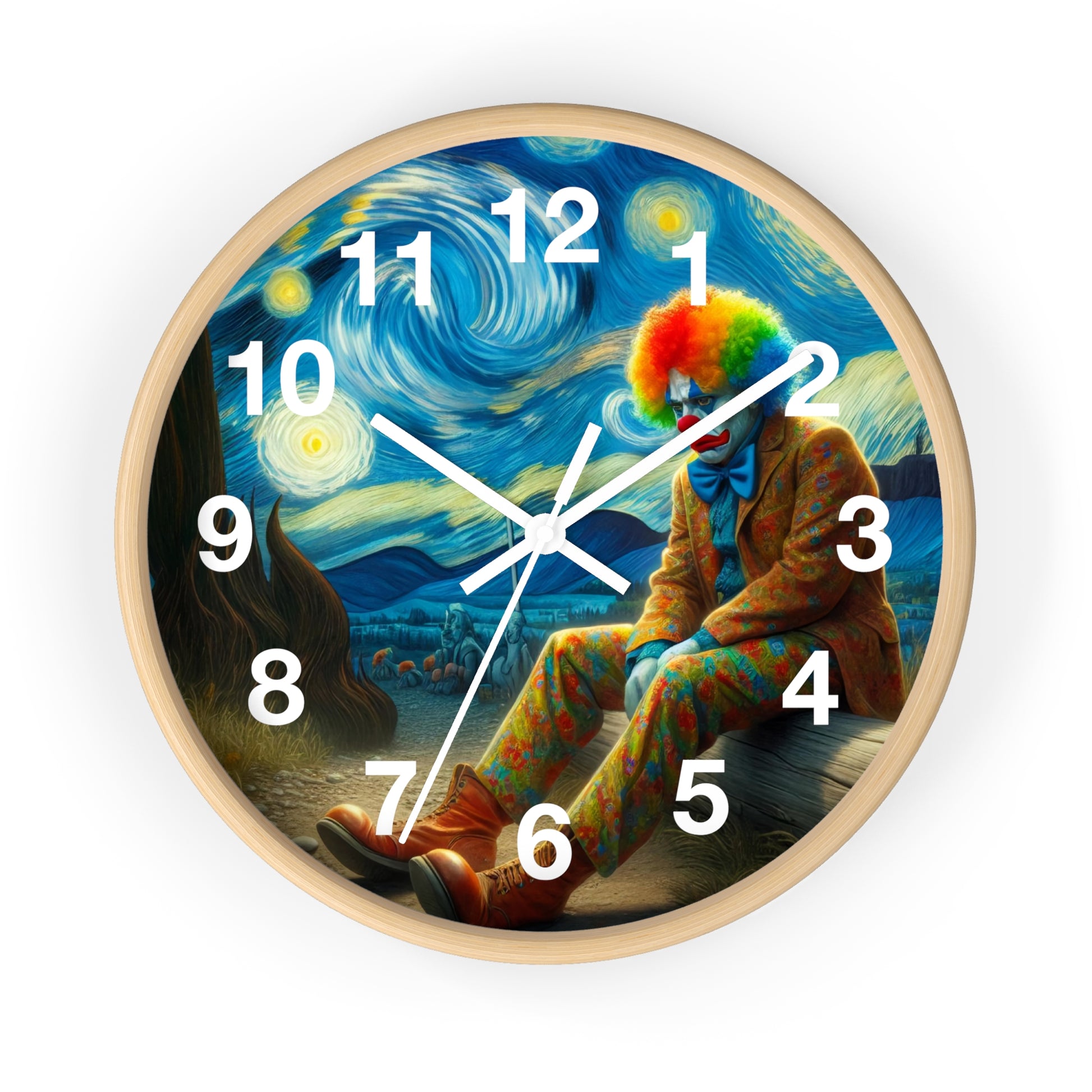 Sad Clown Night Sky Wall Clock | Battery Operated | Melancholic Art Inspired by Starry Night | Unique Gift Clown Lovers Artistic Wall Decor