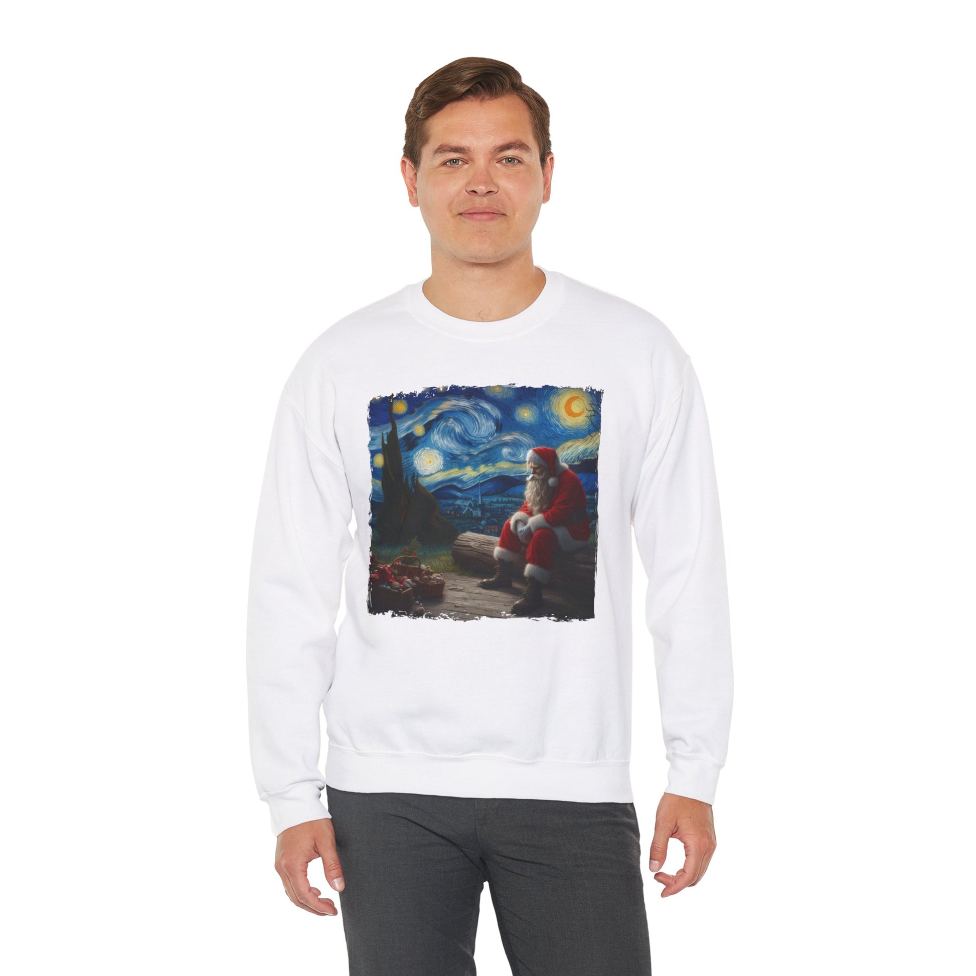 Santa Claus Night Sky Crewneck Sweater | Starry Night-Inspired Holiday Art Pullover Festive Santa Lover Magical Christmas Season Sweatshirt