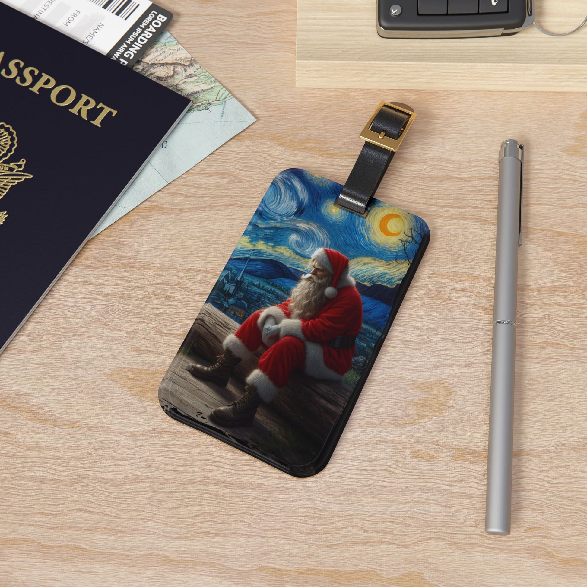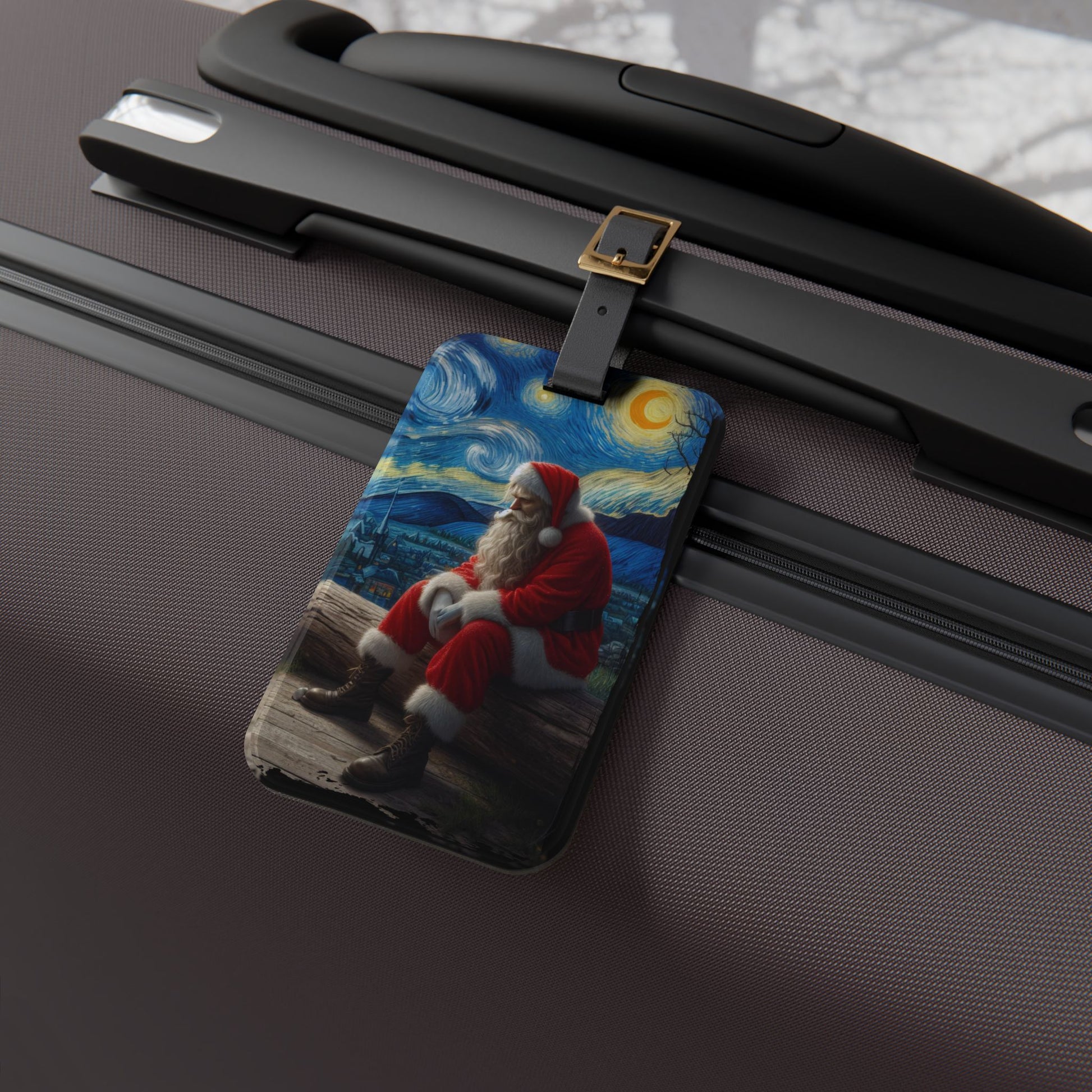 Santa Claus Night Sky Luggage Tag | Starry Night-Inspired Holiday Travel Accessory | Christmas Baggage ID for Santa Lovers | Festive Gift