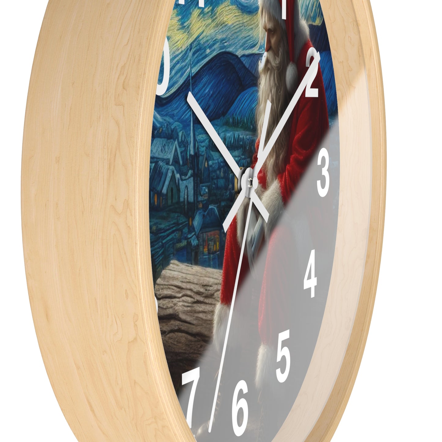 Santa Claus Night Sky Wall Clock | Battery Operated Starry Night-Inspired Holiday Art Perfect Christmas Gift Santa Lovers Festive Wall Decor