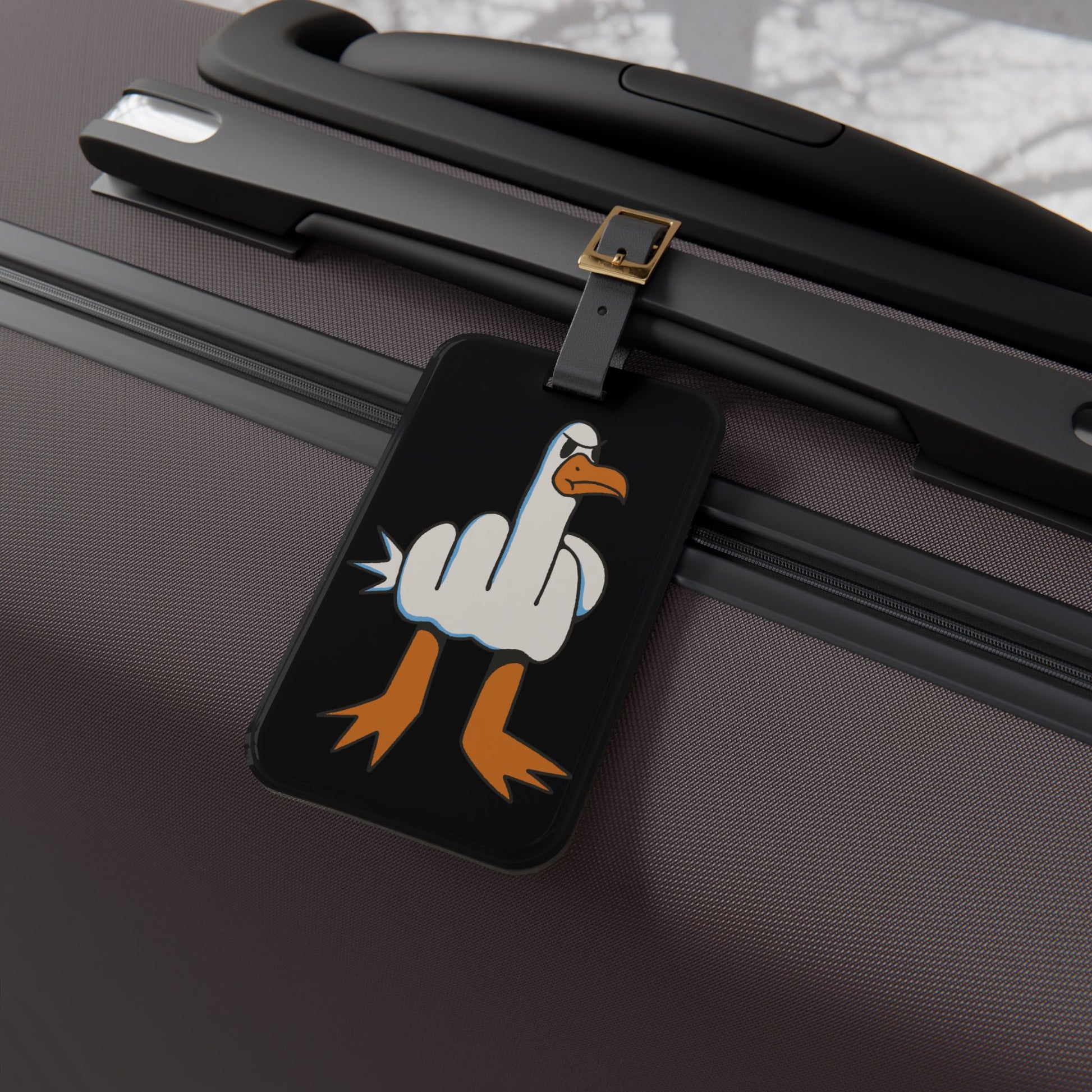 Sassy Seagull Middle Finger Luggage Tag | Funny Bird Gesture Travel Accessory | Sarcastic Beach Baggage ID | Attitude Gift for Bird Lovers