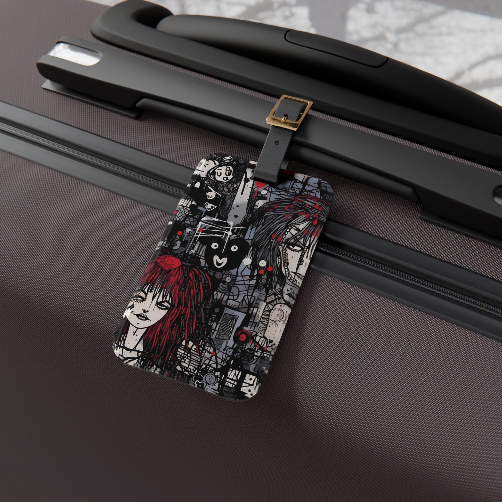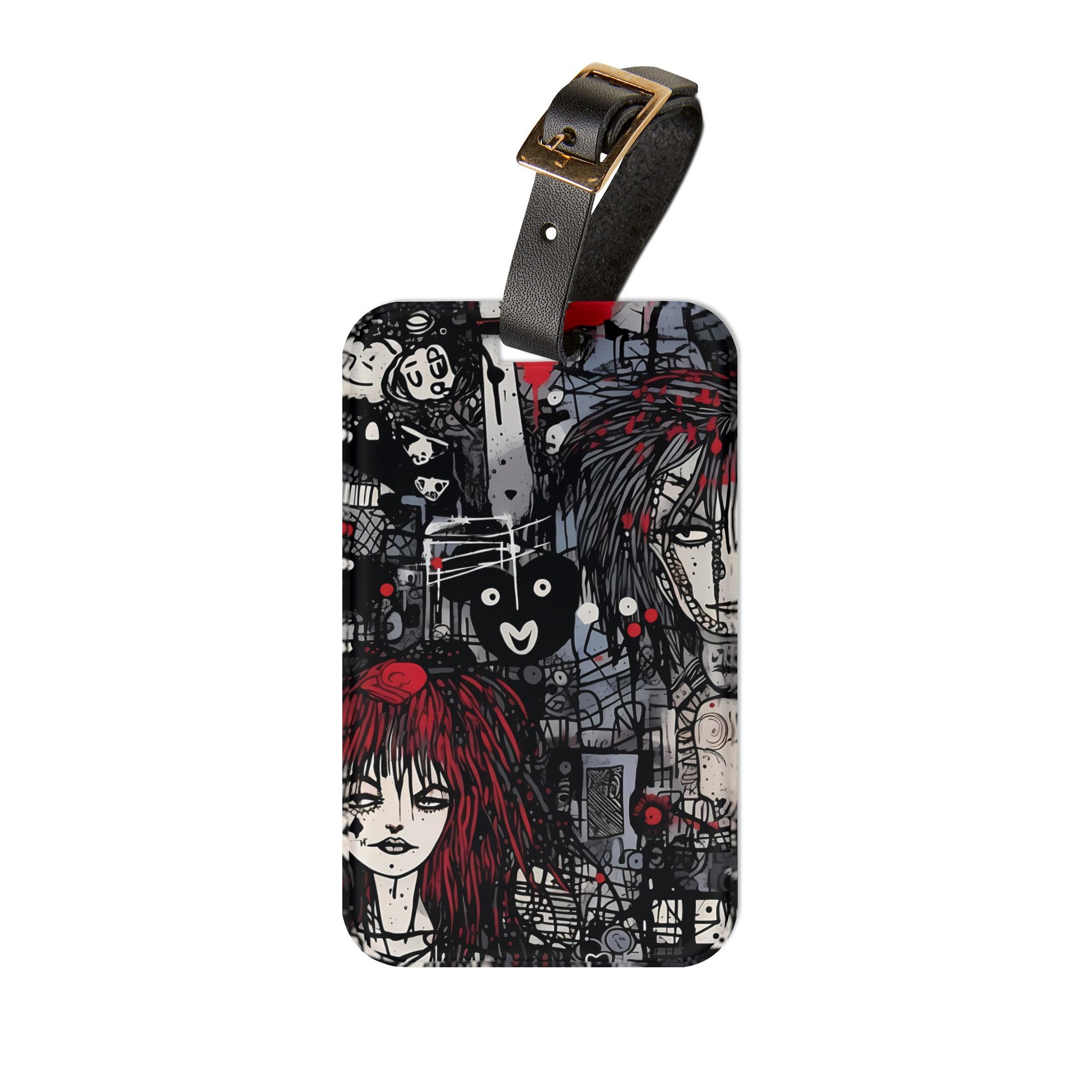 Scary Black and Red Skull Gothic Luggage Tag | Dark Aesthetic Travel Accessory | Unique Baggage ID for Emo Punk Lovers | Gothic Art Design