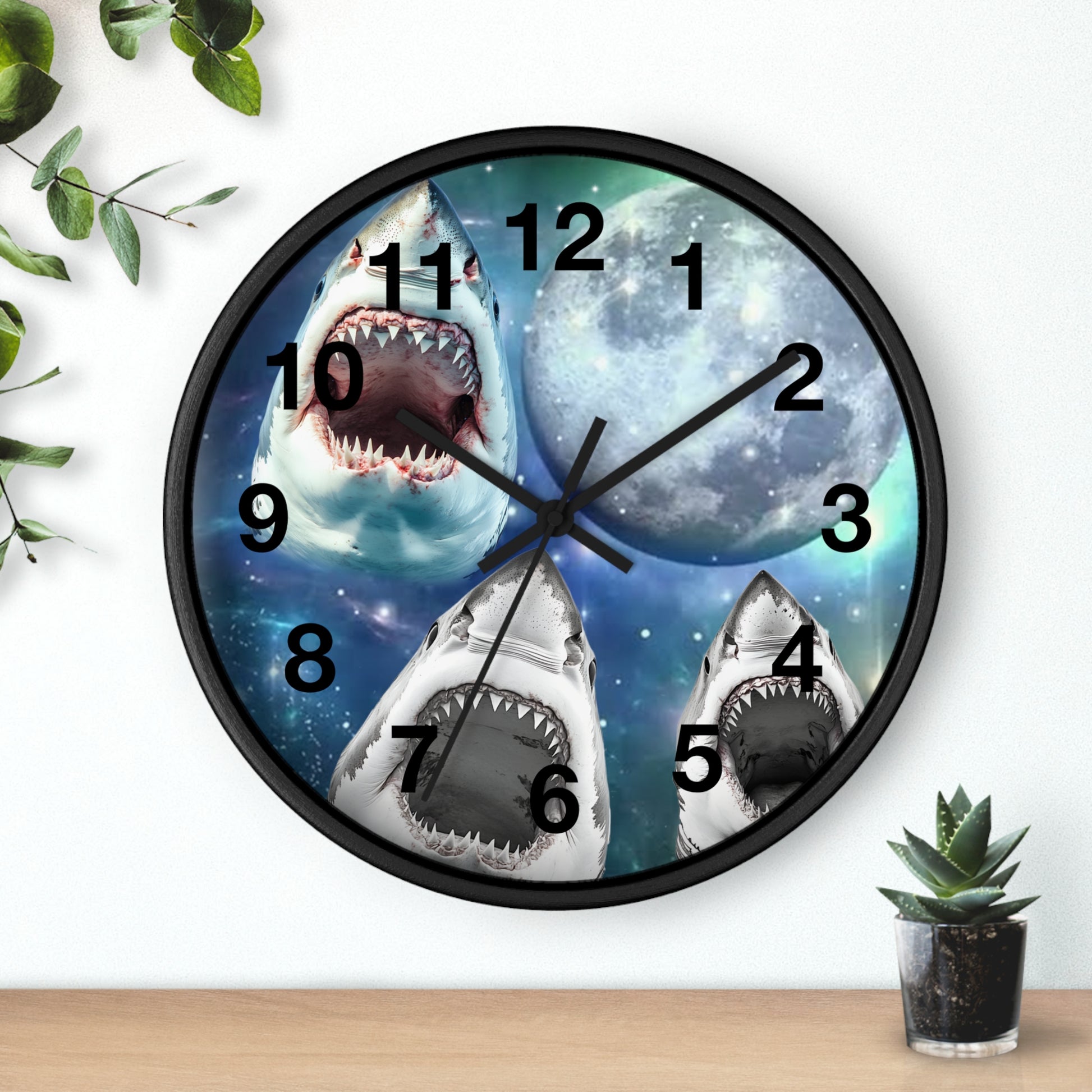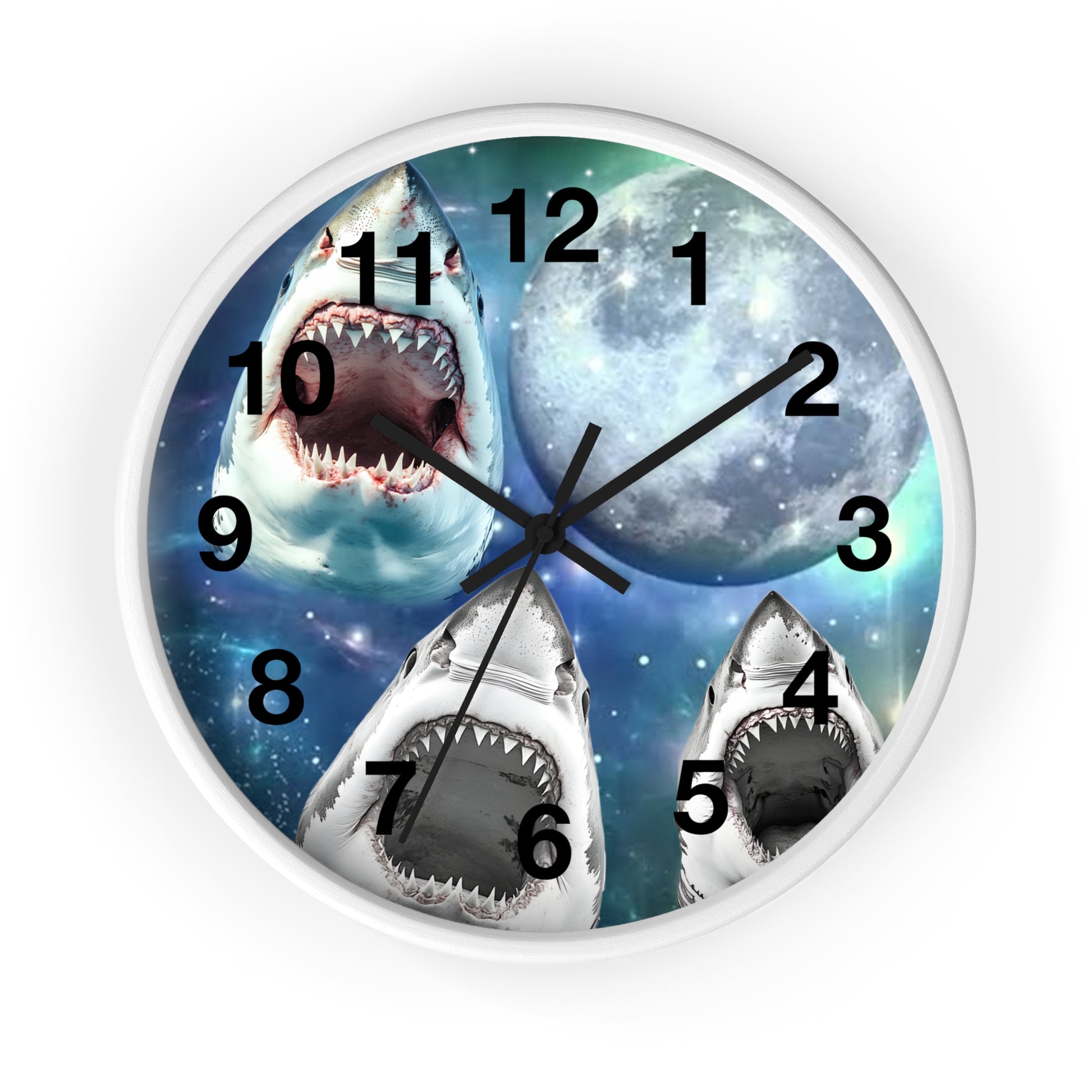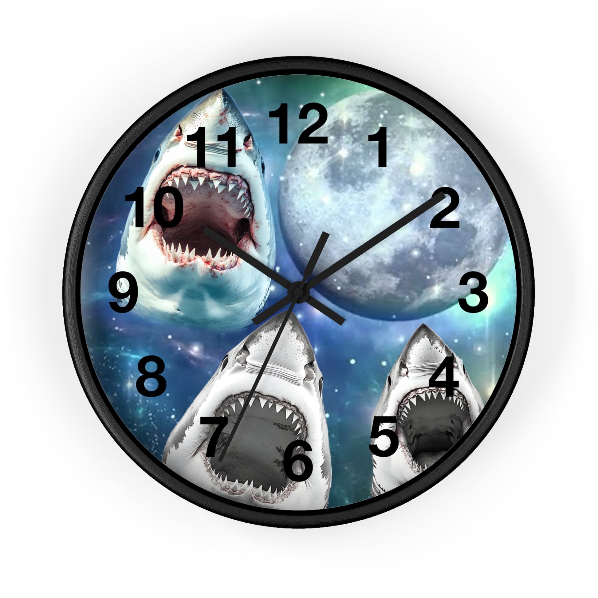 Sharks Howling at the Moon Wall Clock | Great White Shark Design | Battery Operated | Perfect Decor Shark Lovers Unique Ocean-Inspired Gift