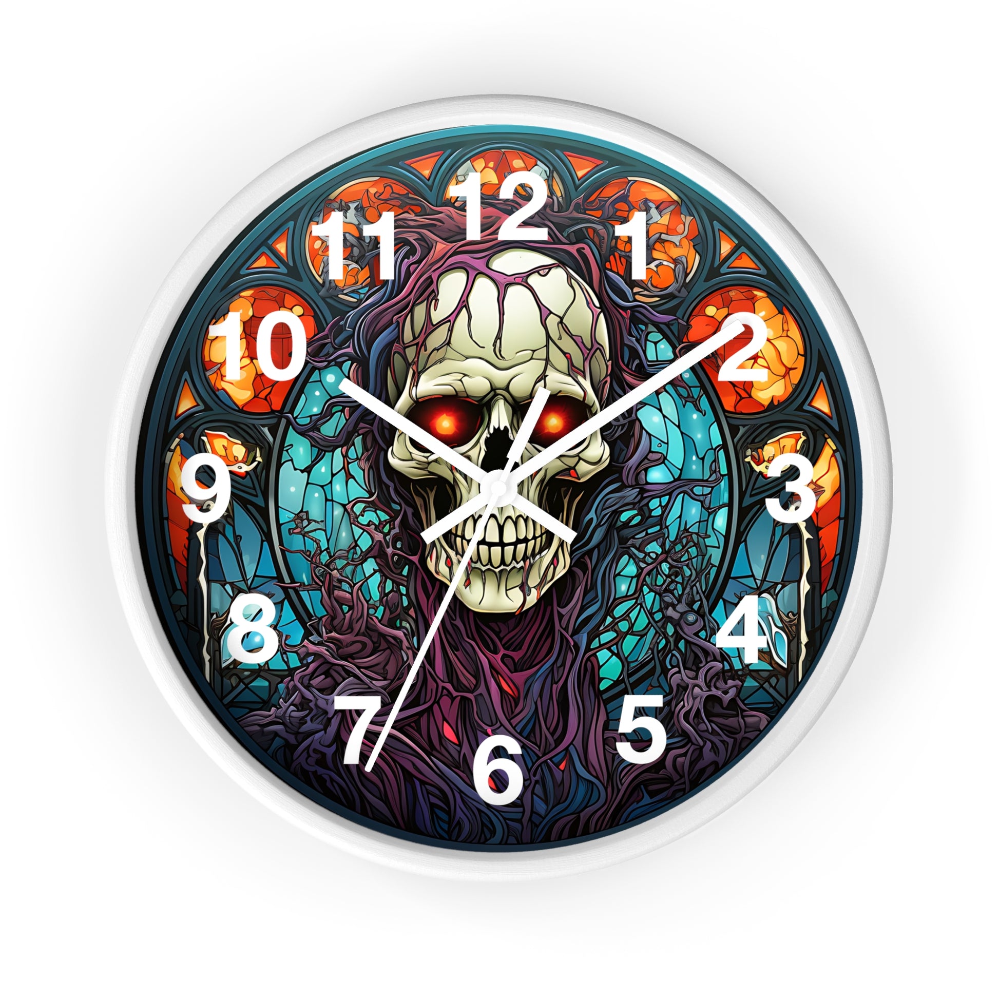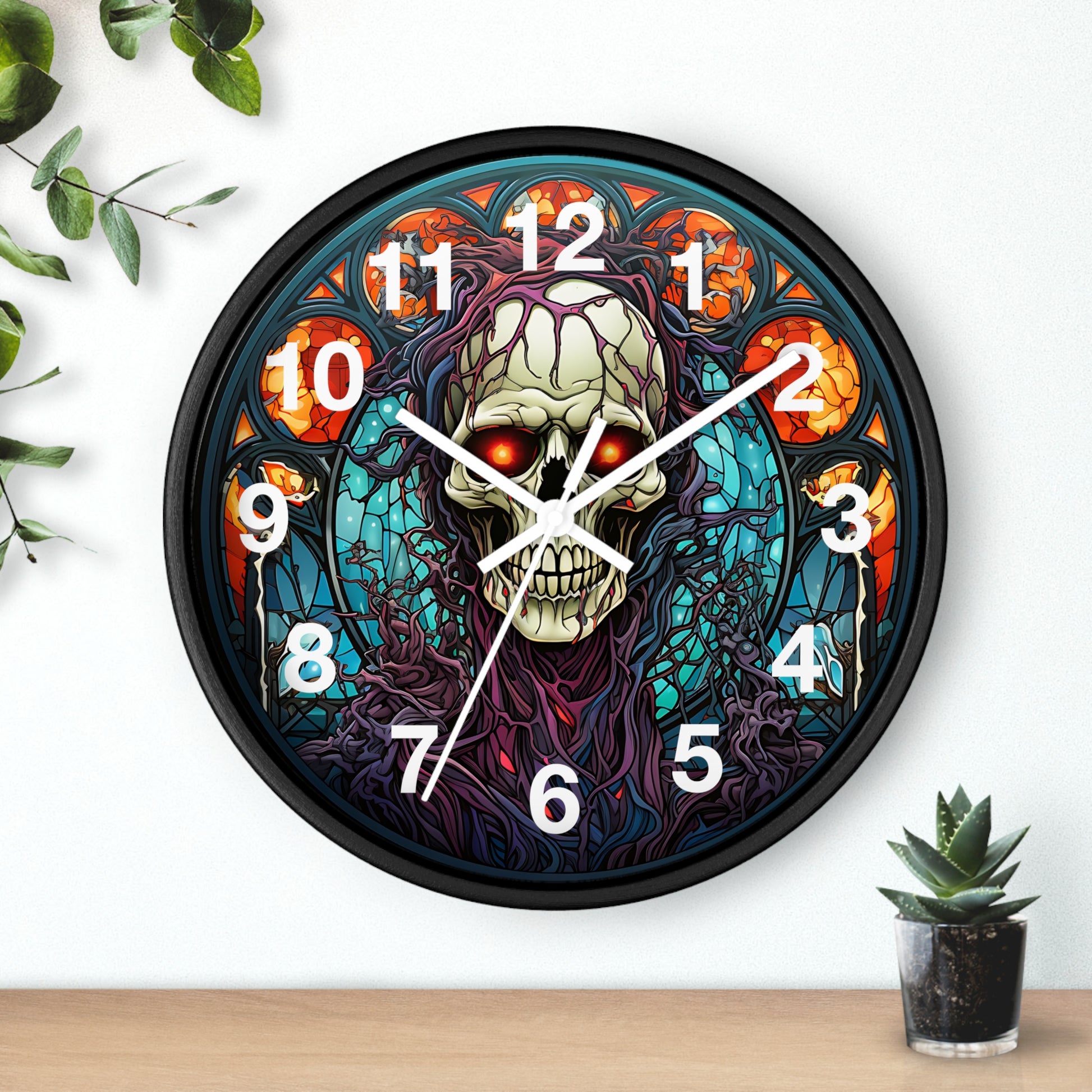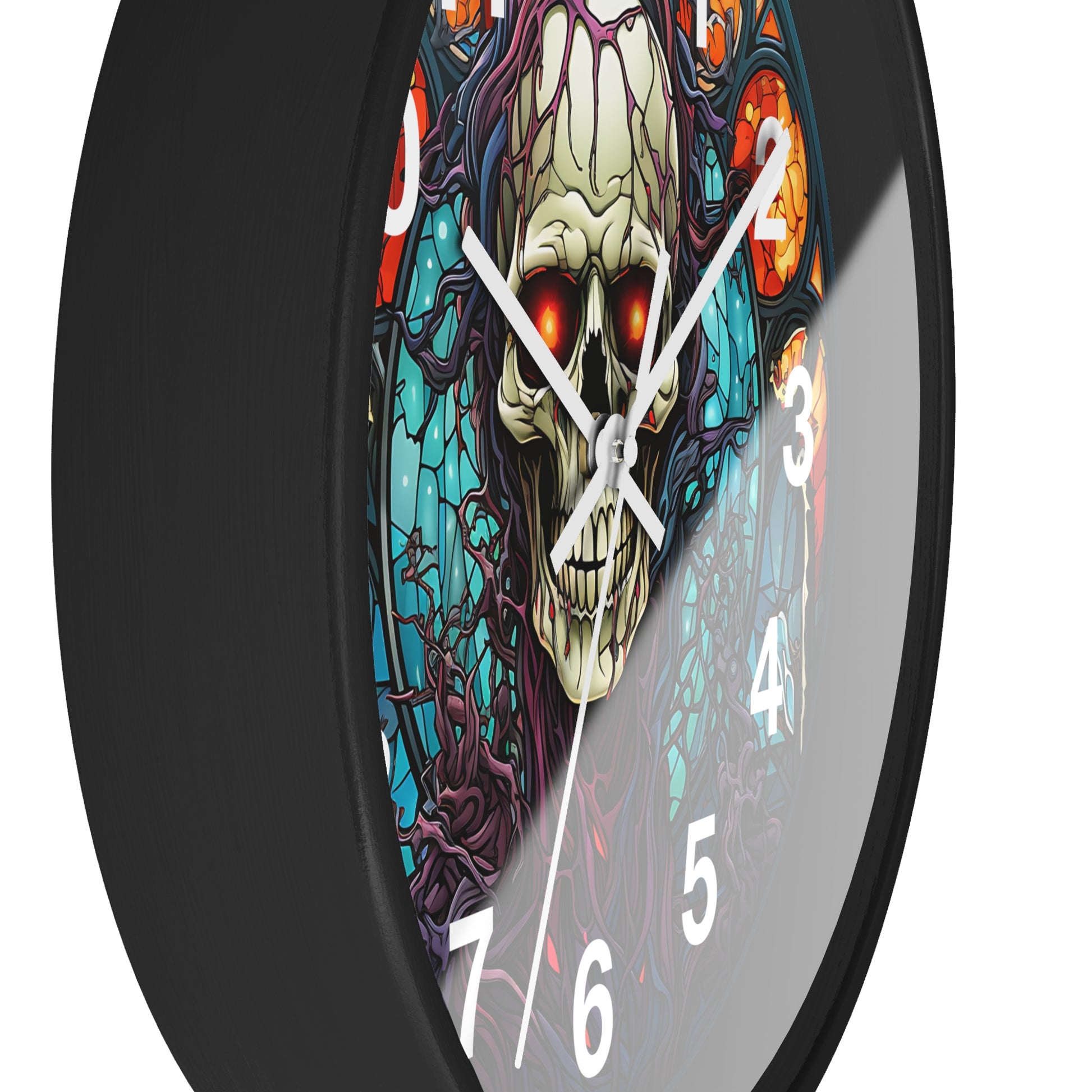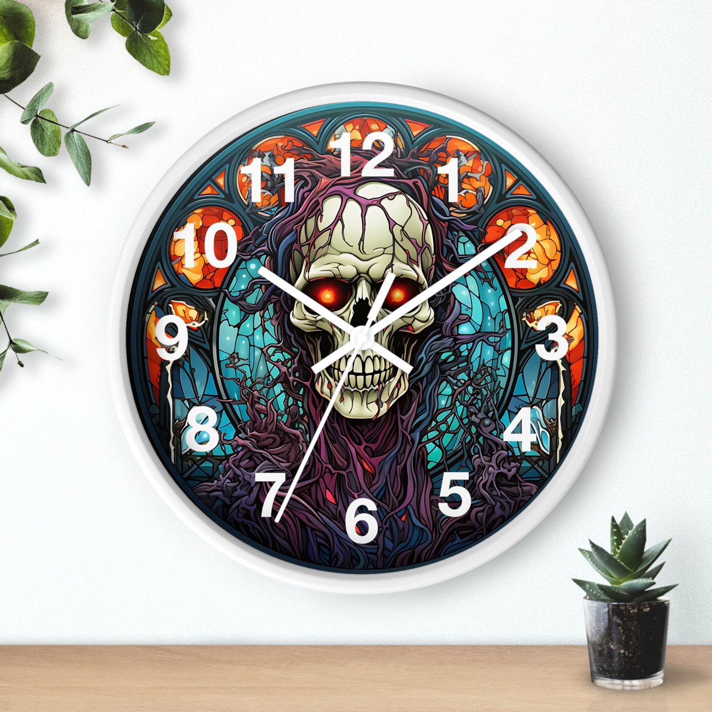 Skull Mosaic Glass Style Wall Clock | Battery Operated | Unique Gothic Decor | Perfect Gift for Skull Lovers | Eye-Catching Home Accent