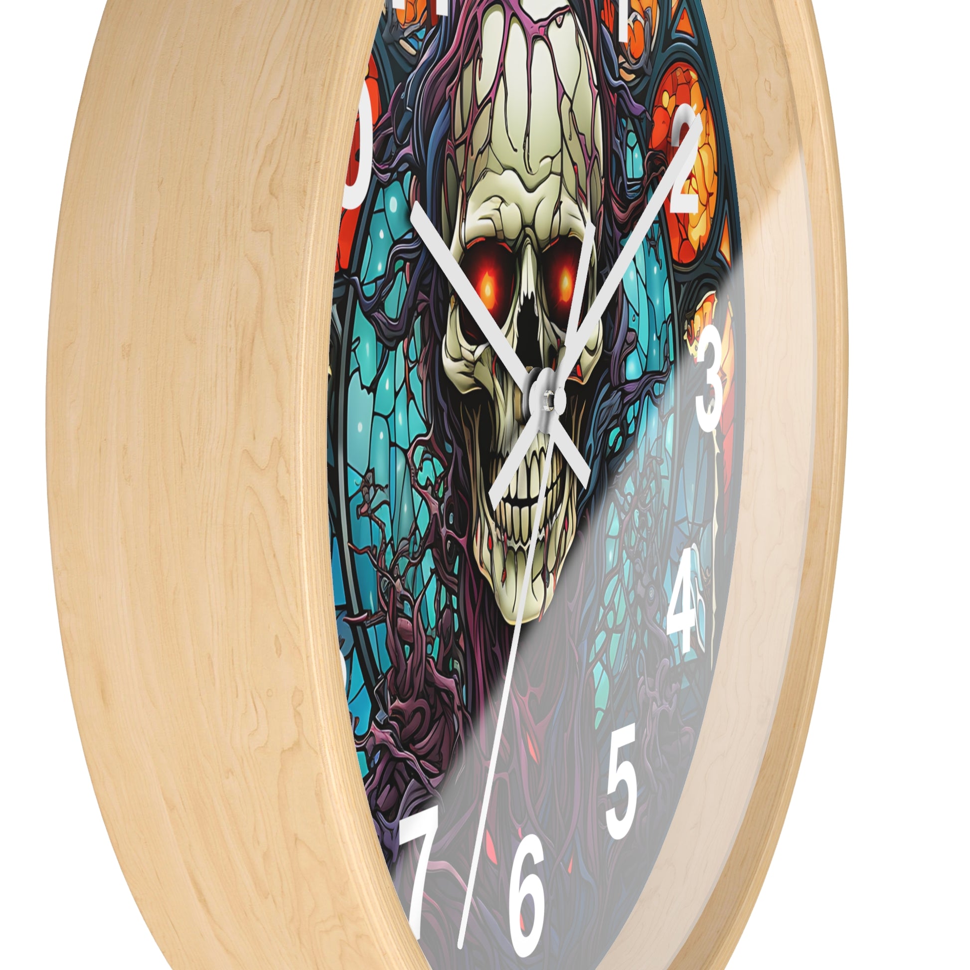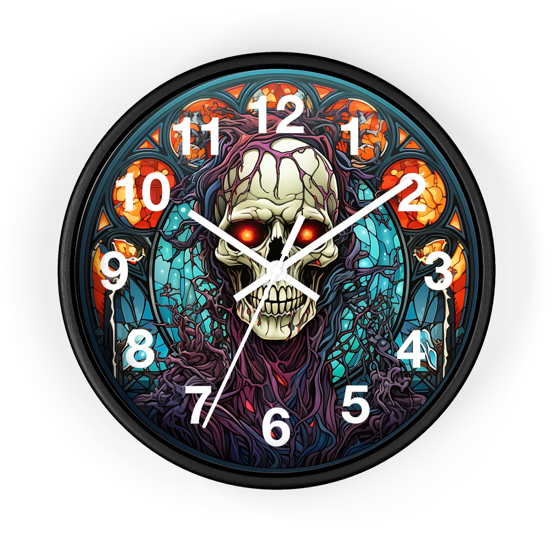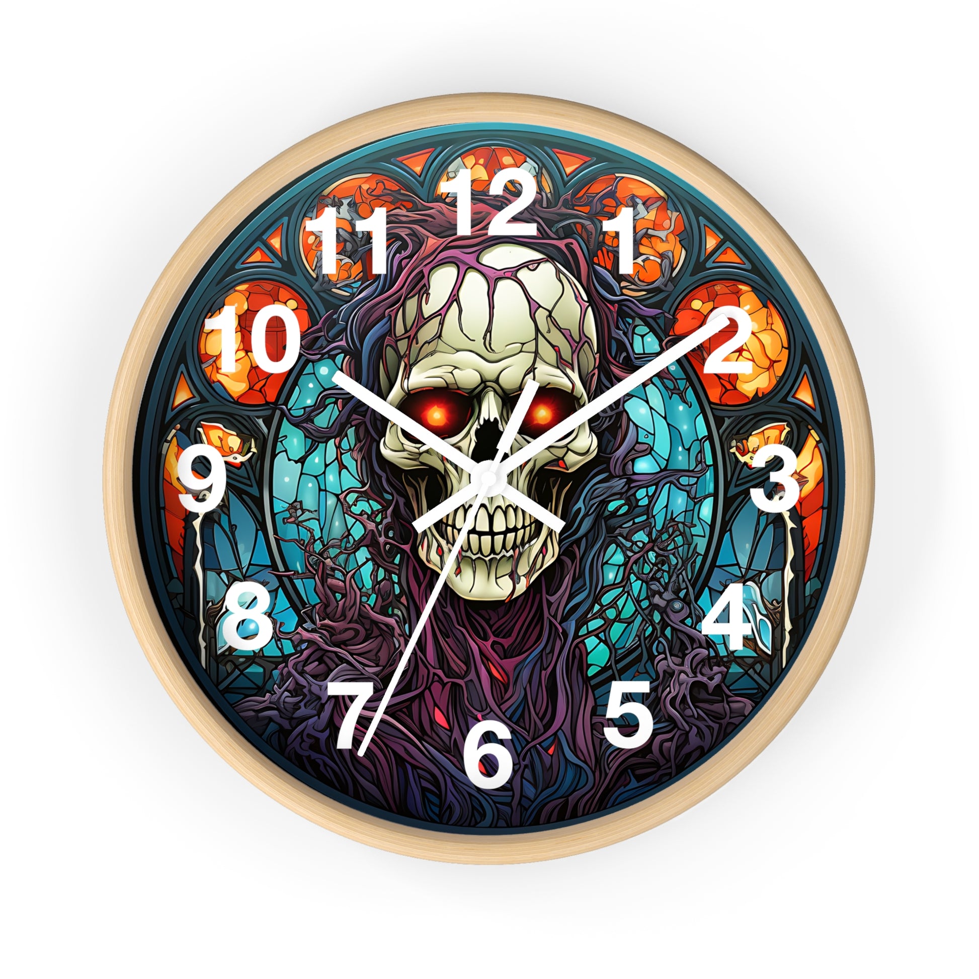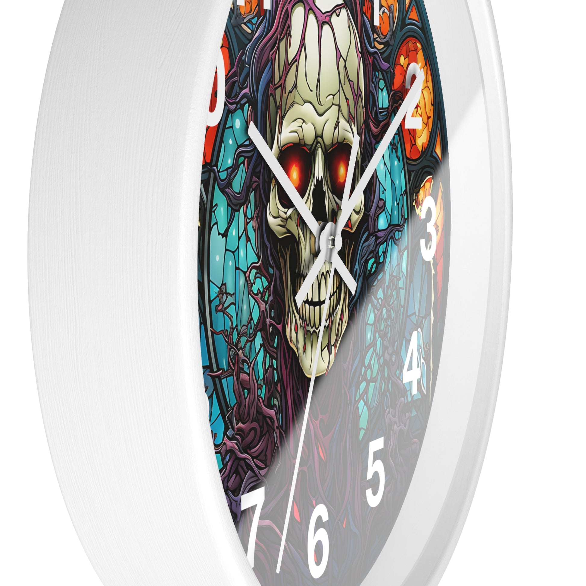 Skull Mosaic Glass Style Wall Clock | Battery Operated | Unique Gothic Decor | Perfect Gift for Skull Lovers | Eye-Catching Home Accent