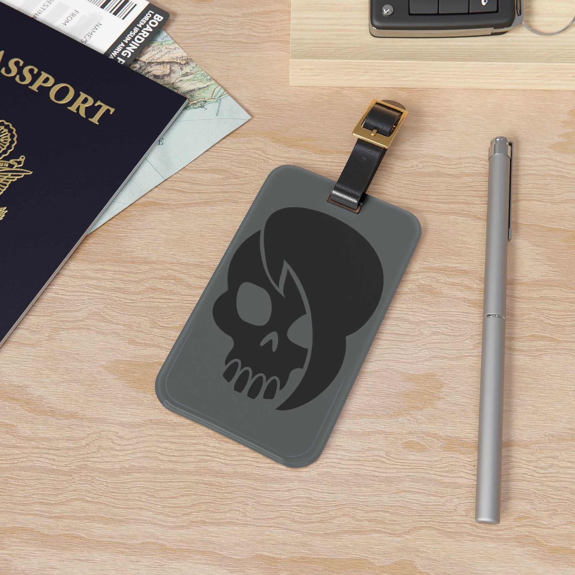 Skull With Emo Hair Luggage Tag | Grey Gothic Style Travel Accessory | Emo Statement Baggage ID | Spooky and Stylish Gift for Emo Lovers