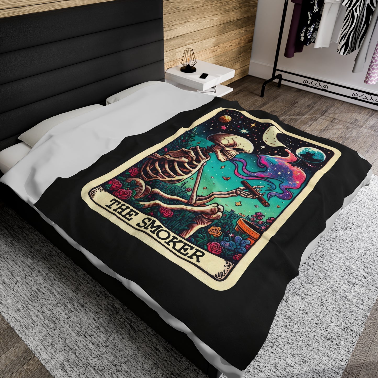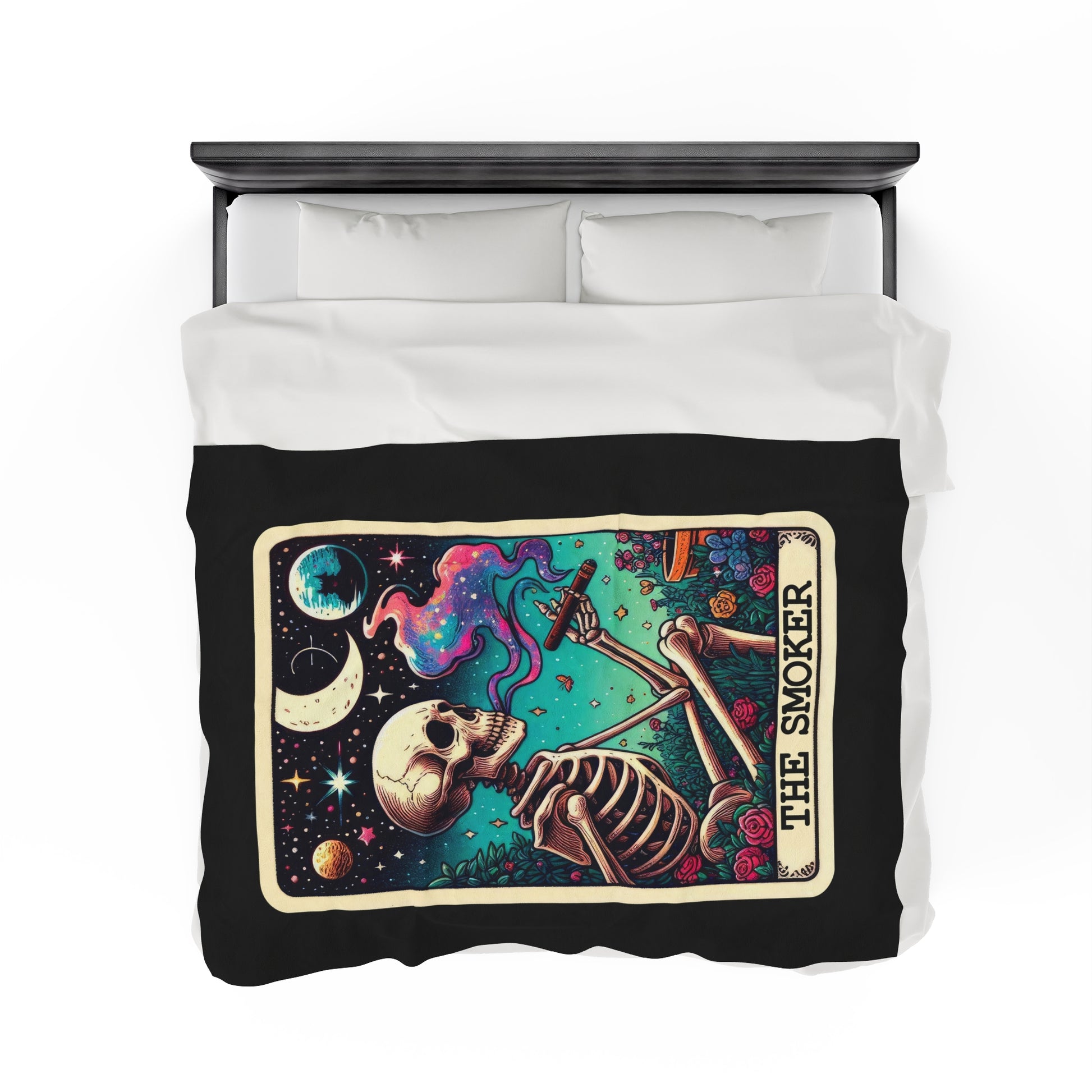 Smoker Tarot Card Velveteen Plush Throw Blanket | Unique Gift for Smokers | Tarot-Inspired Cozy Blanket Smoking Lovers Warm Relaxing Throw