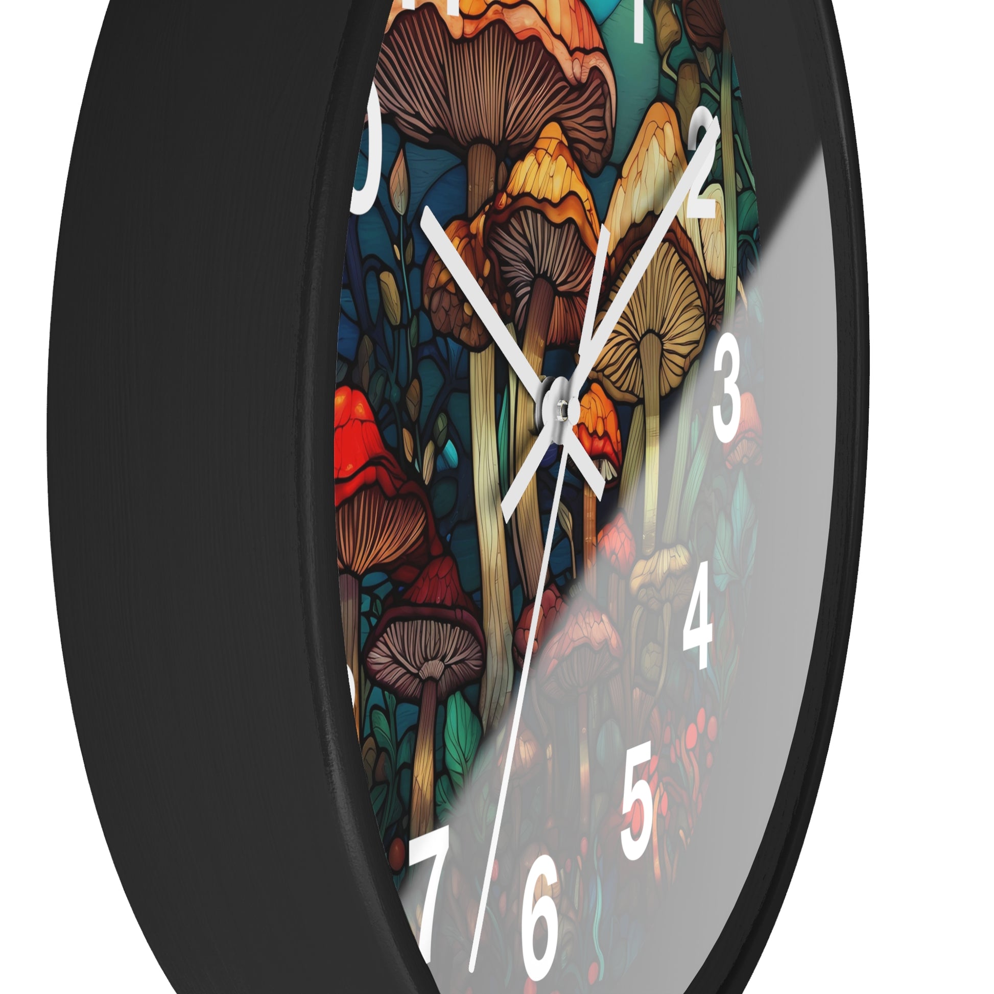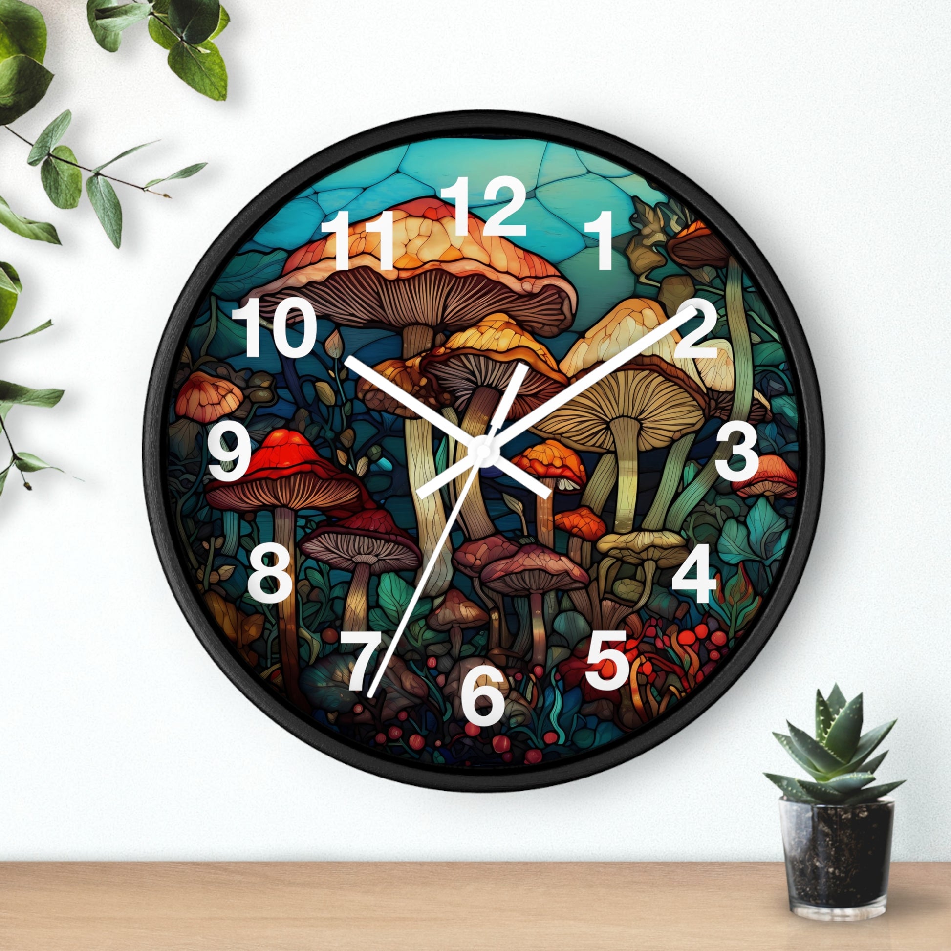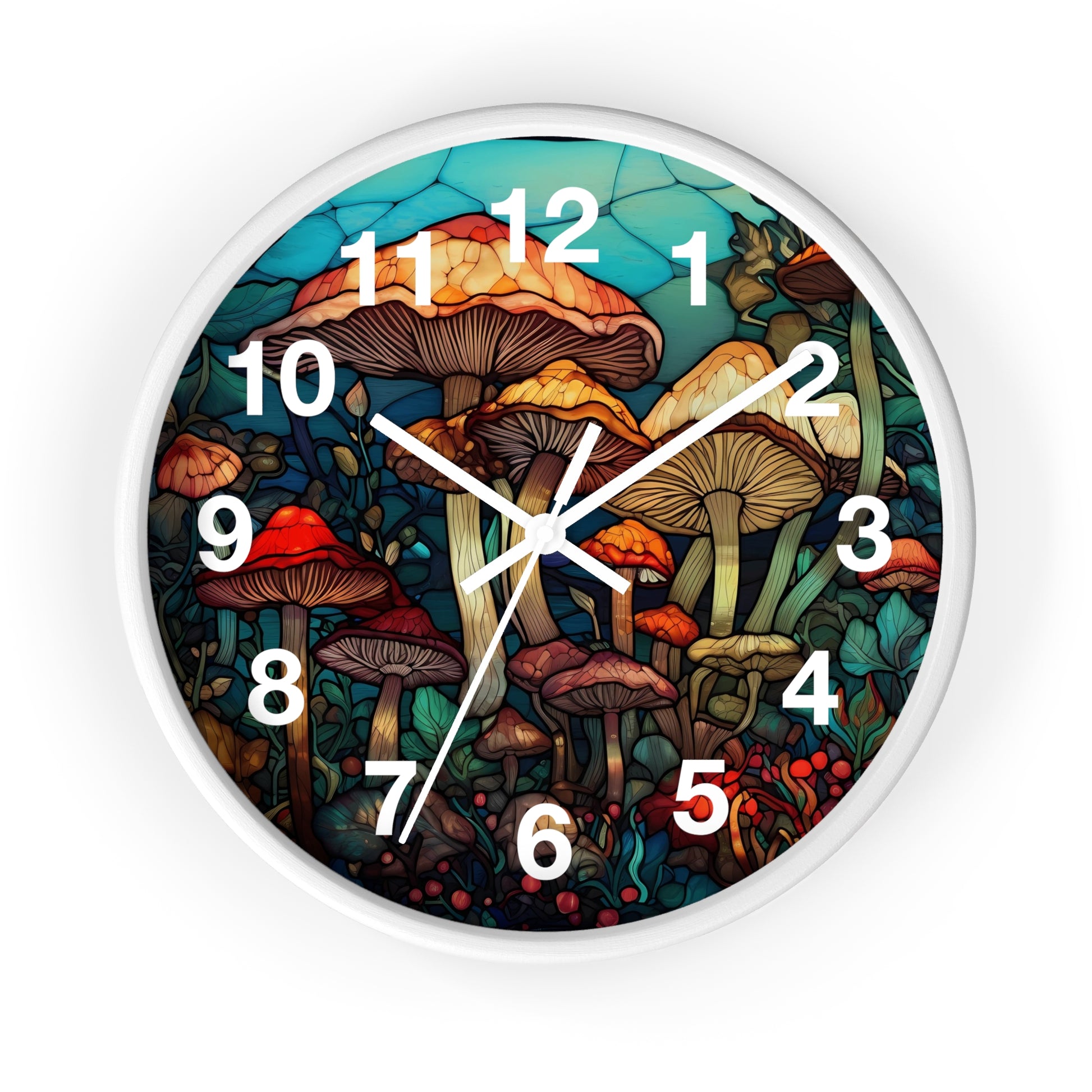 Stained Glass Mushroom Wall Clock | Psychedelic Rave Shroom Decor | Trippy Stain Glass Design | Battery Operated | Unique Garden Gift