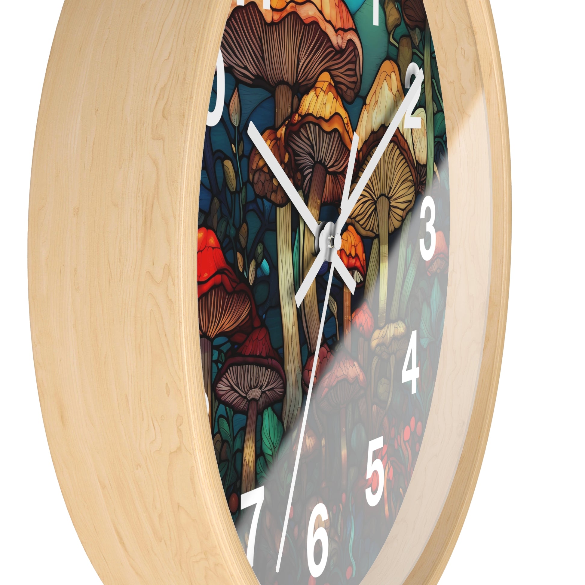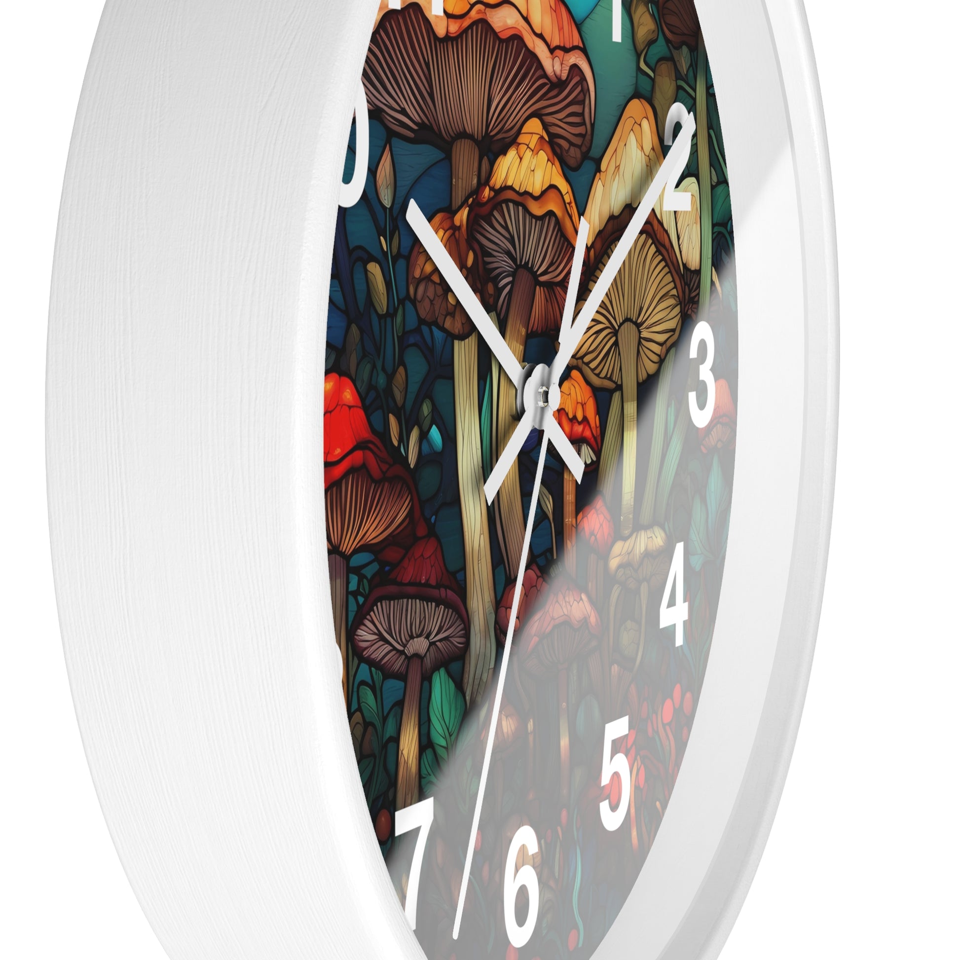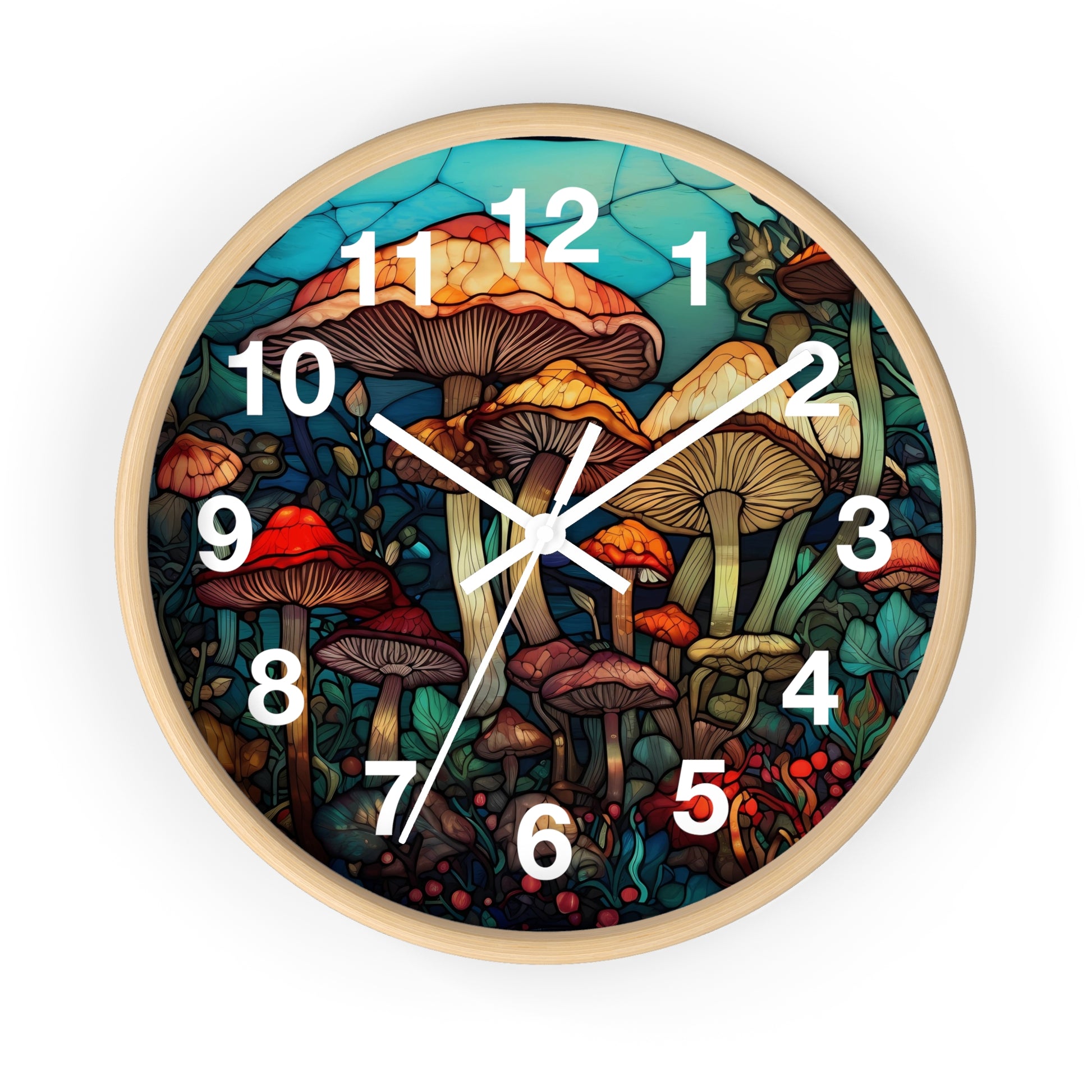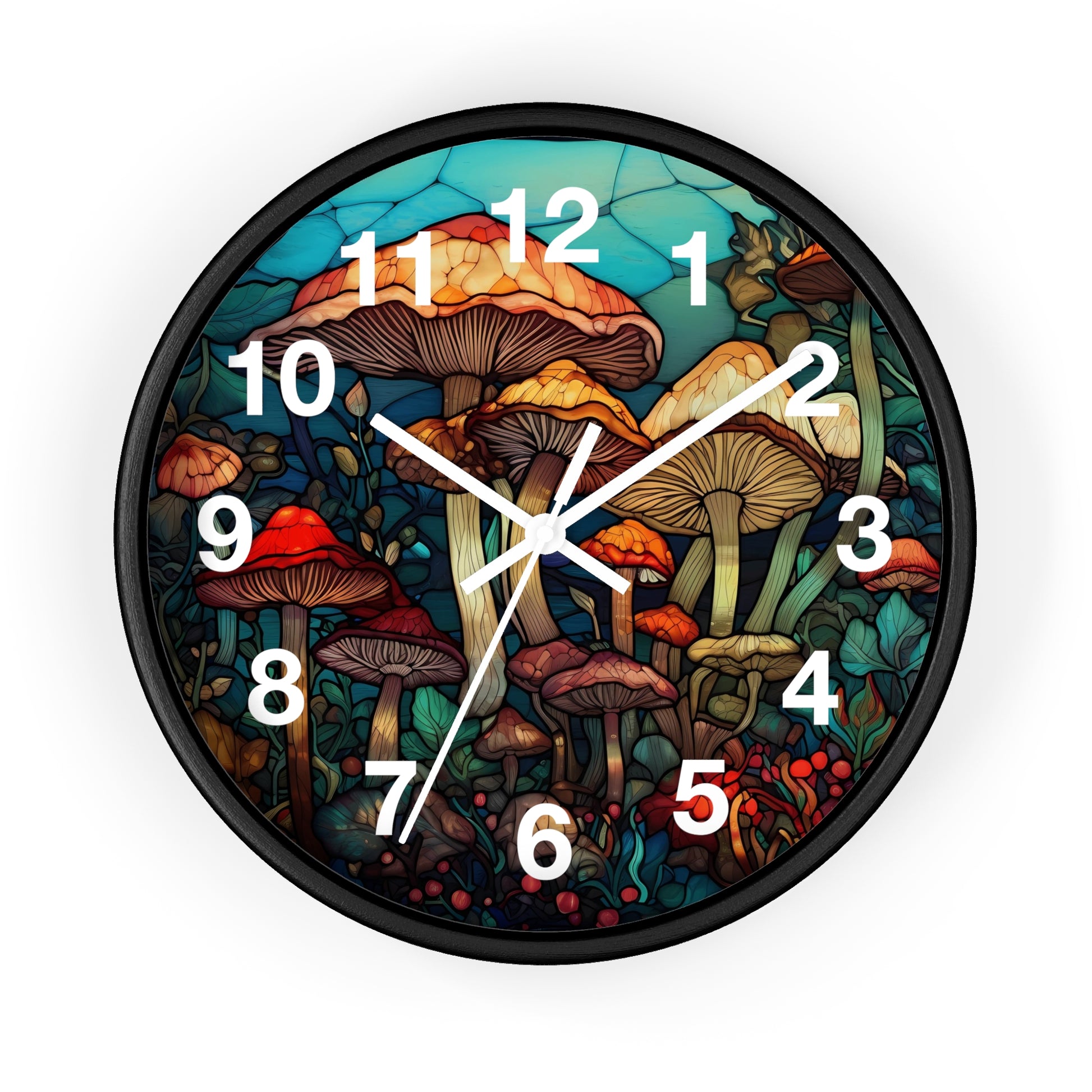 Stained Glass Mushroom Wall Clock | Psychedelic Rave Shroom Decor | Trippy Stain Glass Design | Battery Operated | Unique Garden Gift