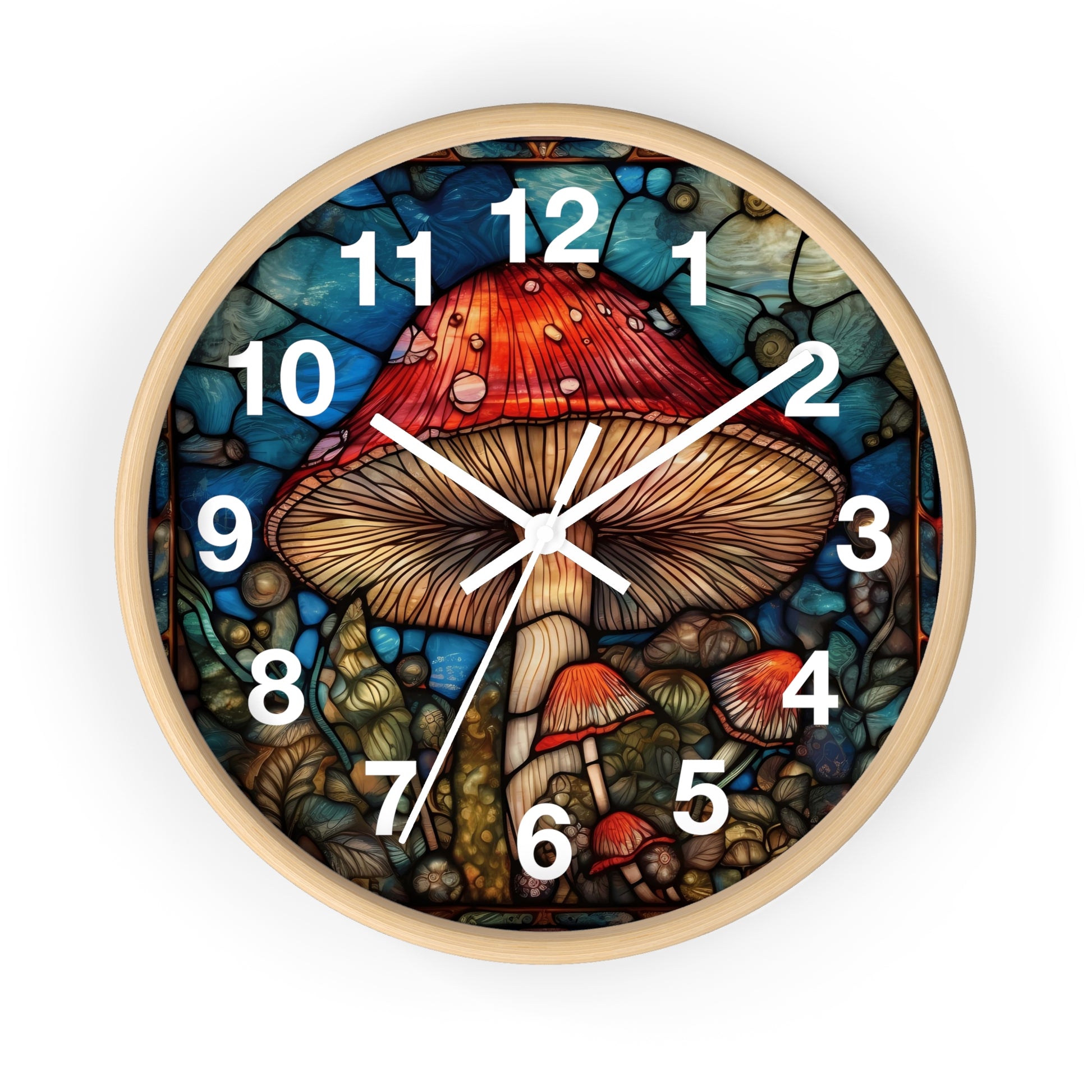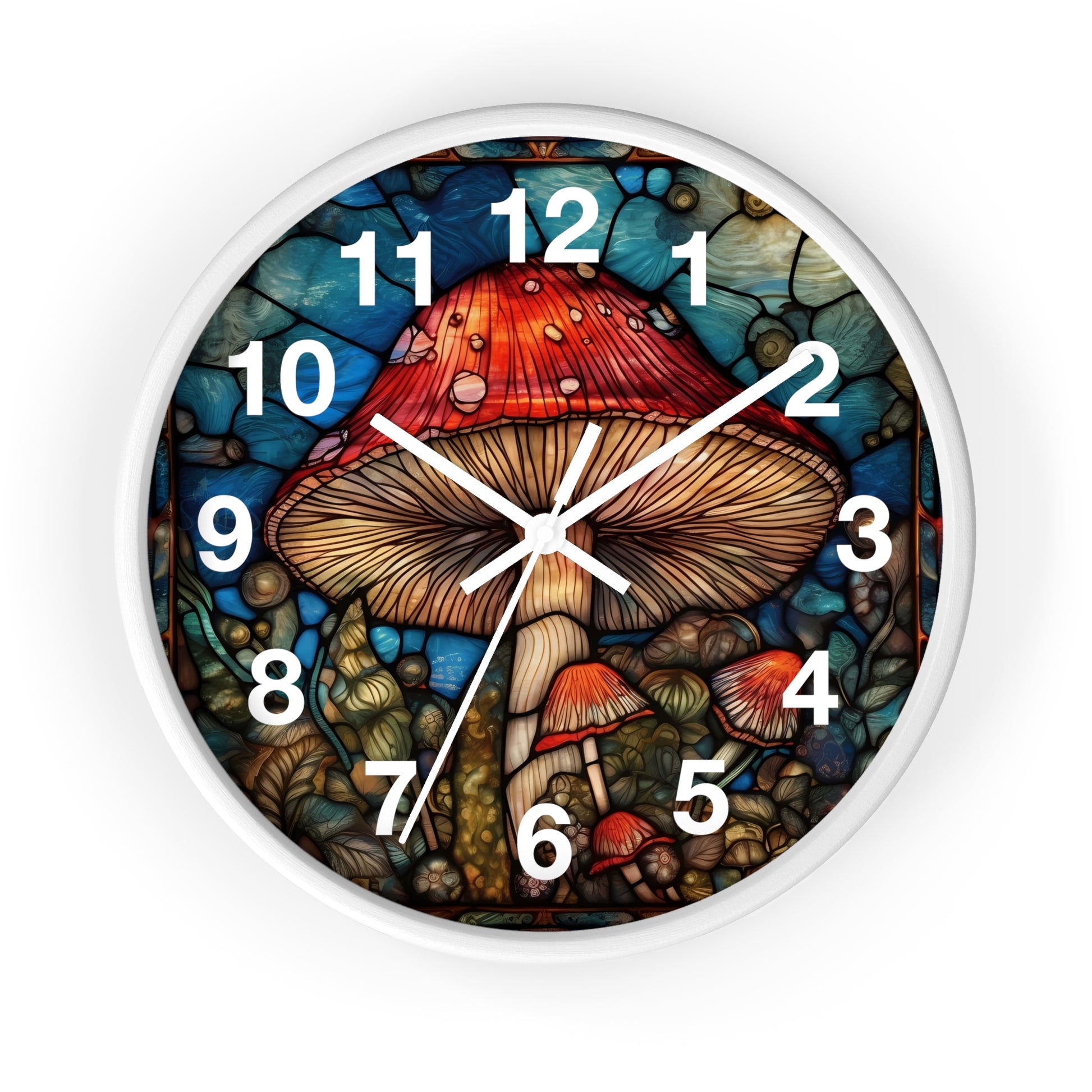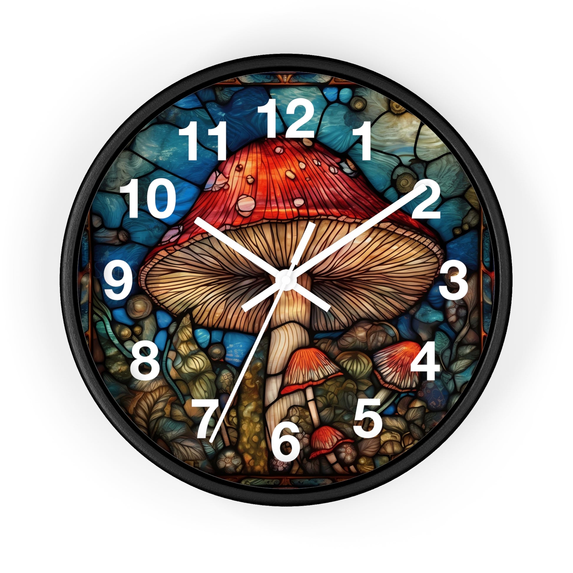 Stained Glass Mushroom Wall Clock | Psychedelic Shroom Decor | Trippy Stain Glass Garden Style | Battery Operated | Unique Rave Gift