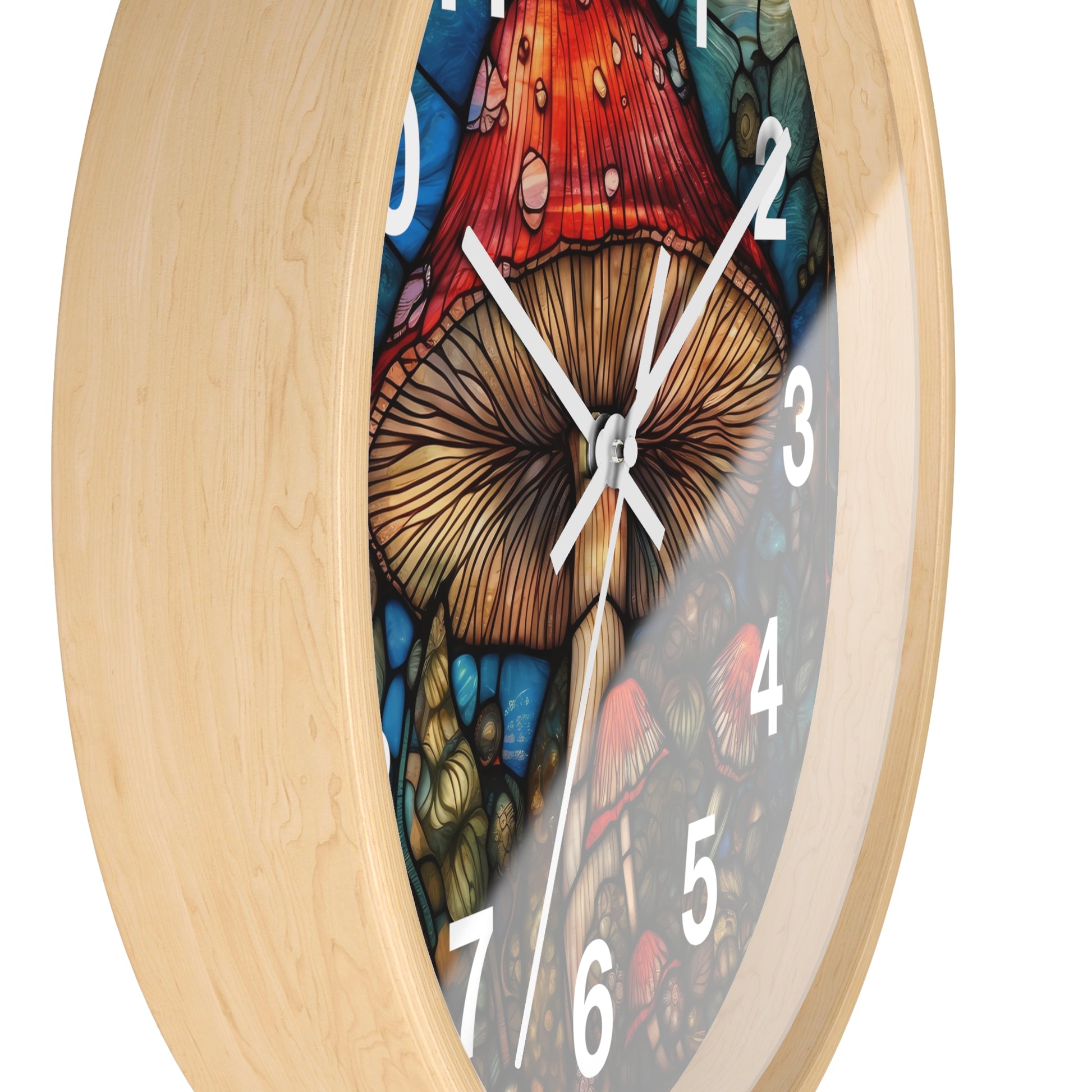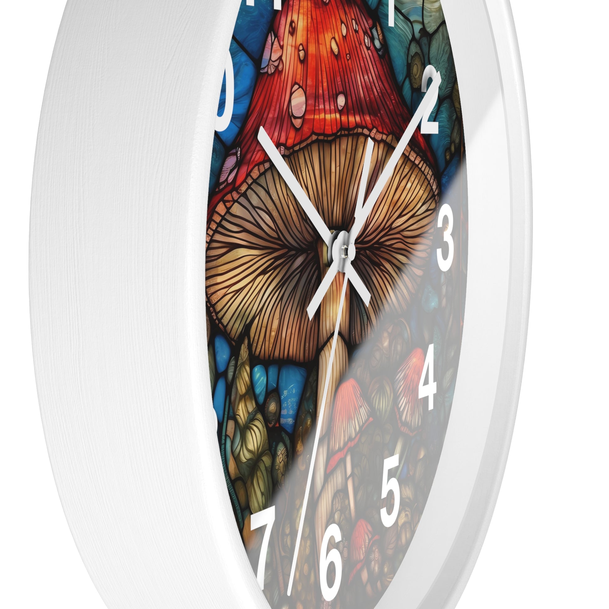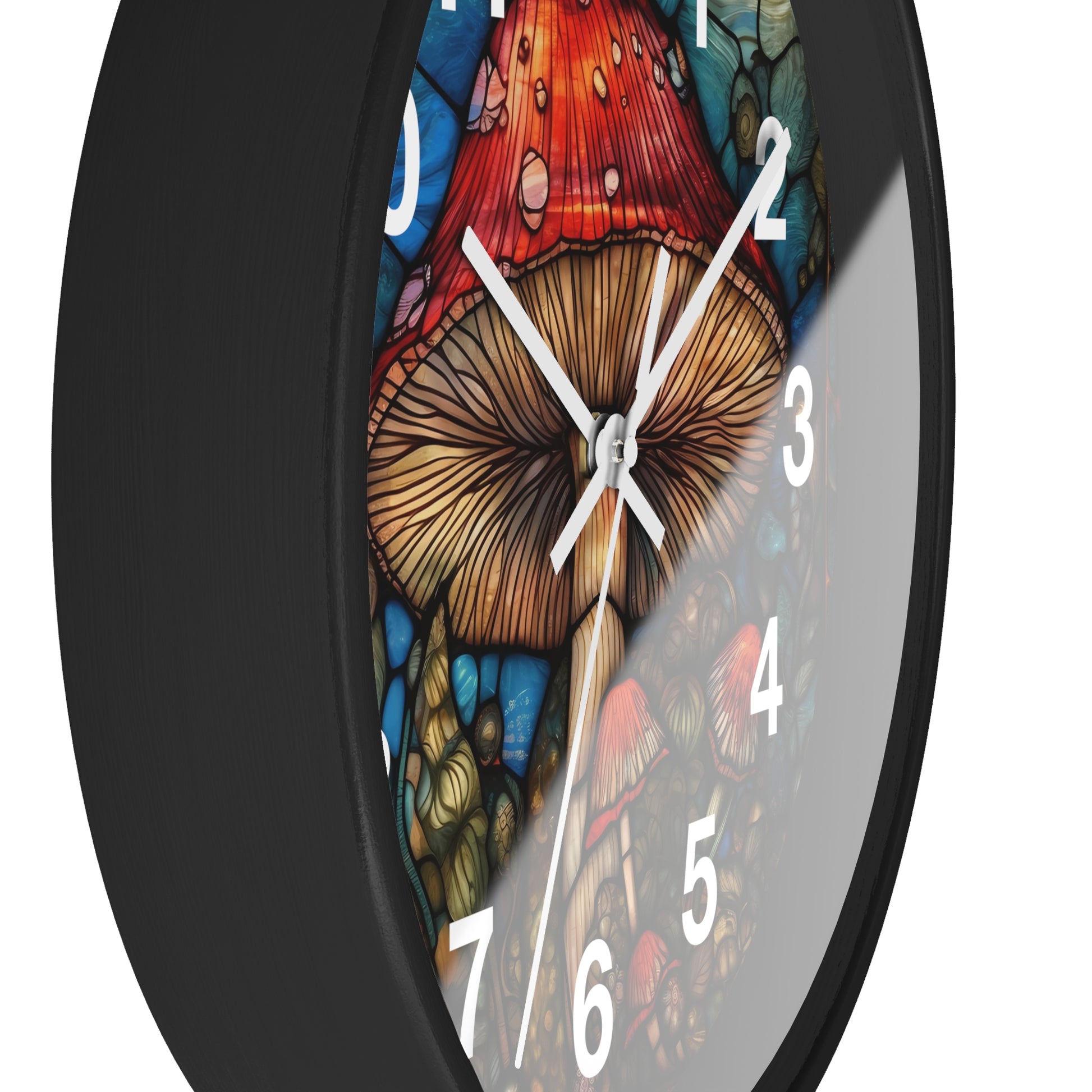 Stained Glass Mushroom Wall Clock | Psychedelic Shroom Decor | Trippy Stain Glass Garden Style | Battery Operated | Unique Rave Gift