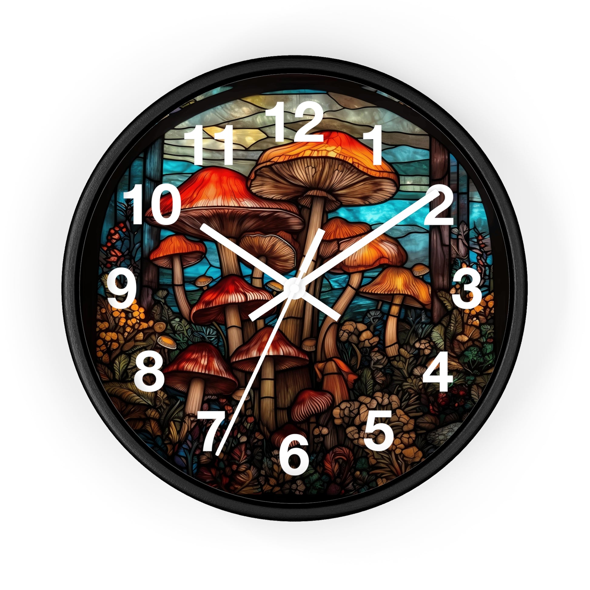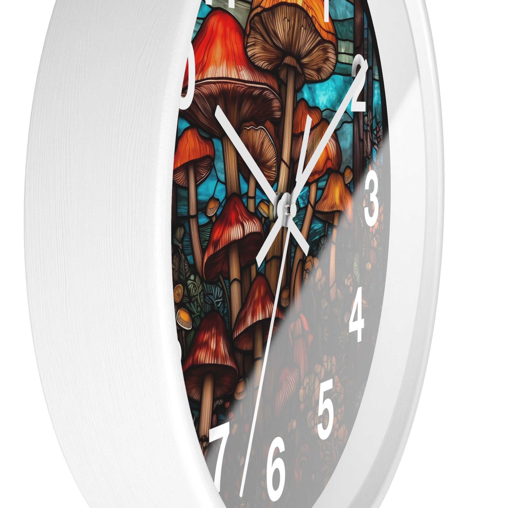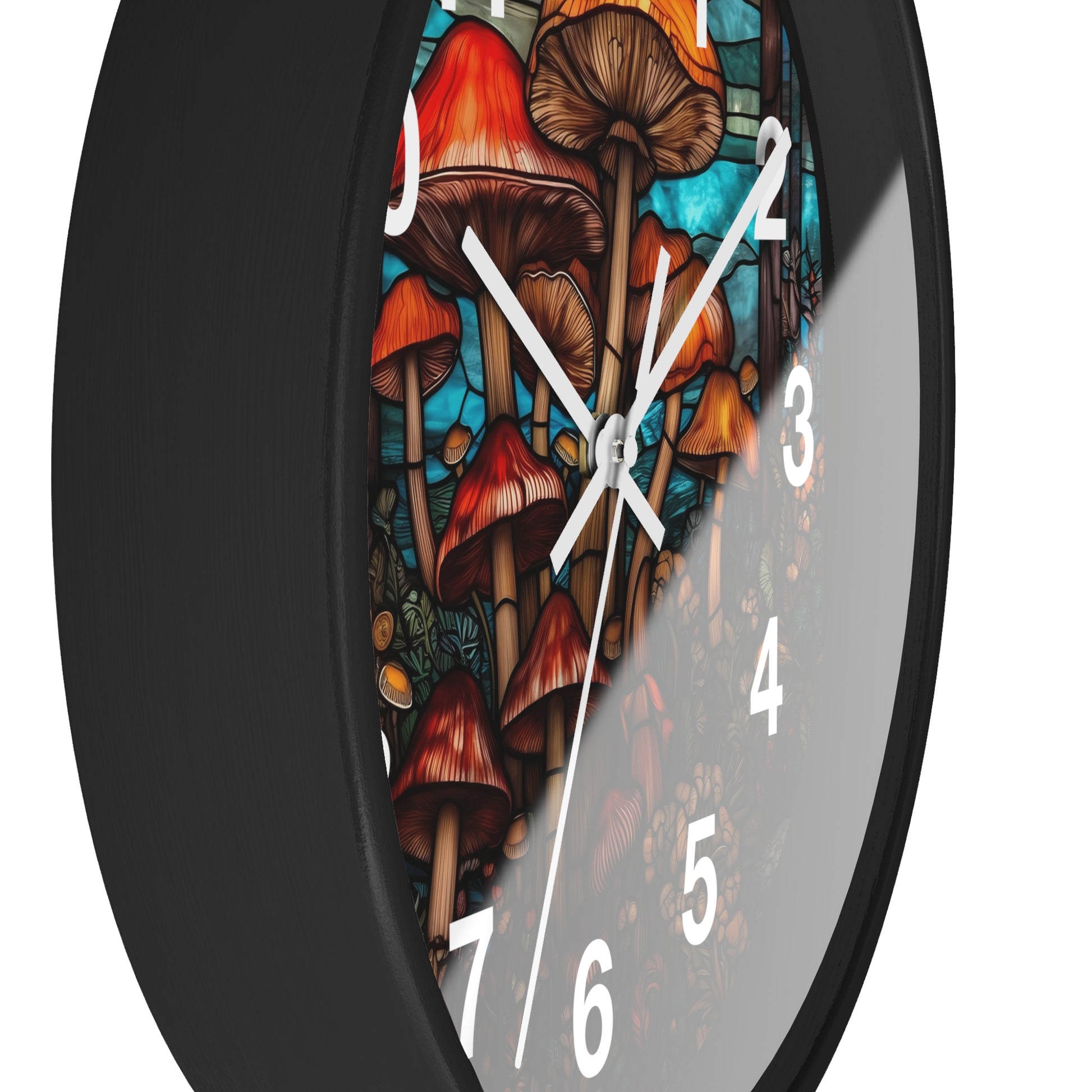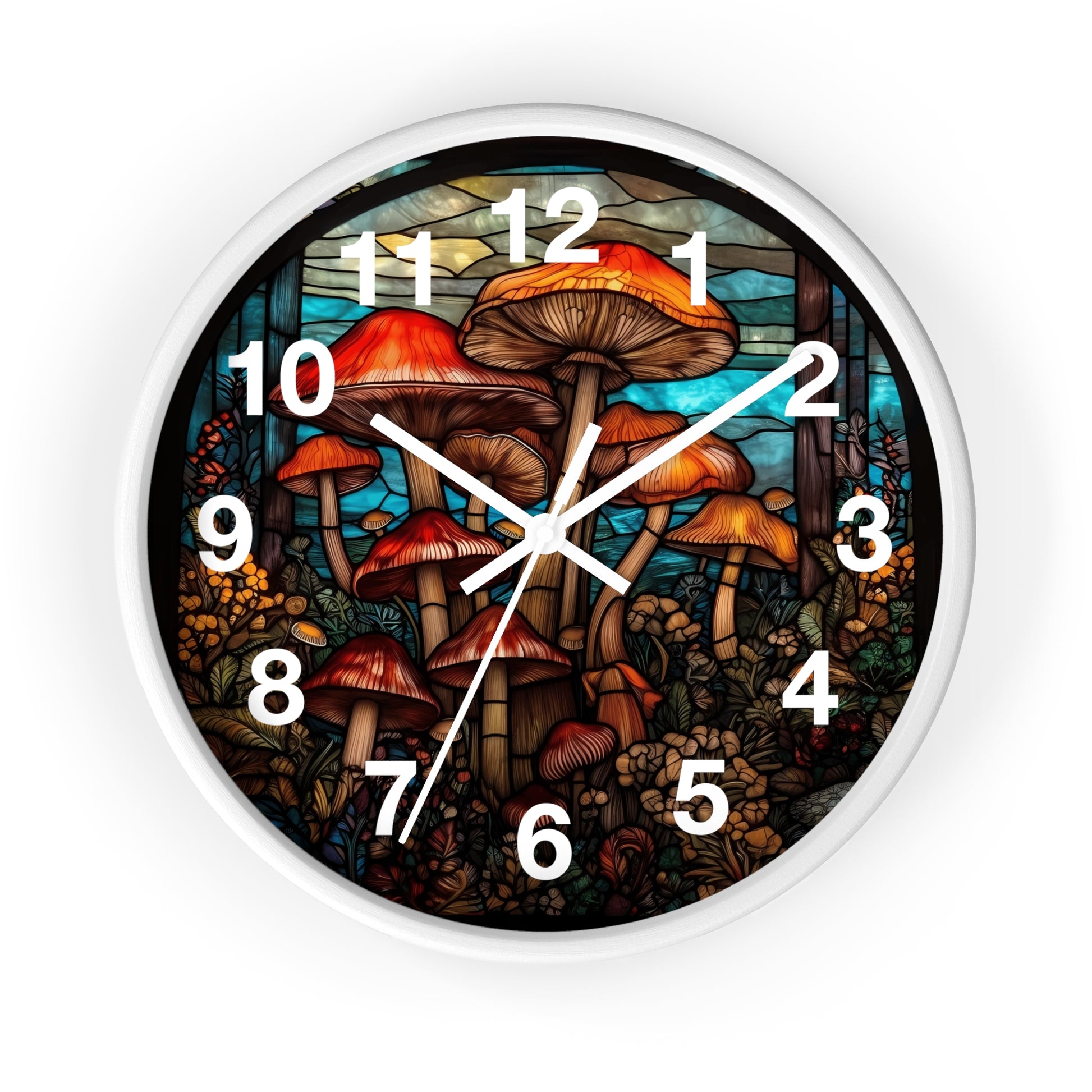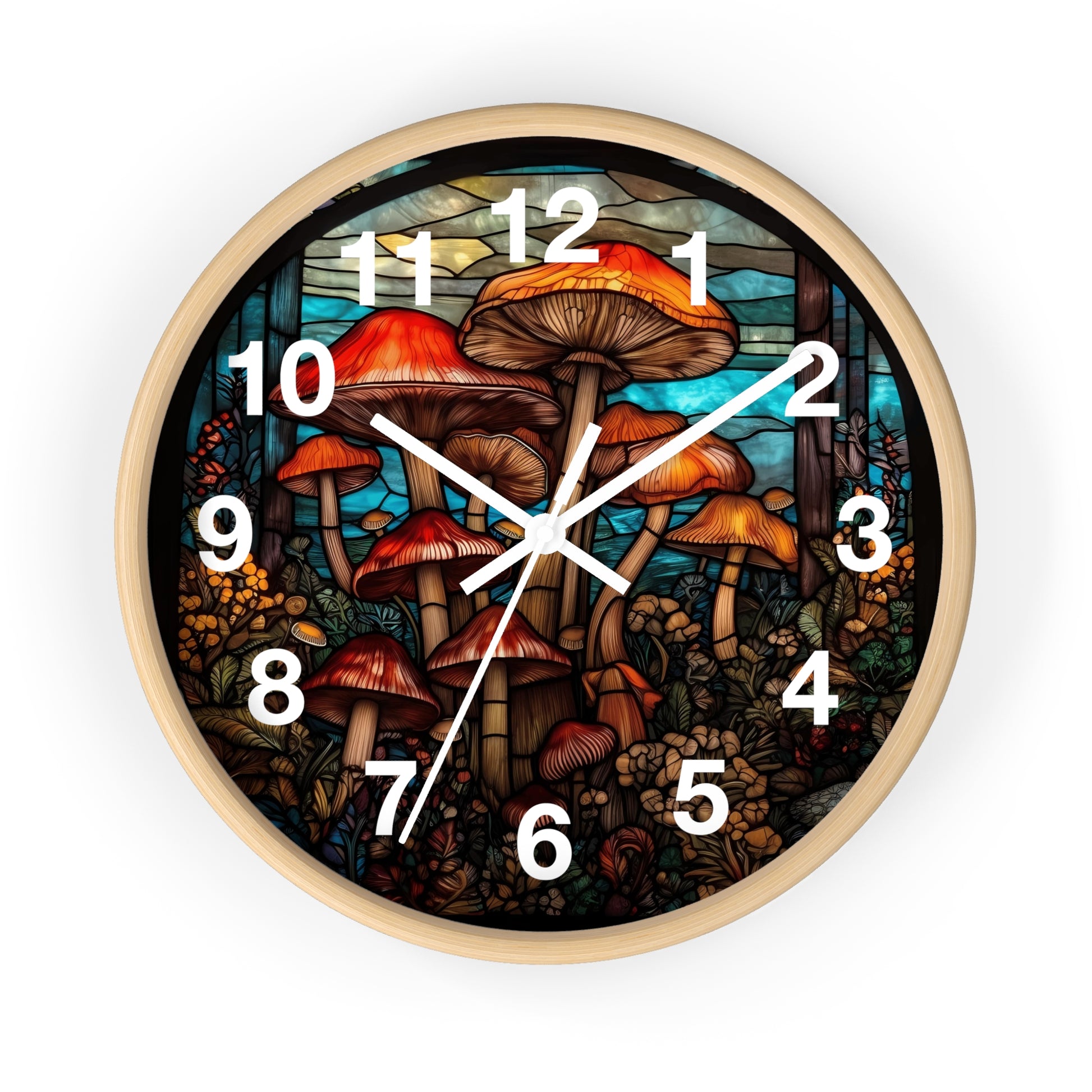 Stained Glass Mushroom Wall Clock | Trippy Rave Shroom Decor | Stain Glass Garden Aesthetic Battery Operated Unique Gift Psychedelic Lovers