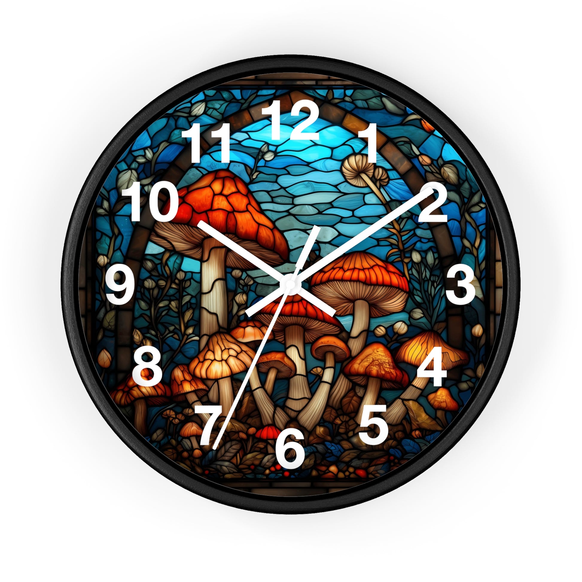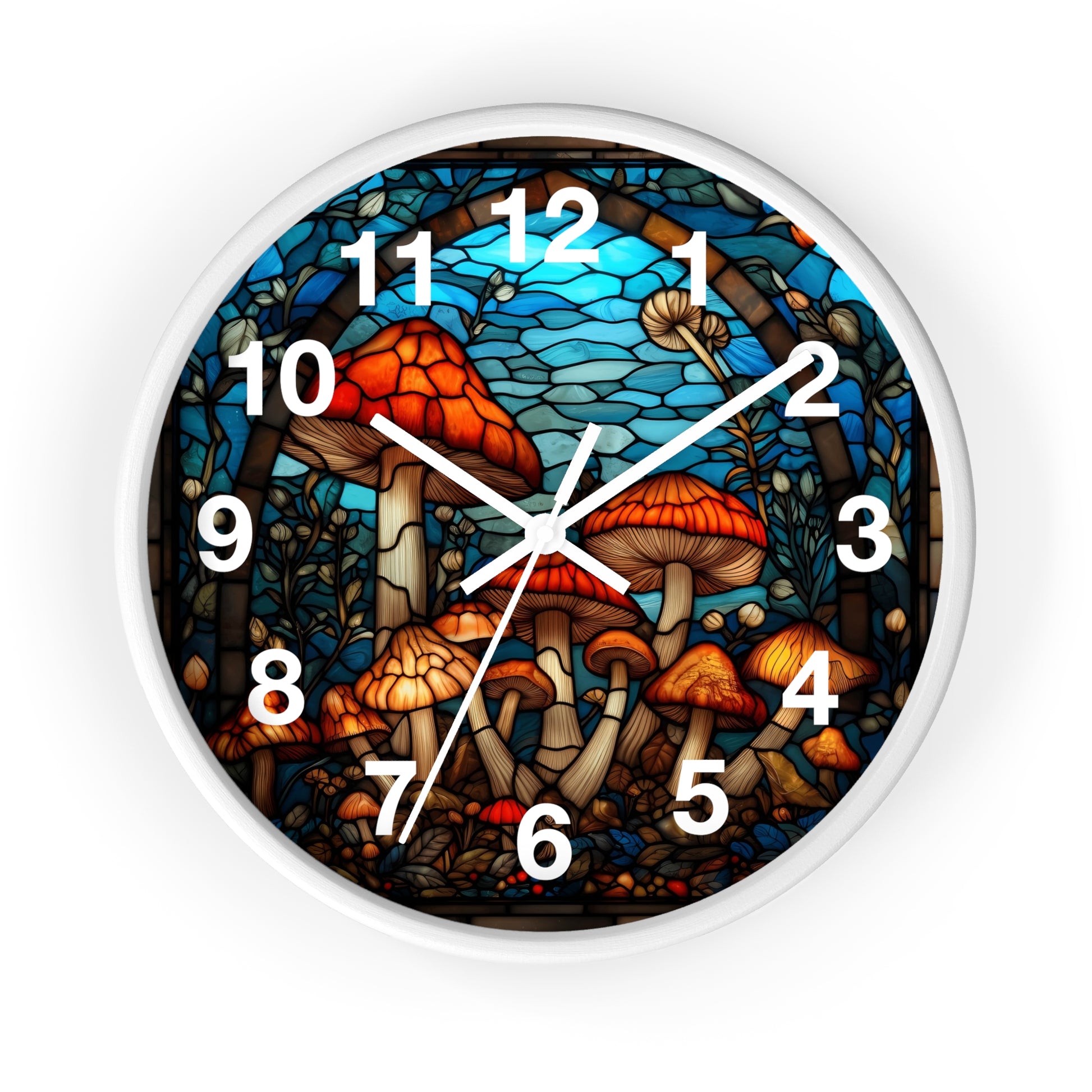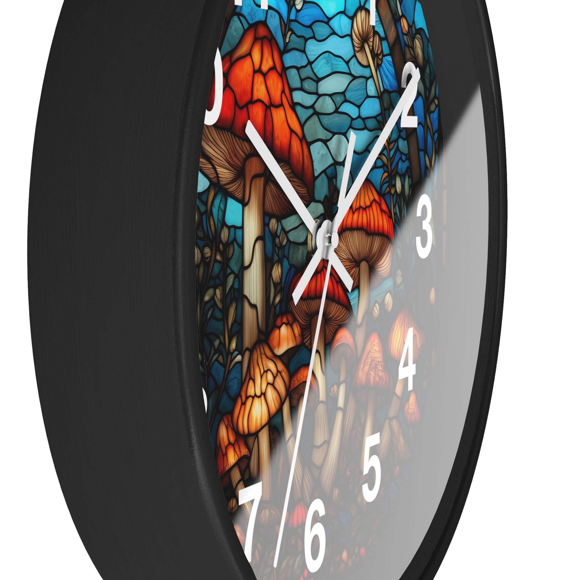 Stained Glass Mushroom Wall Clock | Trippy Shroom Garden Decor | Psychedelic Stain Glass Art | Battery Operated | Unique Gift for Ravers