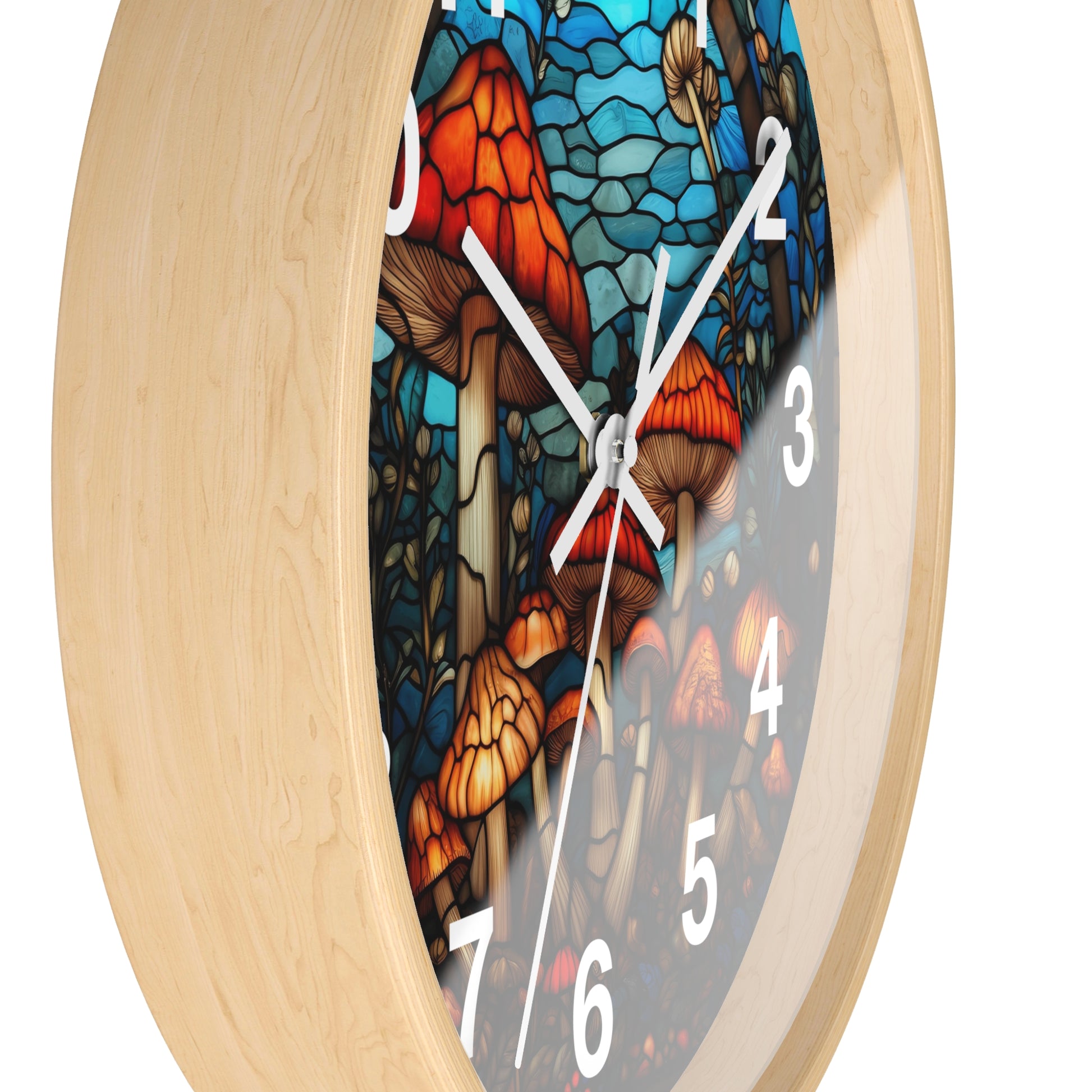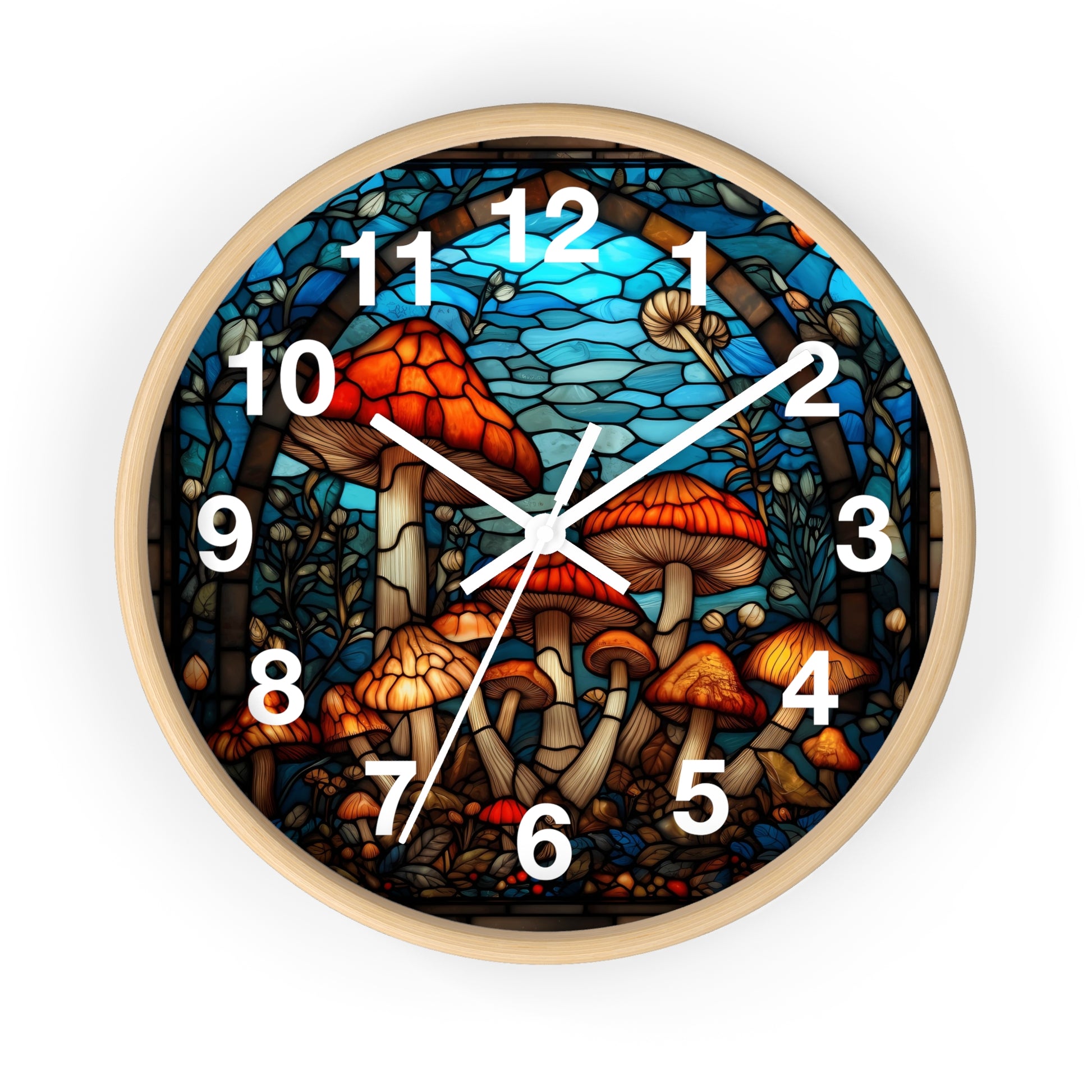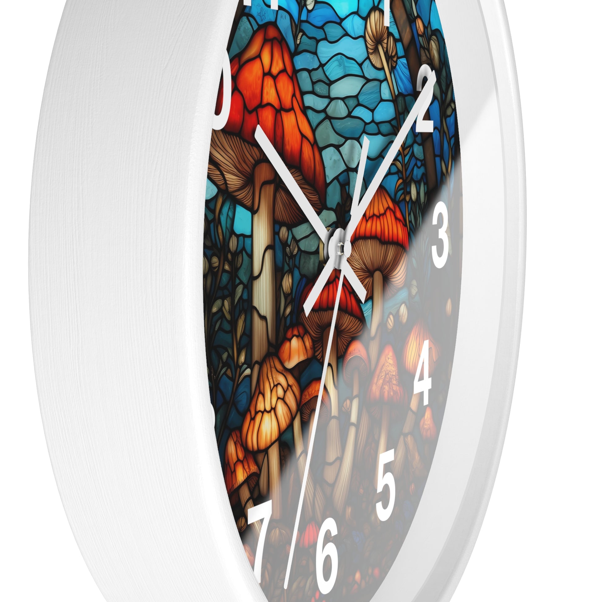 Stained Glass Mushroom Wall Clock | Trippy Shroom Garden Decor | Psychedelic Stain Glass Art | Battery Operated | Unique Gift for Ravers