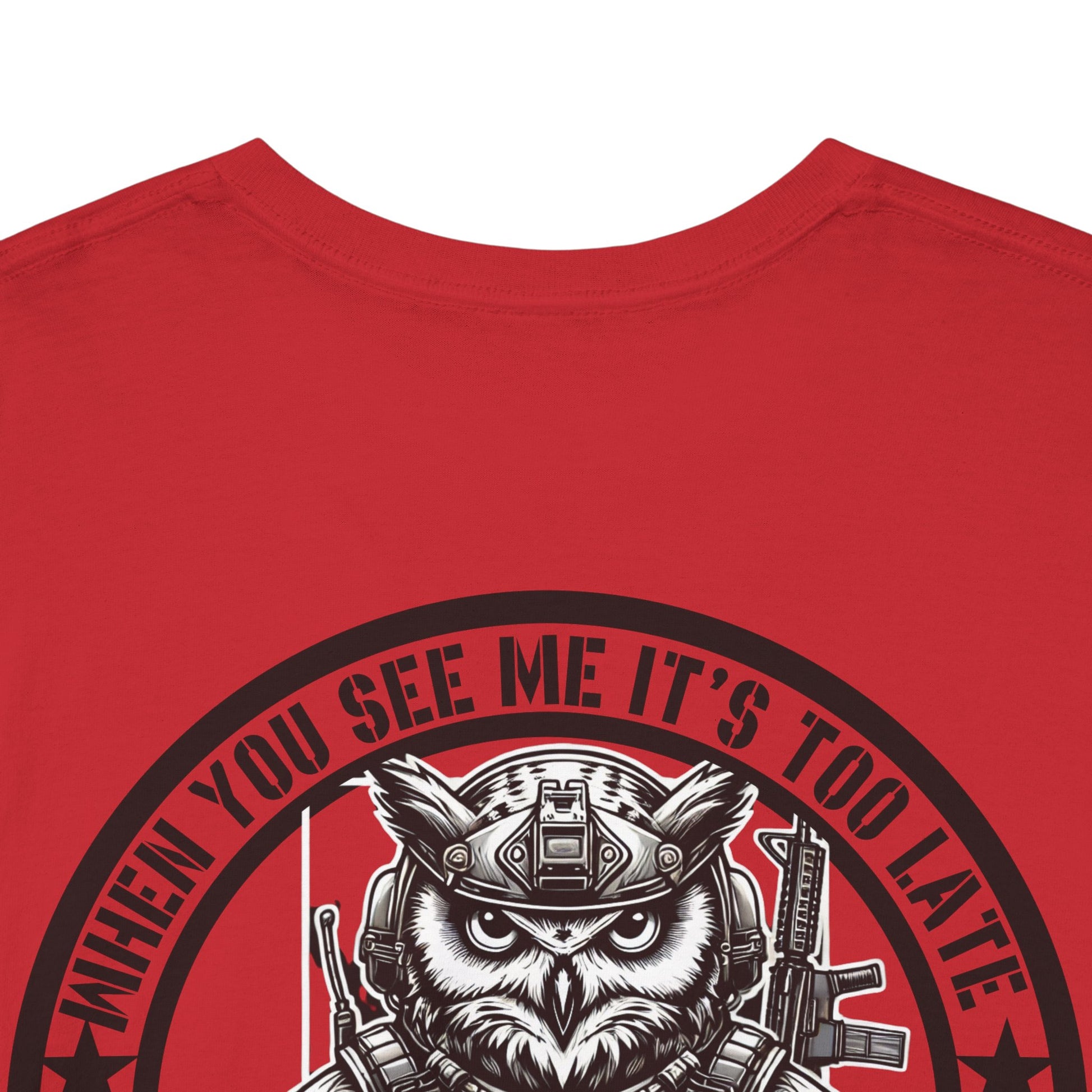 Rule the night with this Tactical Owl tee – sharp eyes, stealth moves, unstoppable style