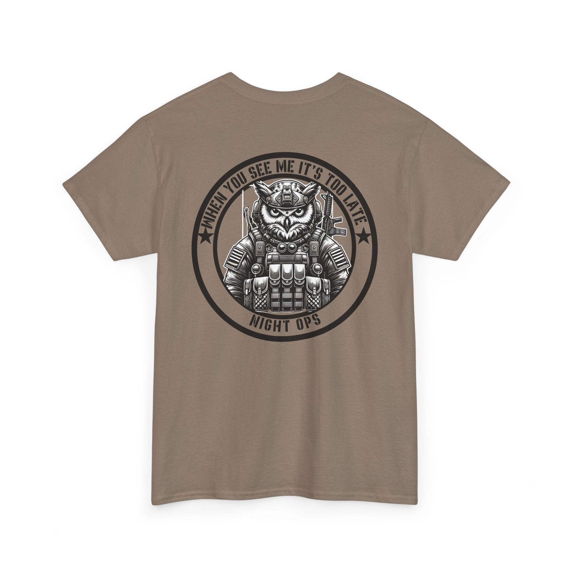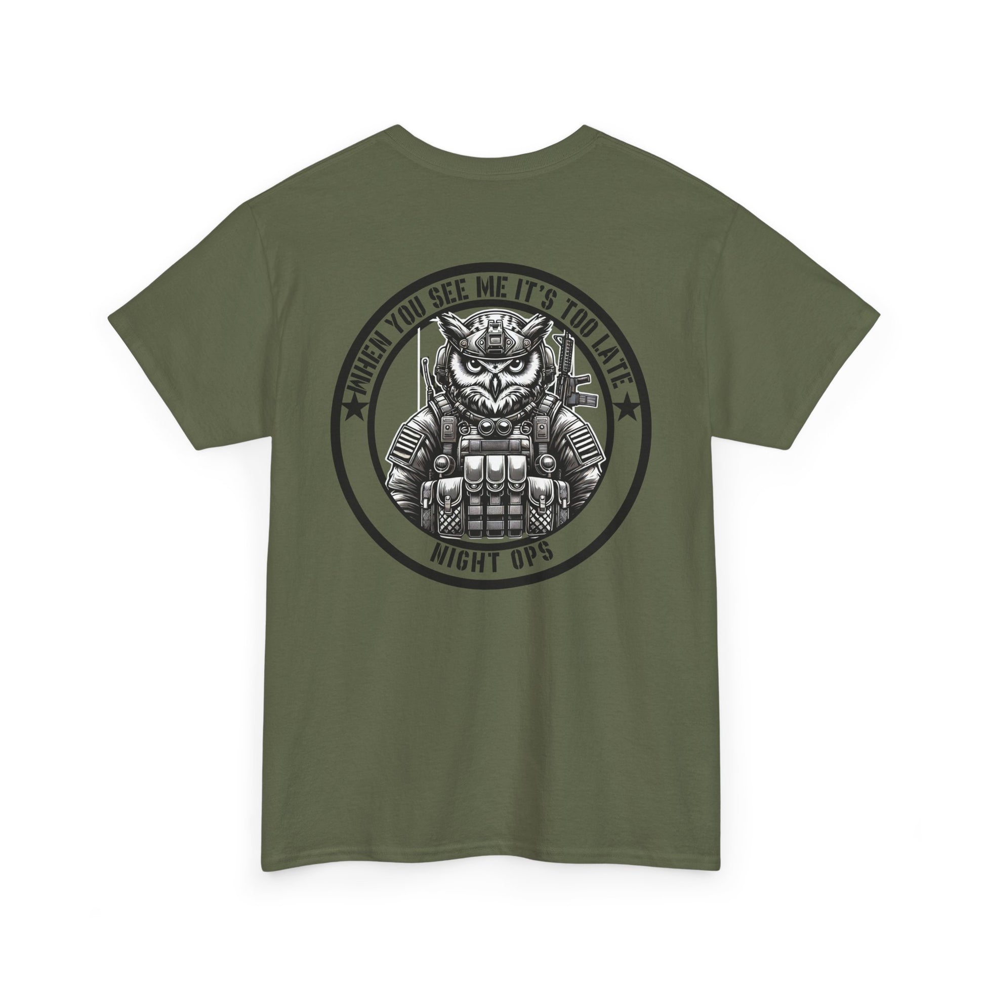 Tactical Owl Night Ops Shirt | Funny Military-Inspired Patriotic Tee | Night Vision Specialist Gift for Owl Lovers | Stealthy Animal Graphic