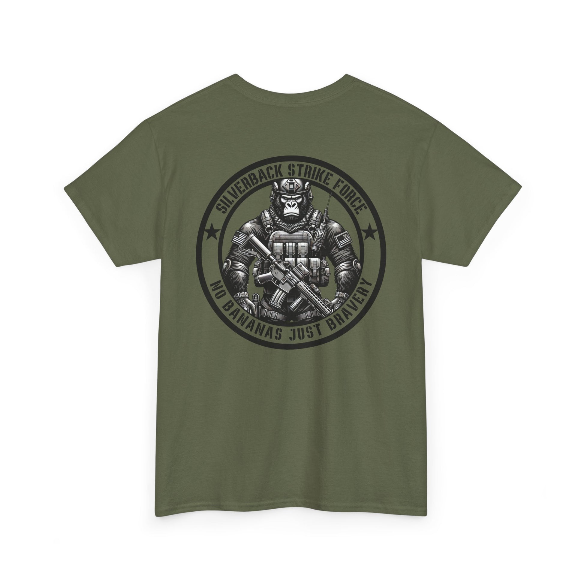 Tactical Silverback Gorilla Strikeforce Shirt | Funny Military-Inspired Gorilla Tee Patriotic Gorilla Warfare Humor Monkey Lover No Bananas