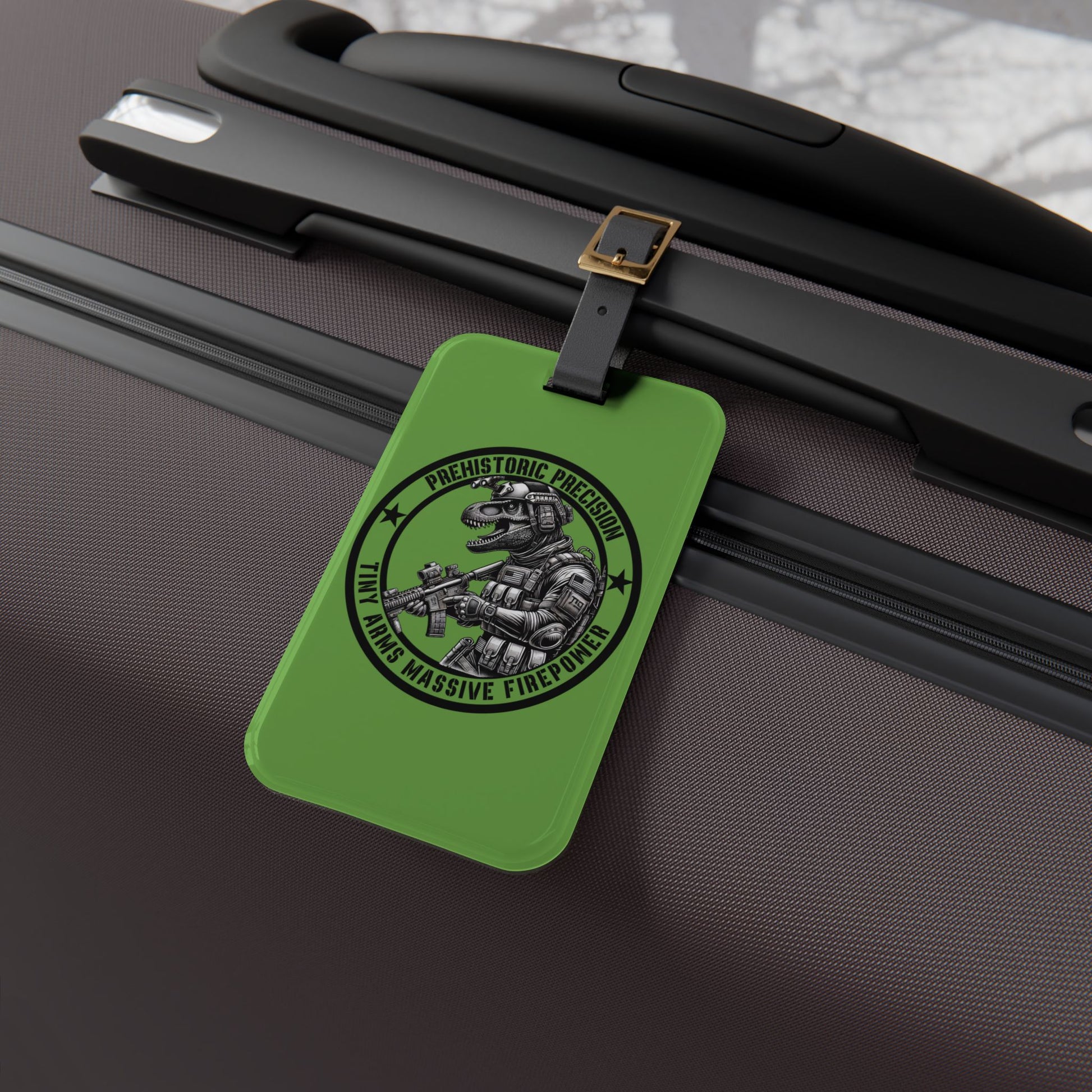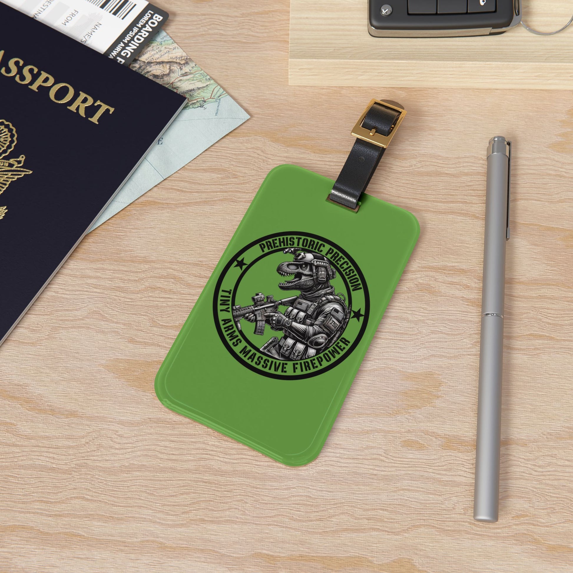 Tactical T-Rex Dinosaur Luggage Tag Prehistoric Precision Baggage ID Funny Dino Military-Inspired Patriotic Gift Tiny Arms Massive Firepower