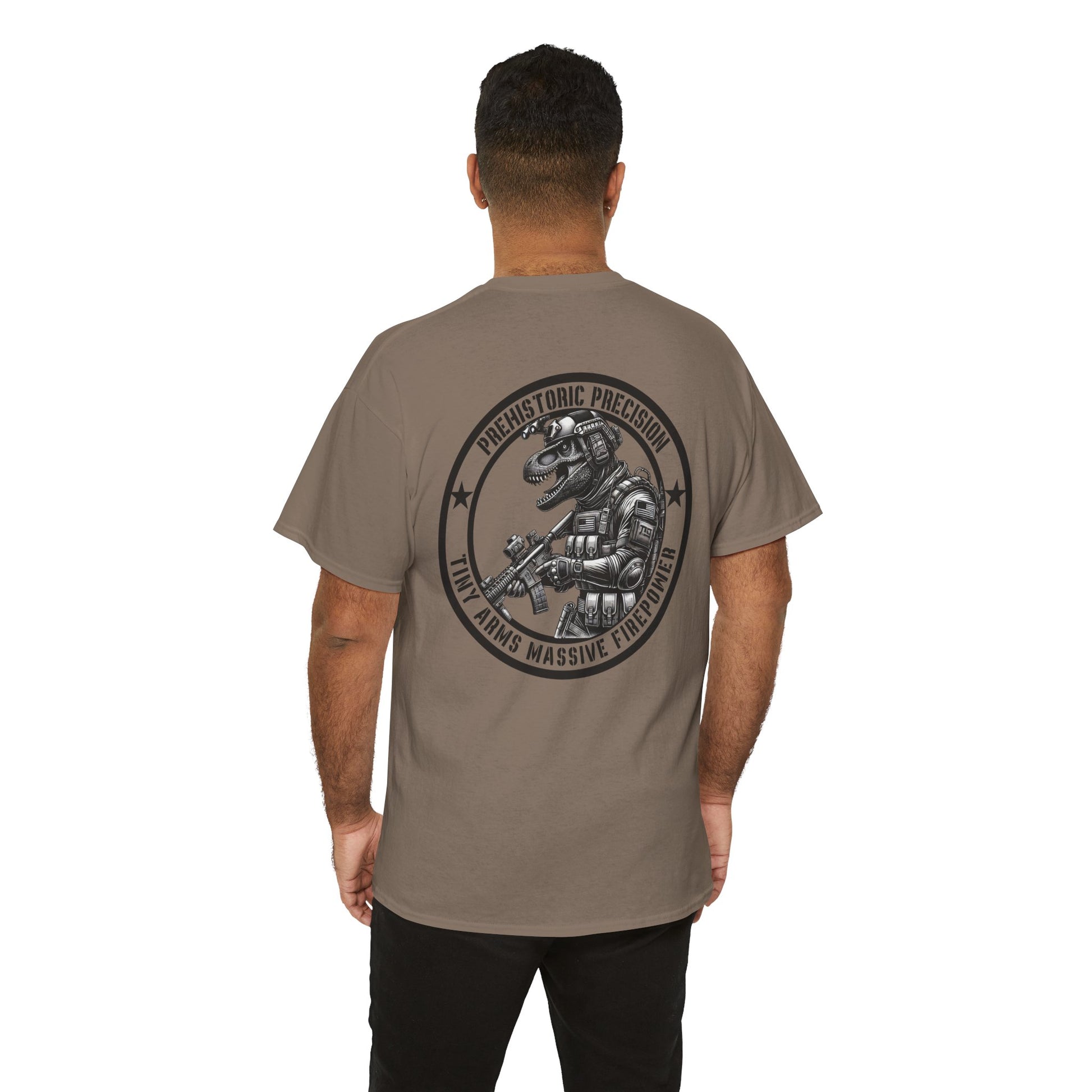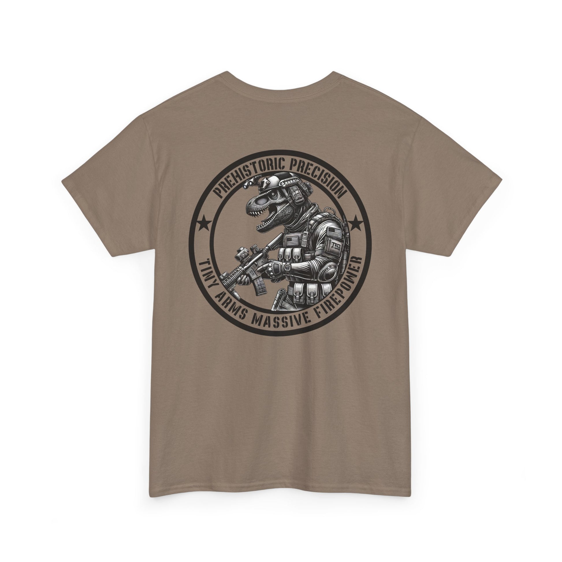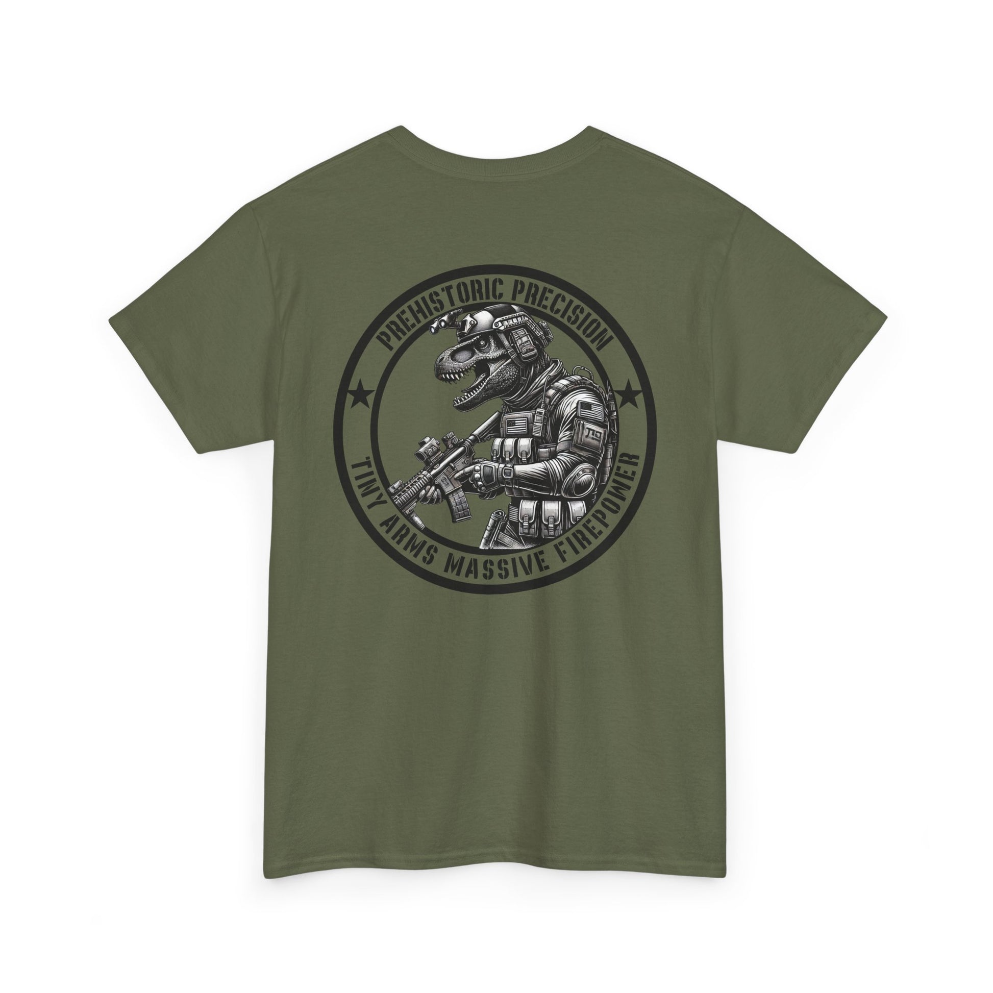 Tactical T-Rex Dinosaur Shirt | Prehistoric Precision Tee Funny Dino Military-Inspired Patriotic Gift Tiny Arms Massive Firepower Dino Lover