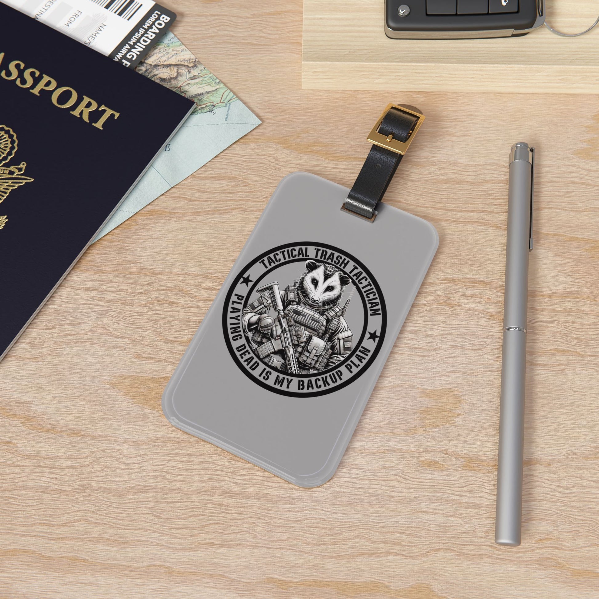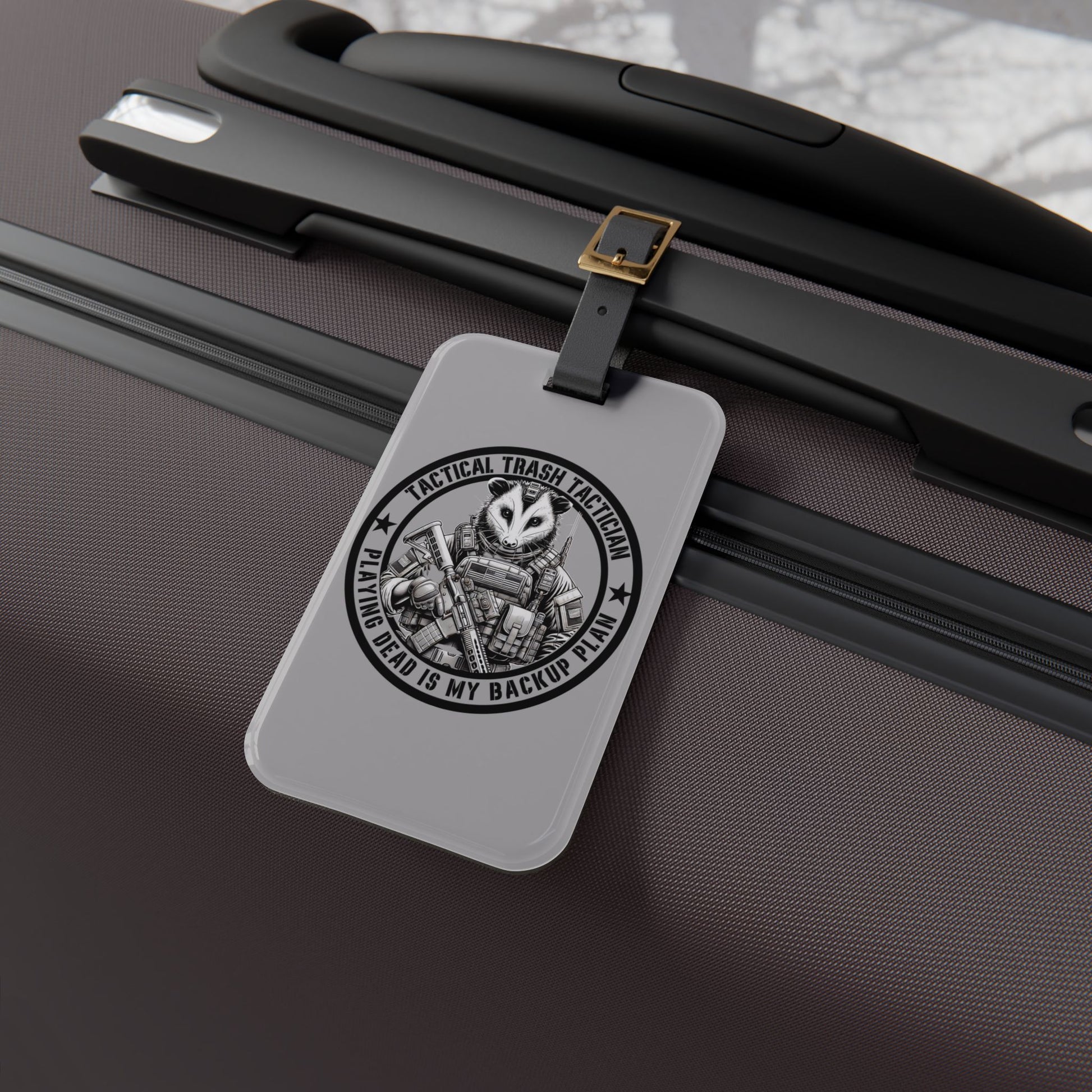 Tactical Trash Tactician Opossum Luggage Tag | Funny Military-Inspired Opossum Baggage ID | Patriotic Humor for Tactical Wildlife Fans