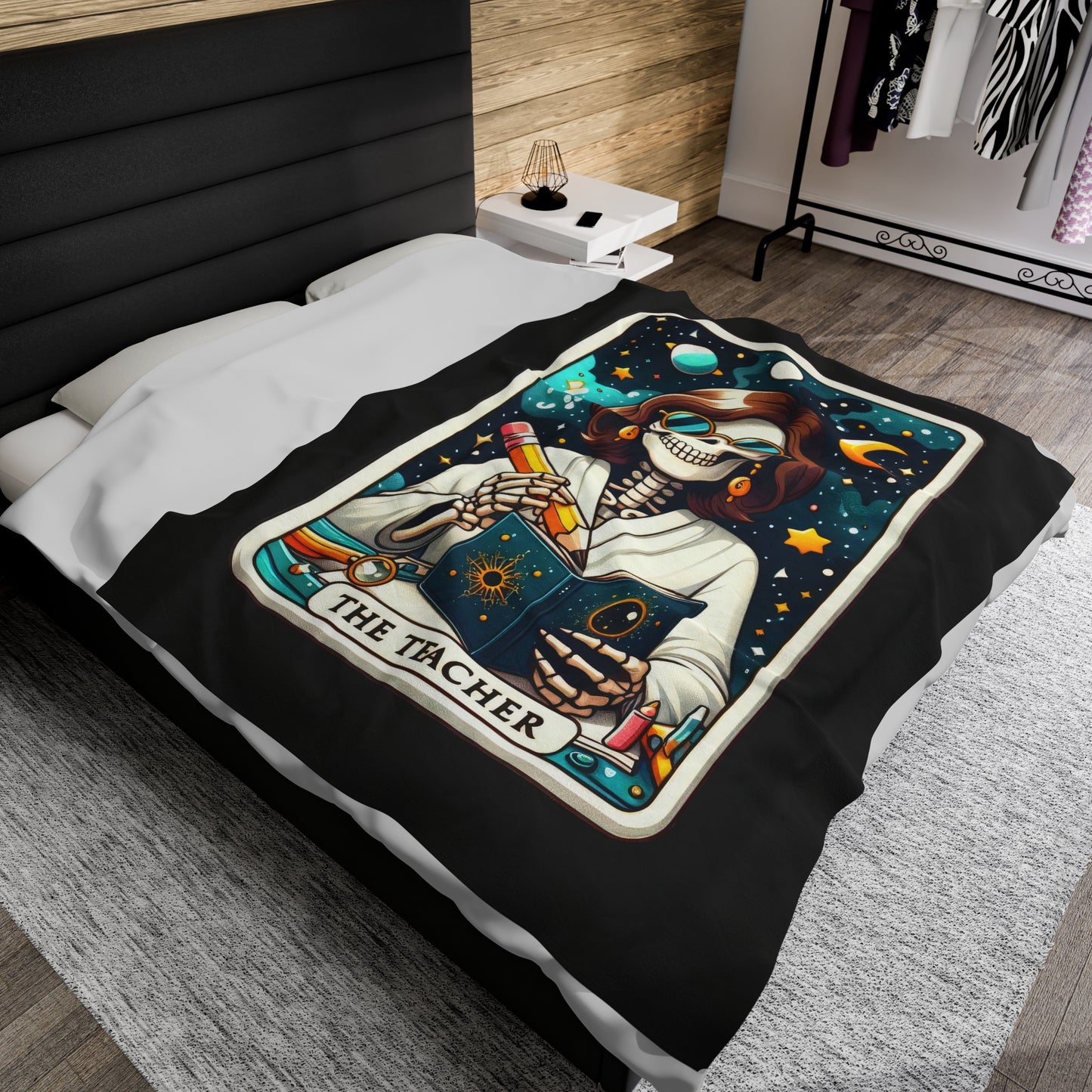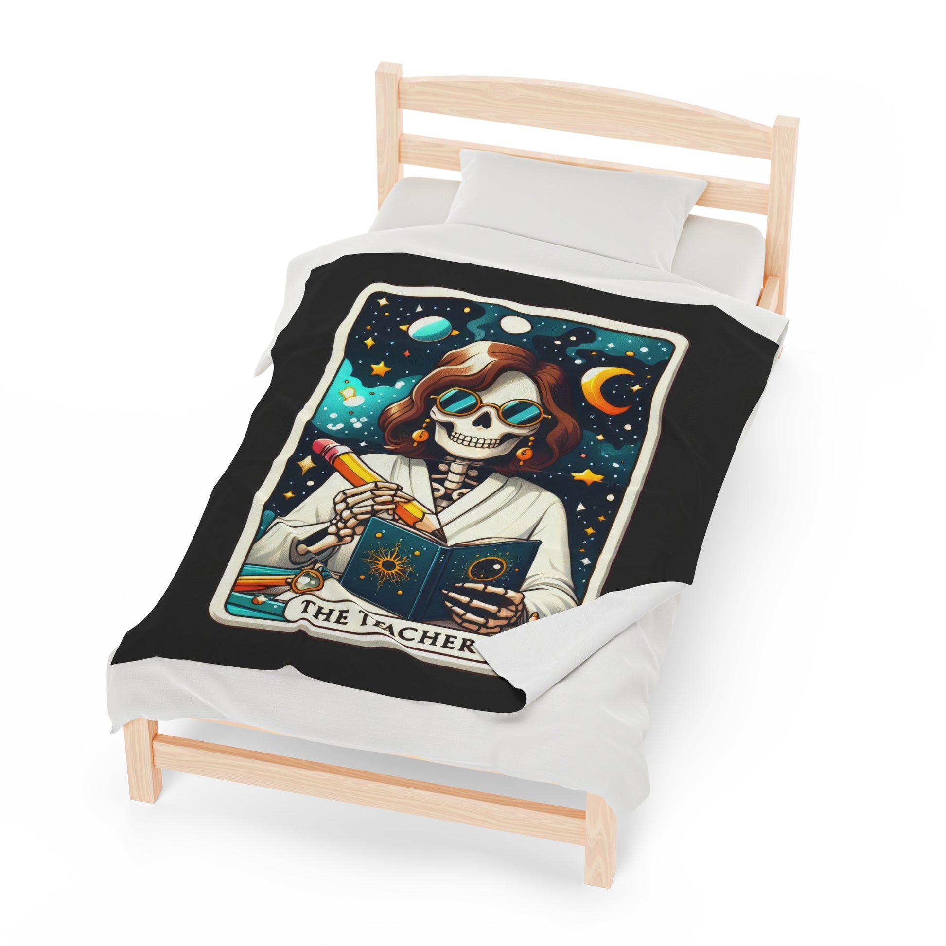 Teacher Tarot Card Velveteen Plush Throw Blanket | Unique Gift for Teachers | Tarot-Inspired Cozy Blanket | Warm Thoughtful Classroom Decor