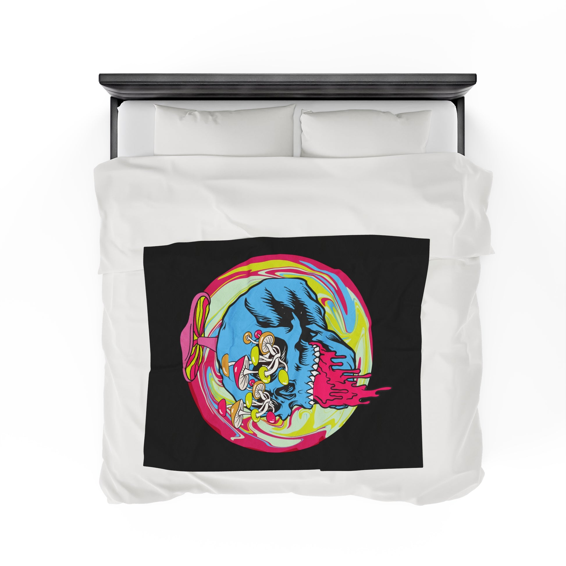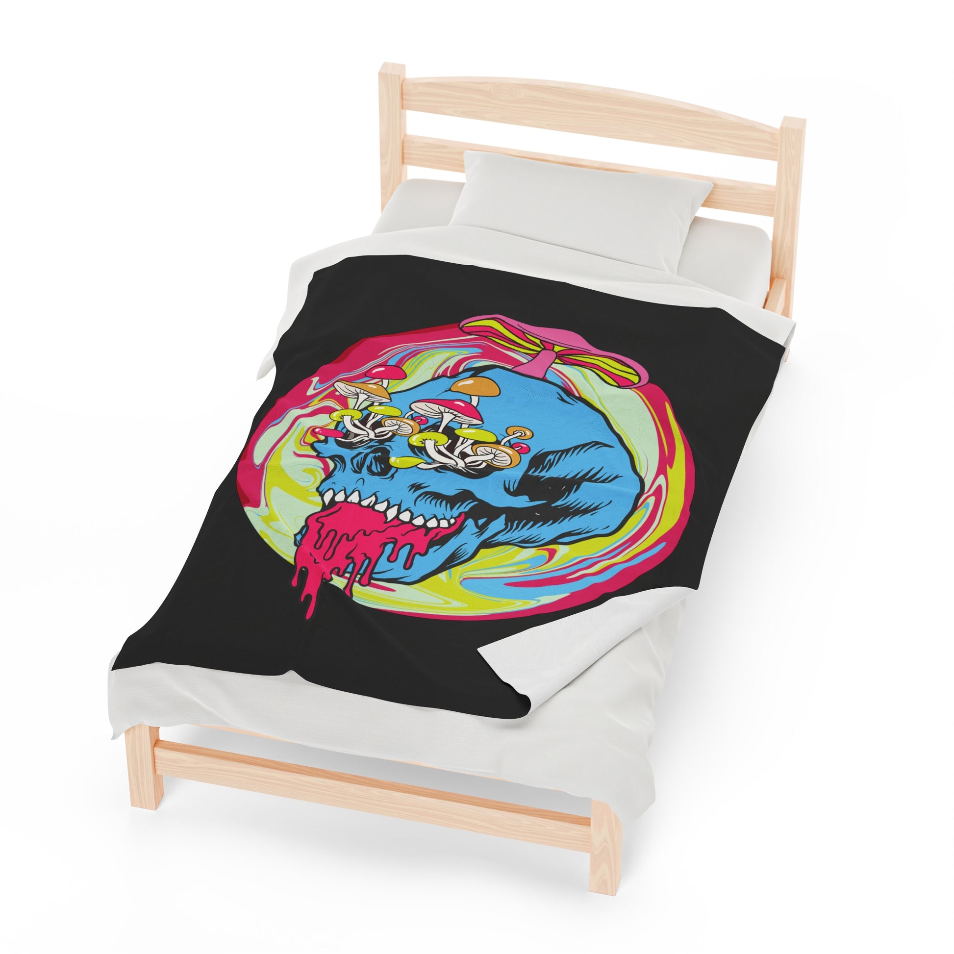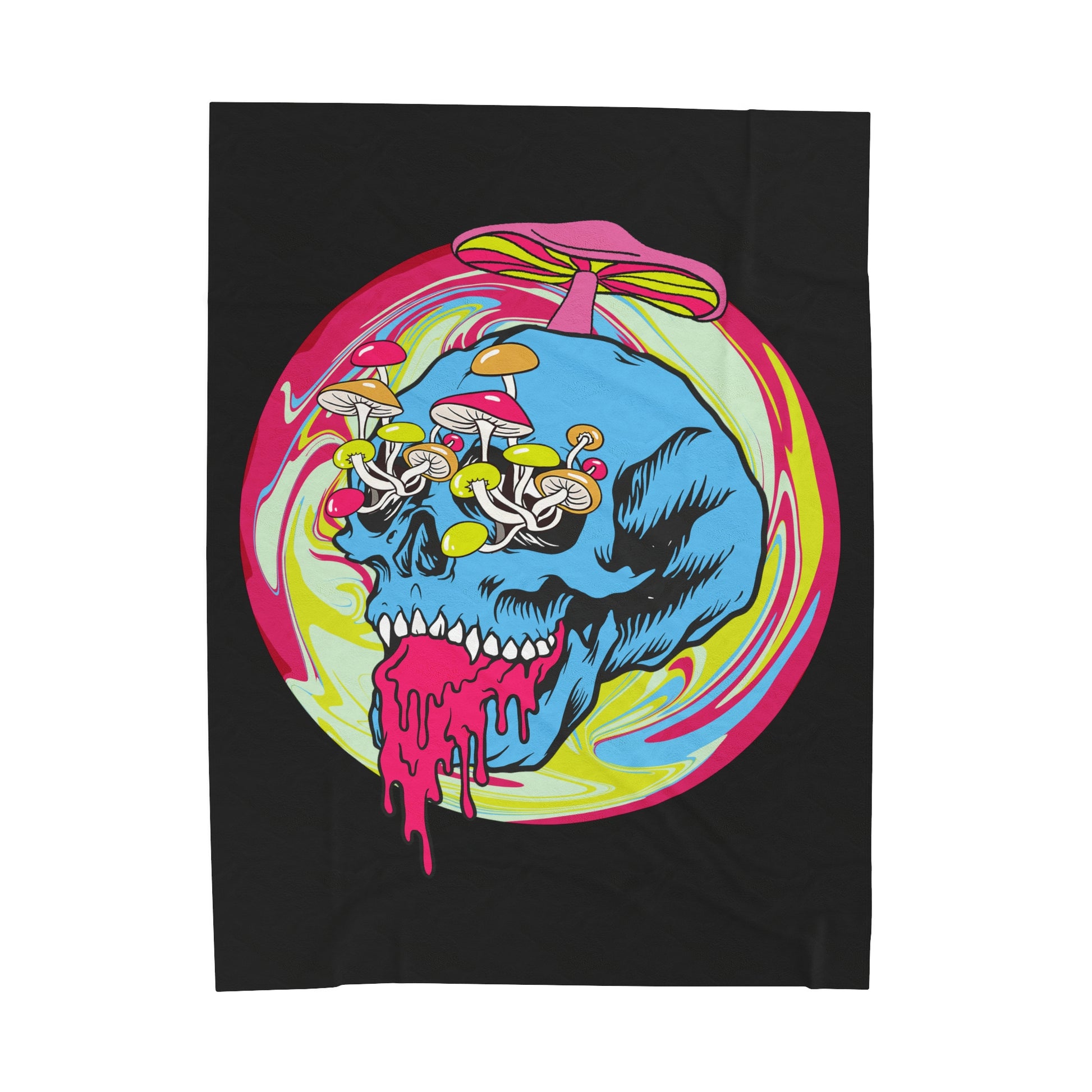 Trippy Skull Mushroom Velveteen Plush Throw Blanket | Psychedelic Vibrant Shroom Art Melting Skull Blanket Festival Rave Lovers Unique Gift