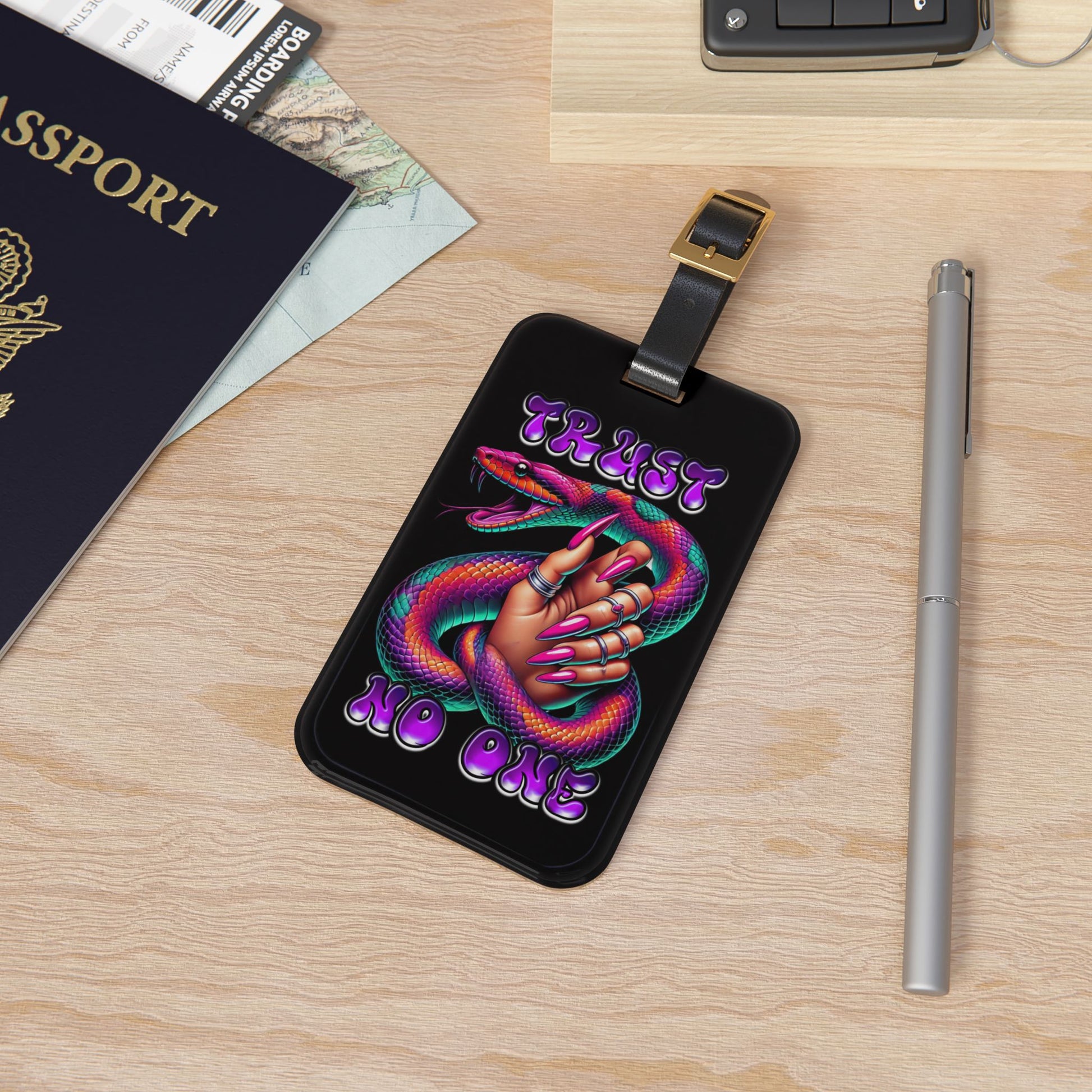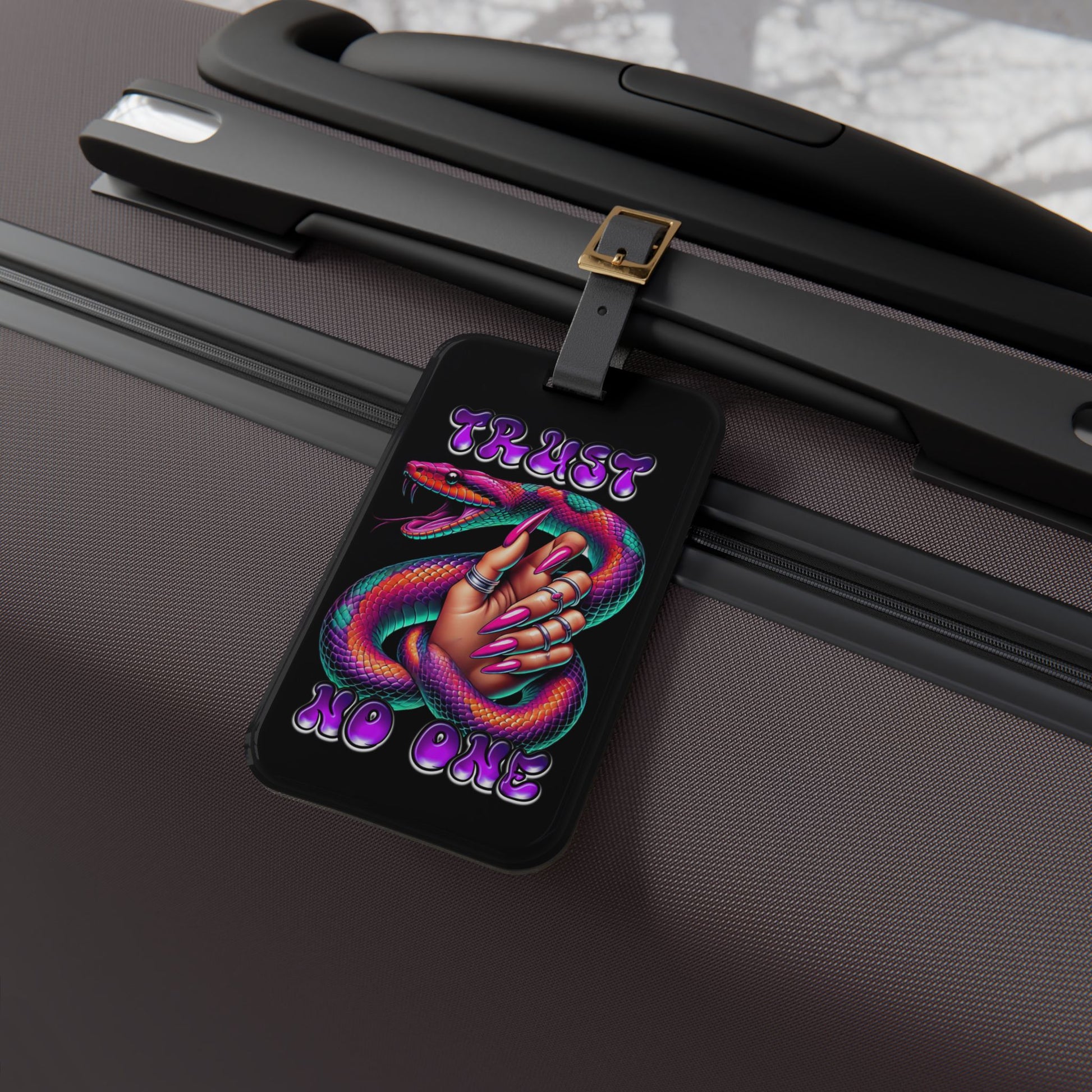 Trust No One Luggage Tag | Bold Female Hand with Snake Baggage ID | Streetwear Style | Urban Culture Gift for Women Travel Acessory