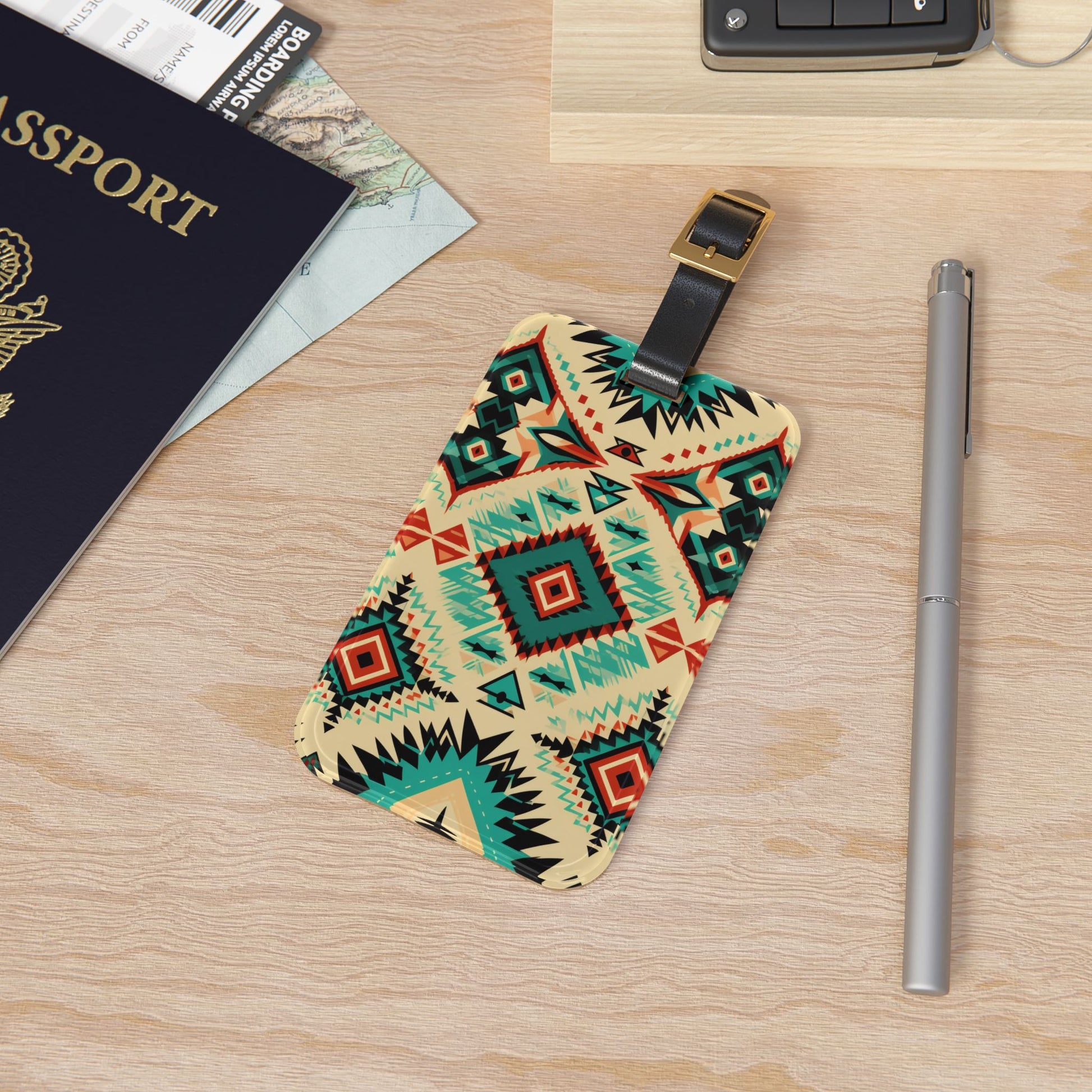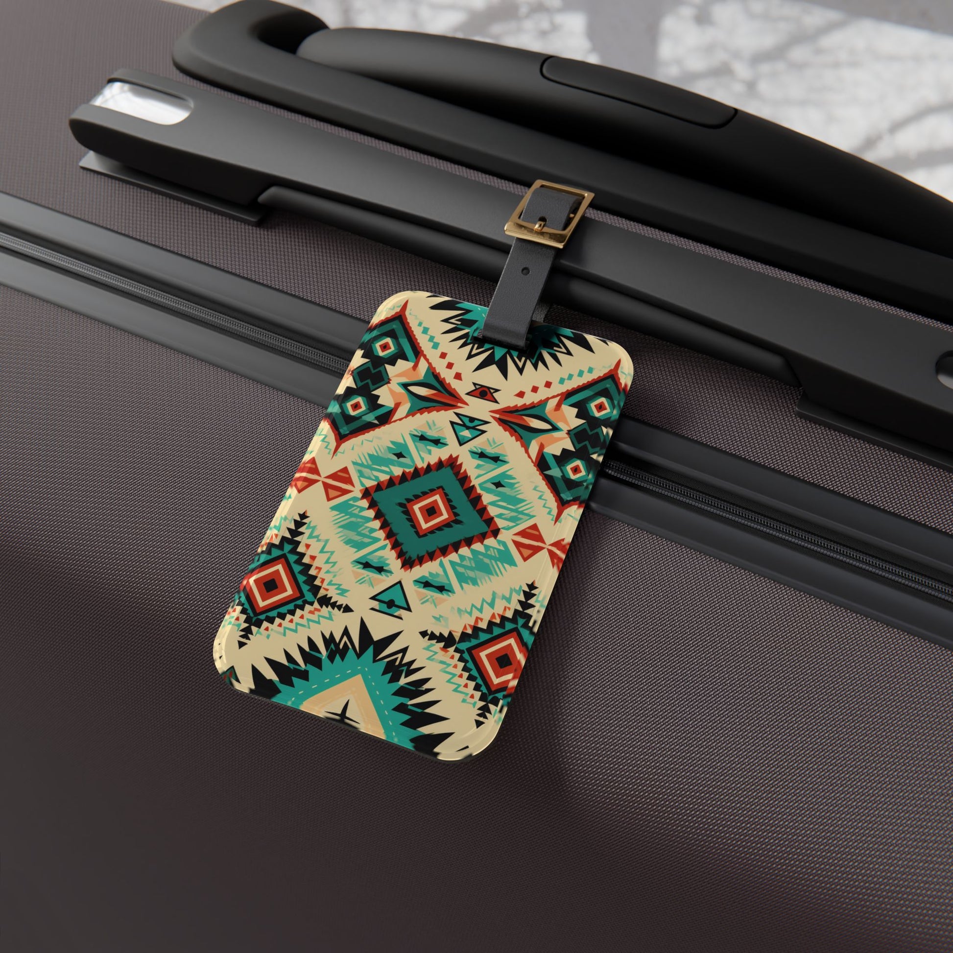Turquoise Blue Aztec Western Luggage Tag | Bold Baggage ID | Western Cowboy Travel Accessory | Native American Inspired Design Southwestern