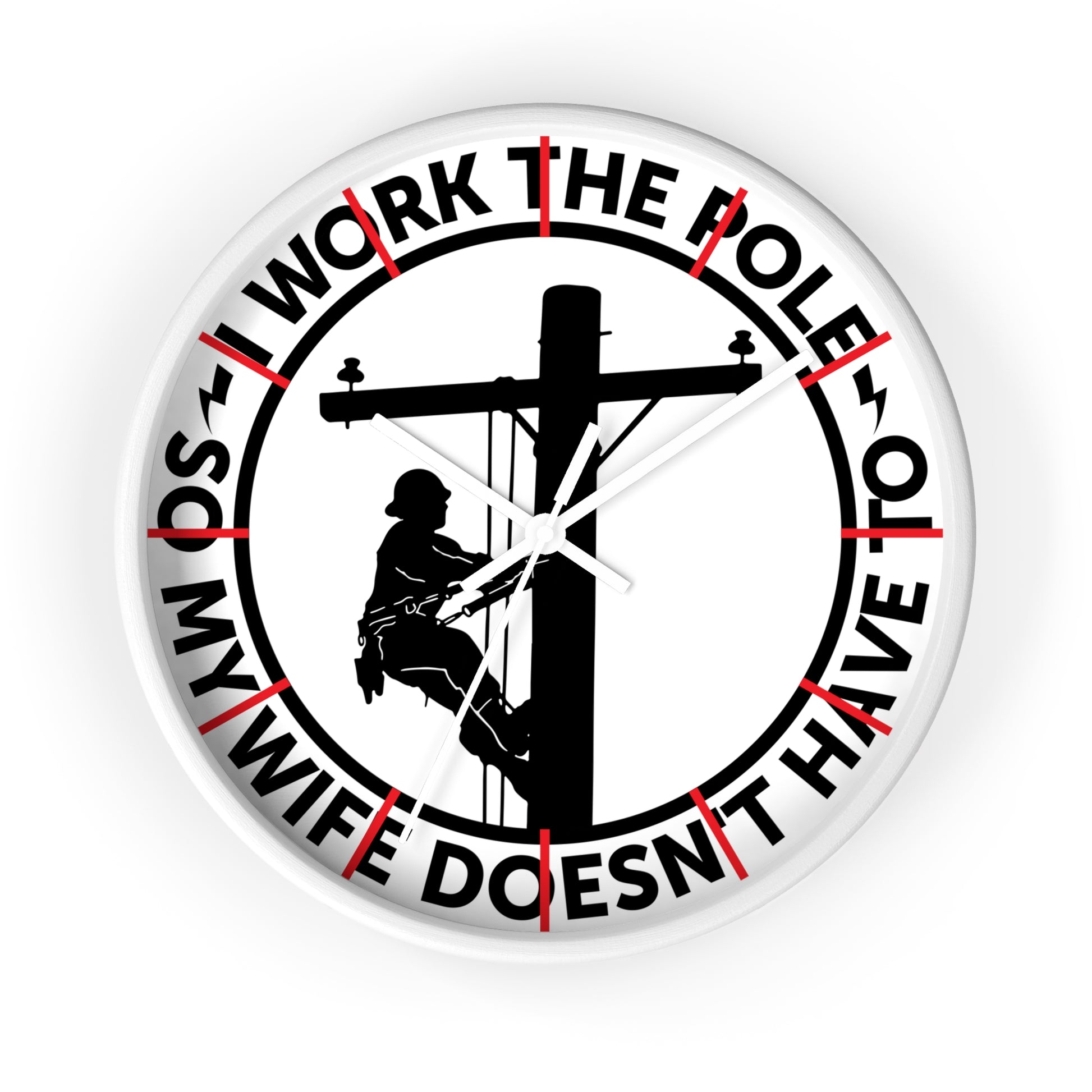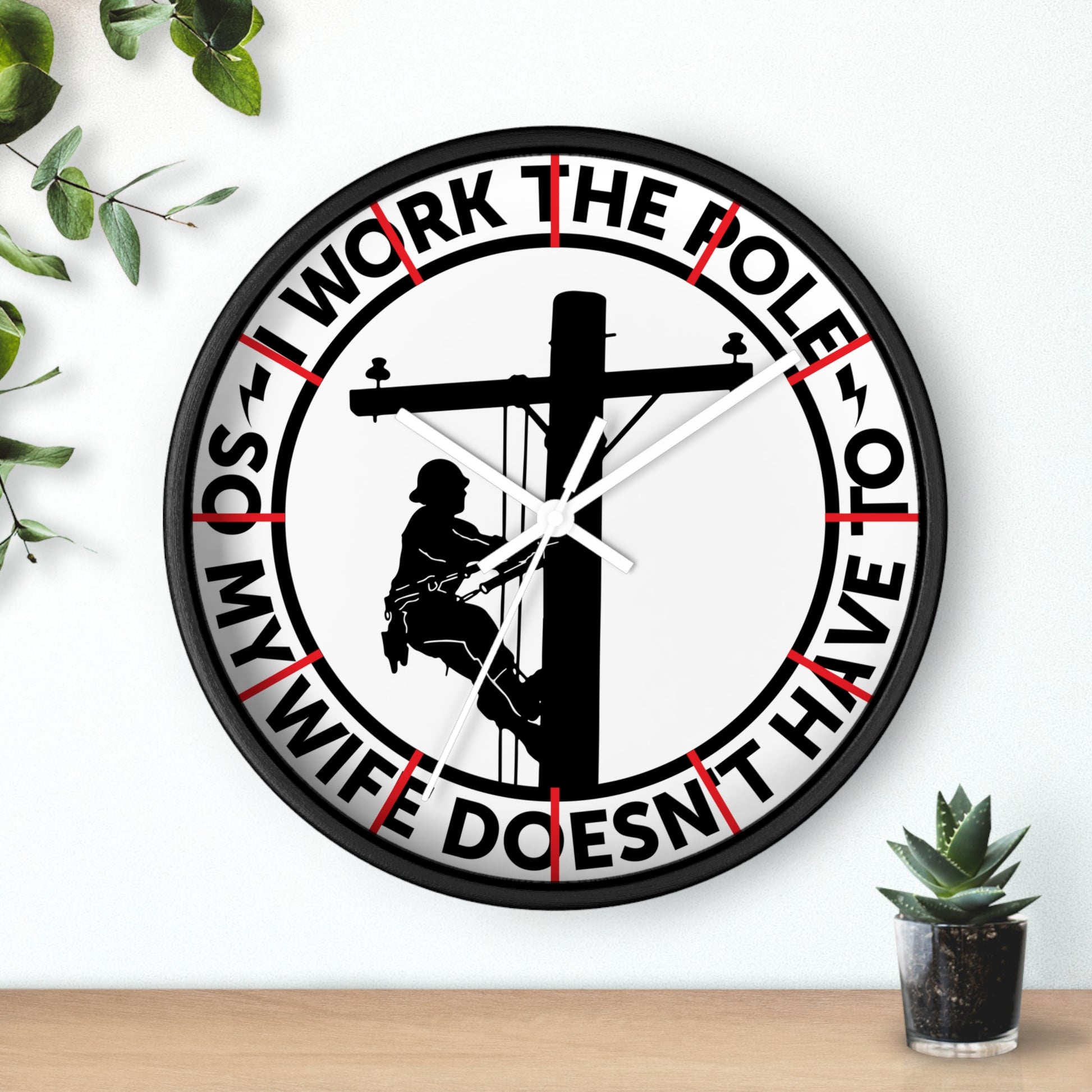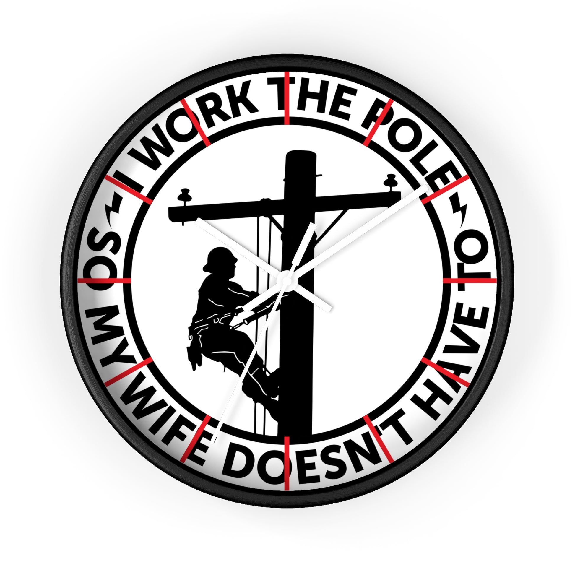 Work The Pole So My Wife Doesnt Wall Clock | Blue Collar Lineman Electrician Design | Battery Operated | Fun Home Decor | Electricians GIft