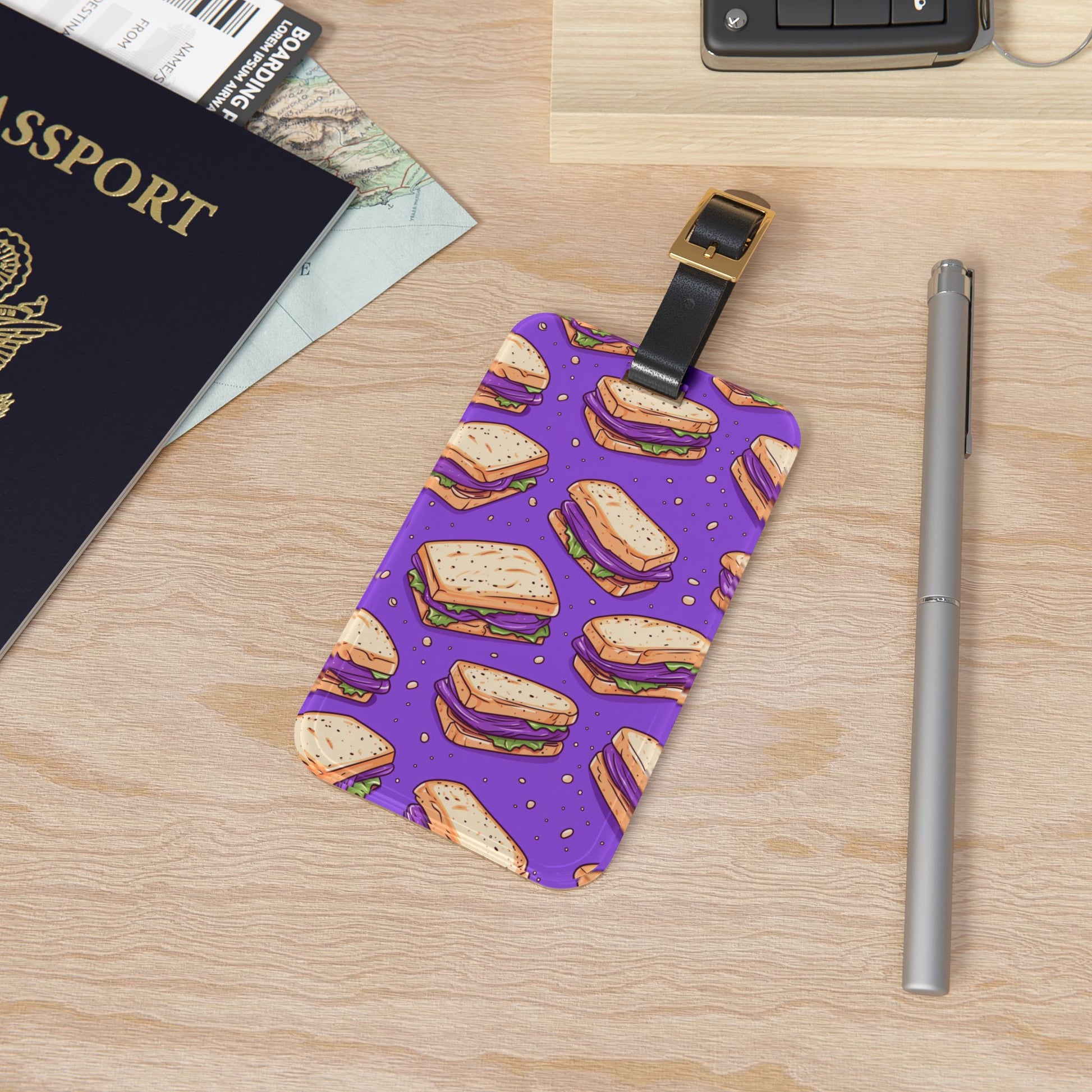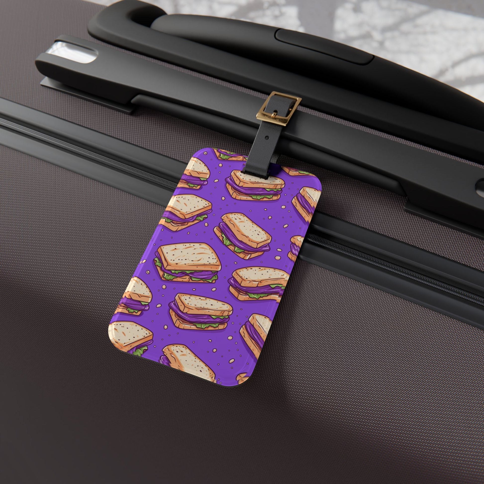 Yummy Sandwiches Purple Luggage Tag | Vibrant Food Lovers Travel Accessory | Funny Baggage ID for Delicious Fun Sammies | Foodie Gift